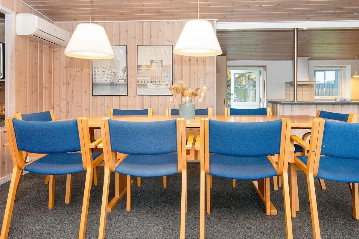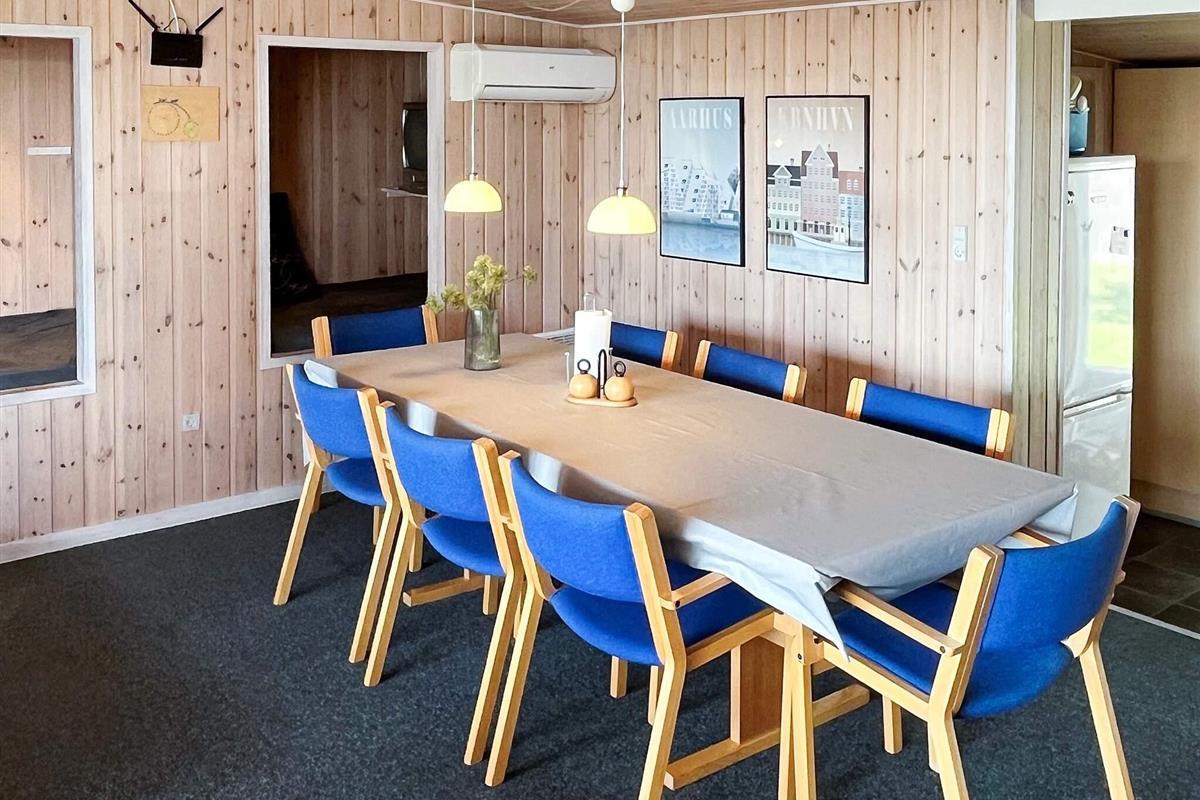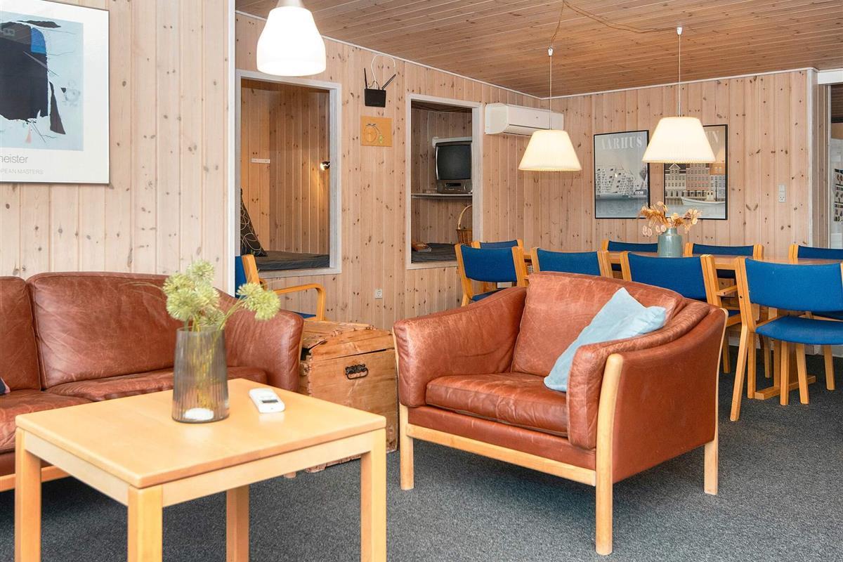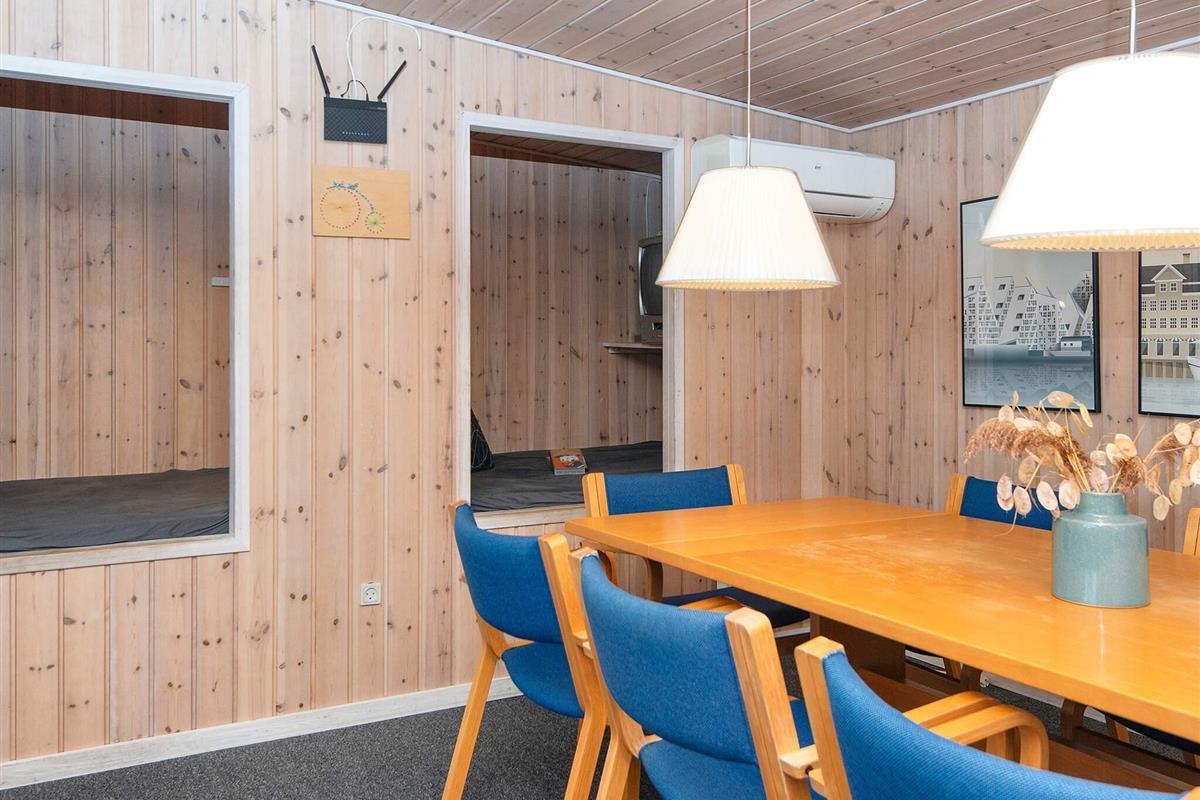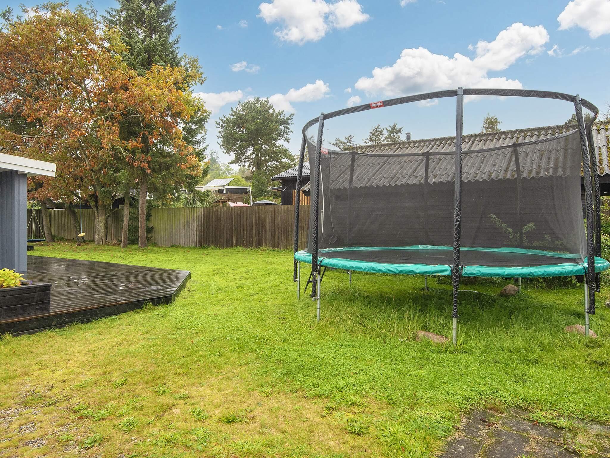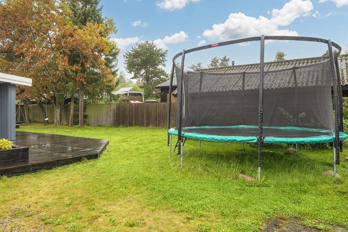 Die Küche ist offen zum Wohnzimmer hin gestaltet, sodass man auch beim Kochen am Geschehen teilnehmen kann. Im Wohnzimmer befindet sich eine gemütliche Alkove, die als kleines Kinderkino mit alten Kinderfilmen dient – ein Highlight für die jüngsten Gäste. Der Garten bietet zudem ein Trampolin, das auf eigene Gefahr genutzt werden kann. Die Lage in der Nähe des Wassers und direkt am Nationalpark Mols Bjerge eröffnet fantastische Möglichkeiten für Spaziergänge, Radtouren und erstklassige Naturerlebnisse.