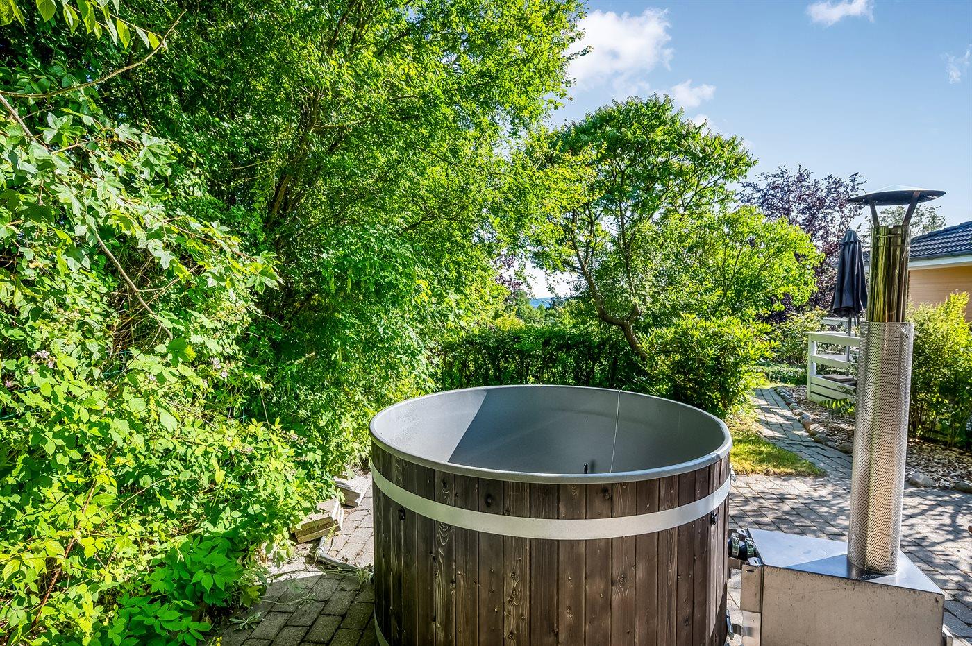 Het binnenbubbelbad (vulwater) biedt ontspanning aan 2 personen.Het buiten hot tub biedt ontspanning aan 5 personen.