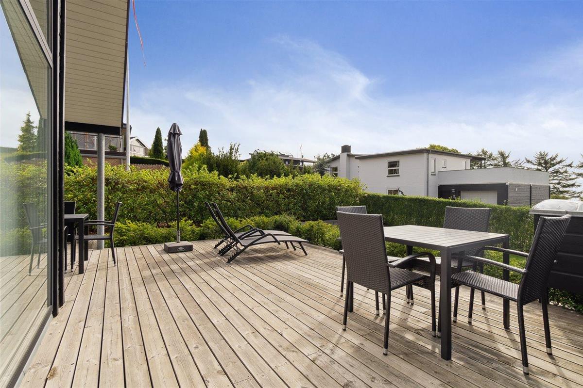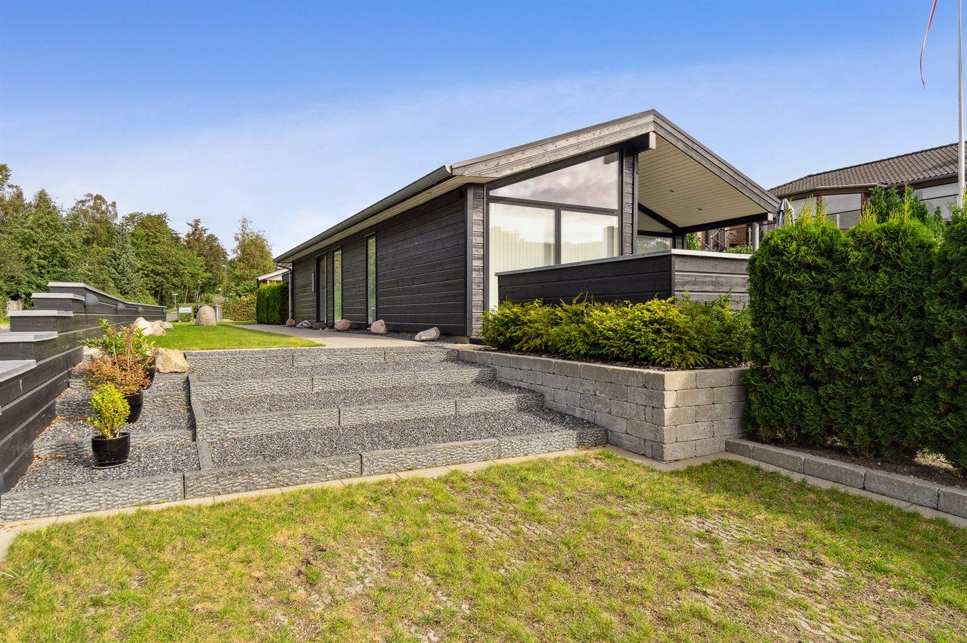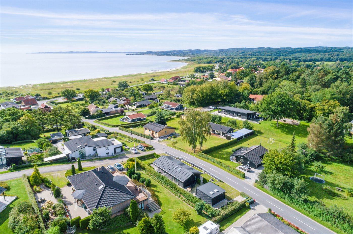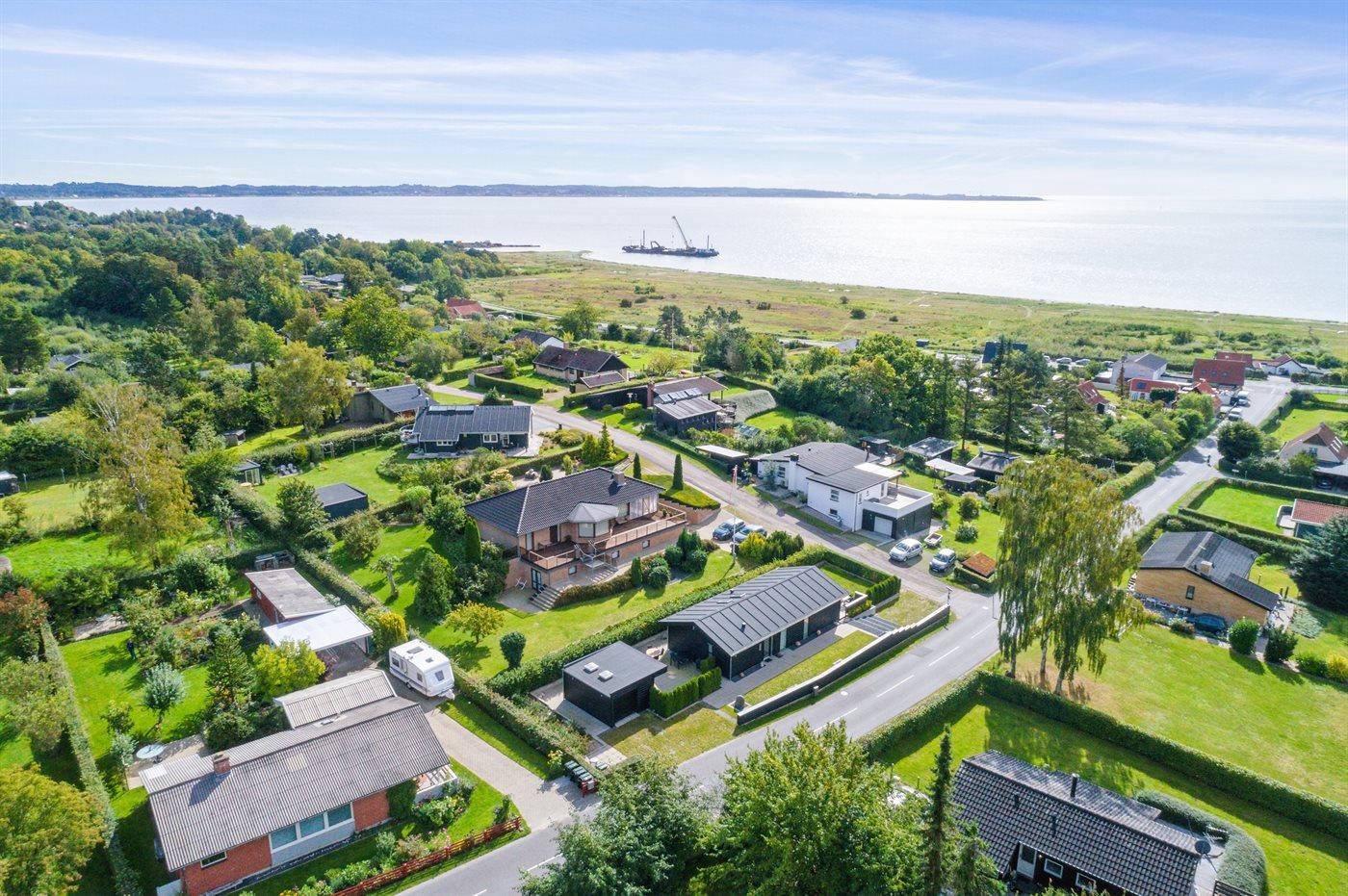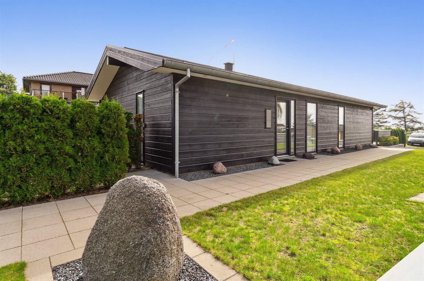Modern vakantiehuis met zeezicht, vlakbij strand en winkels in Ebeltoft, Denemarken.