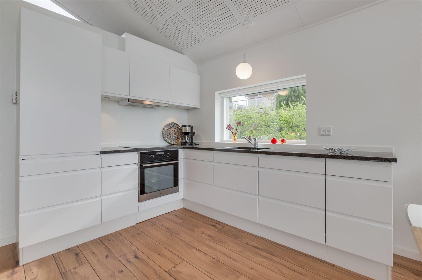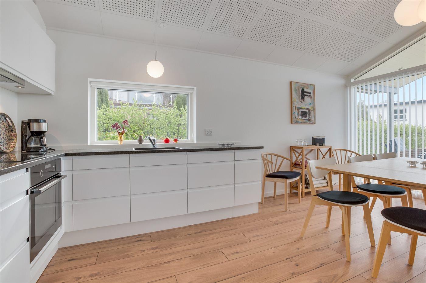 De keuken is uitgerust met koelkast Er is 4 inductiekookplaten, heteluchtoven, magnetron en vaatwasser.