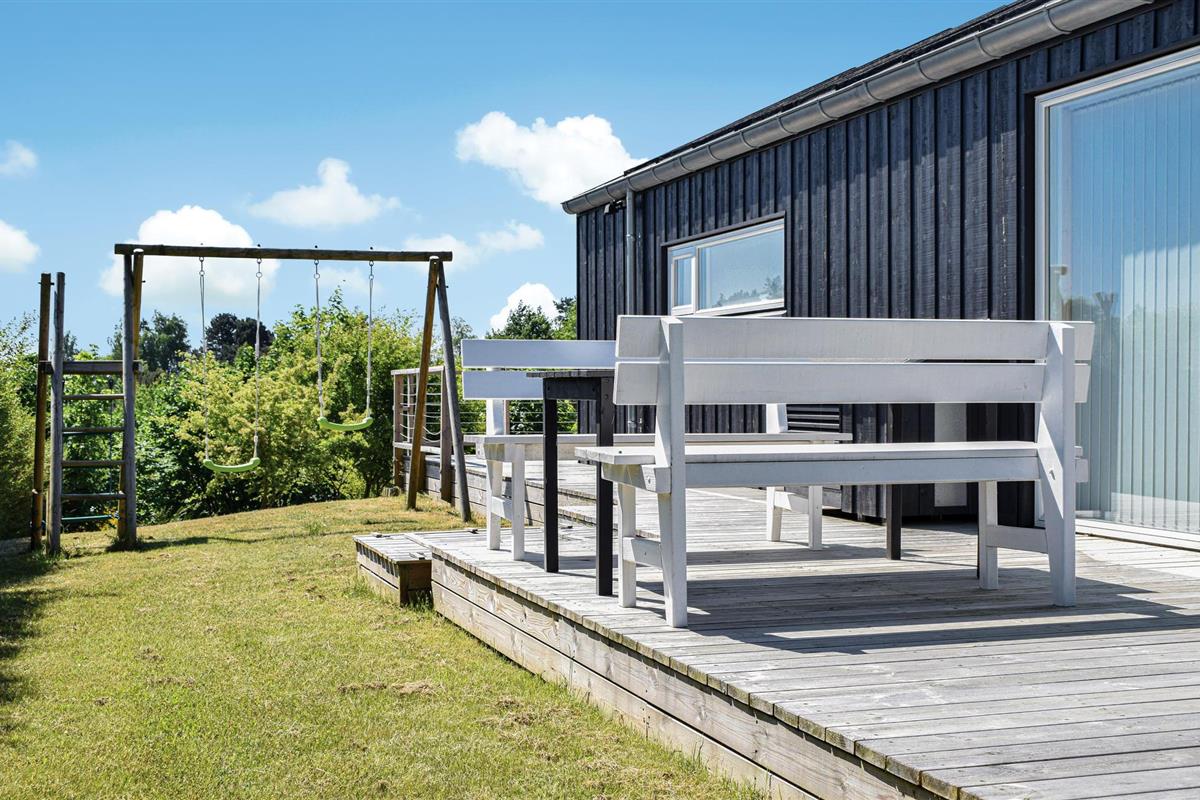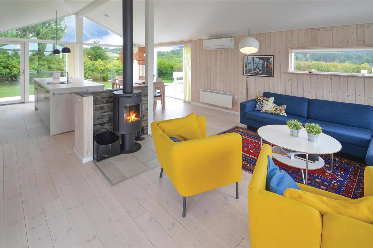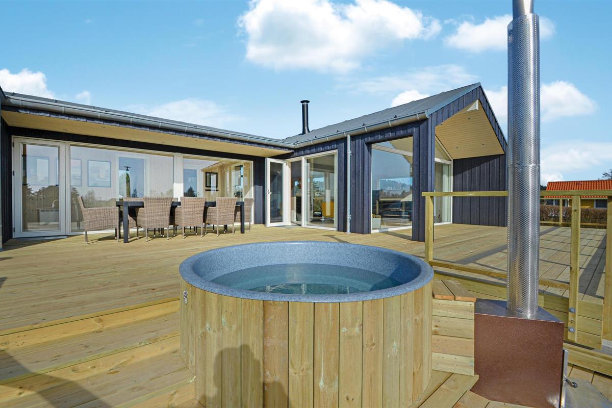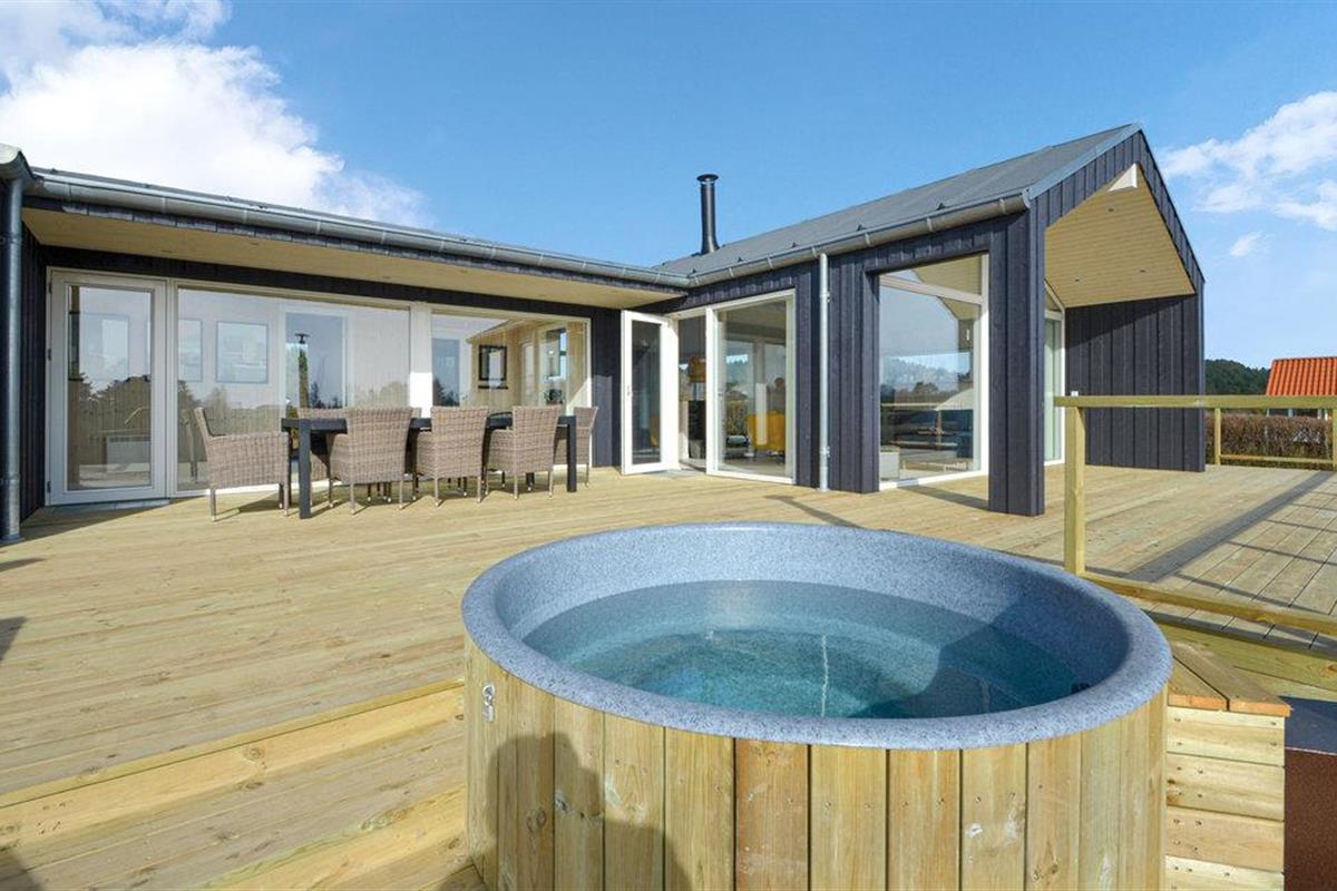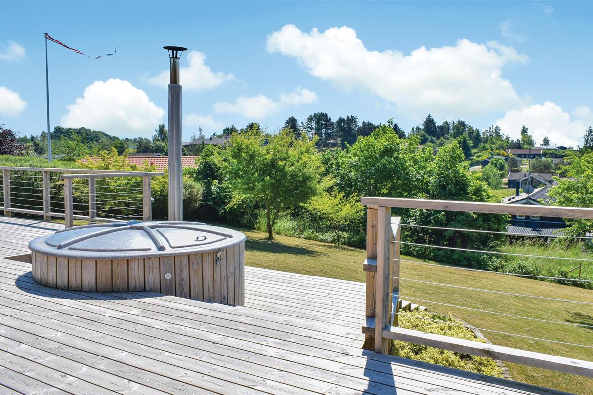Modern en supermooi vakantiehuis met hoogwaardige inrichting. De inrichting is optimaal, er zijn ook 2 luxe badkamers, waarvan één de sauna herbergt. Binnen in het huis en in de tuin vindt u veel ruimte. Op het grote terras staat een Fins bad voor maximaal acht personen. Het vakantiehuis is hoog gelegen en biedt een prachtig uitzicht. Op loopafstand bevinden zich het strand, de kruidenier en diverse restaurants. Misschien wilt u het Nationaal Park Mols Bjerge of het dierenpark Ree bezoeken.