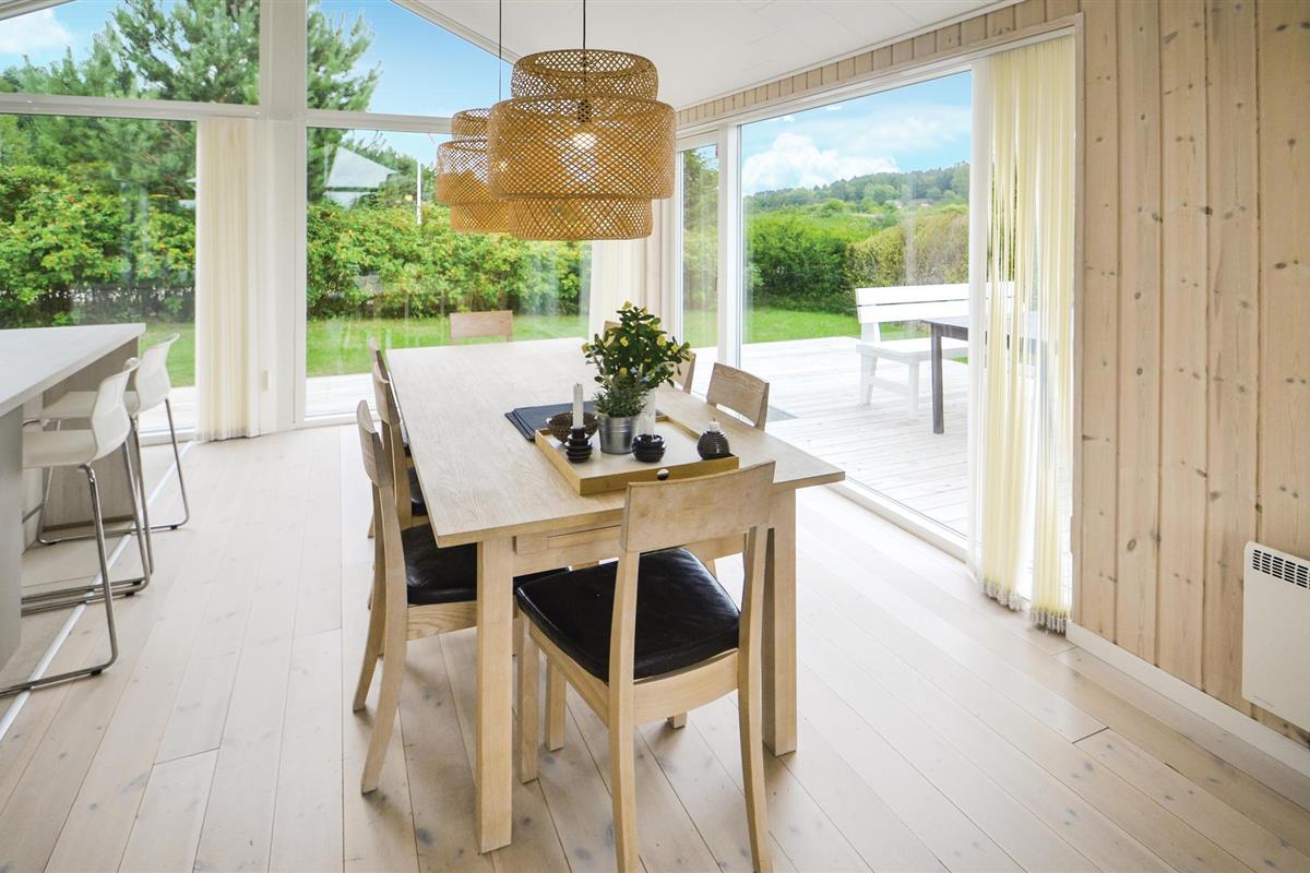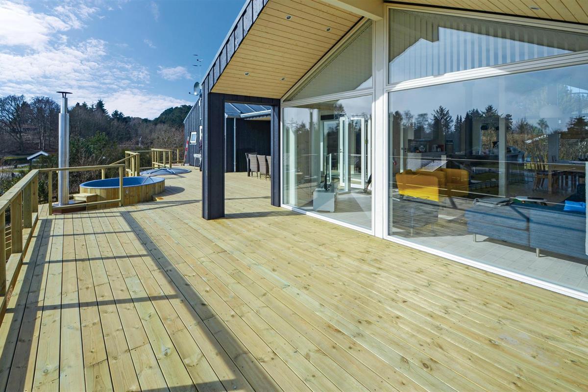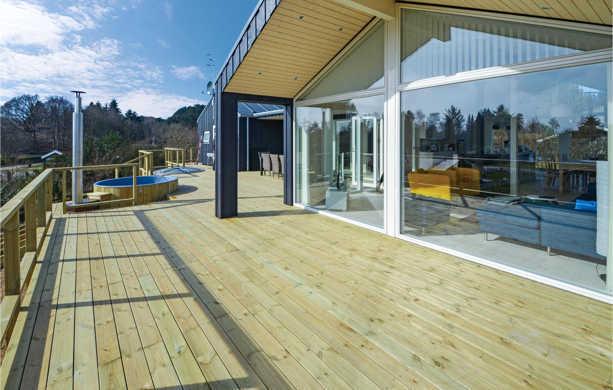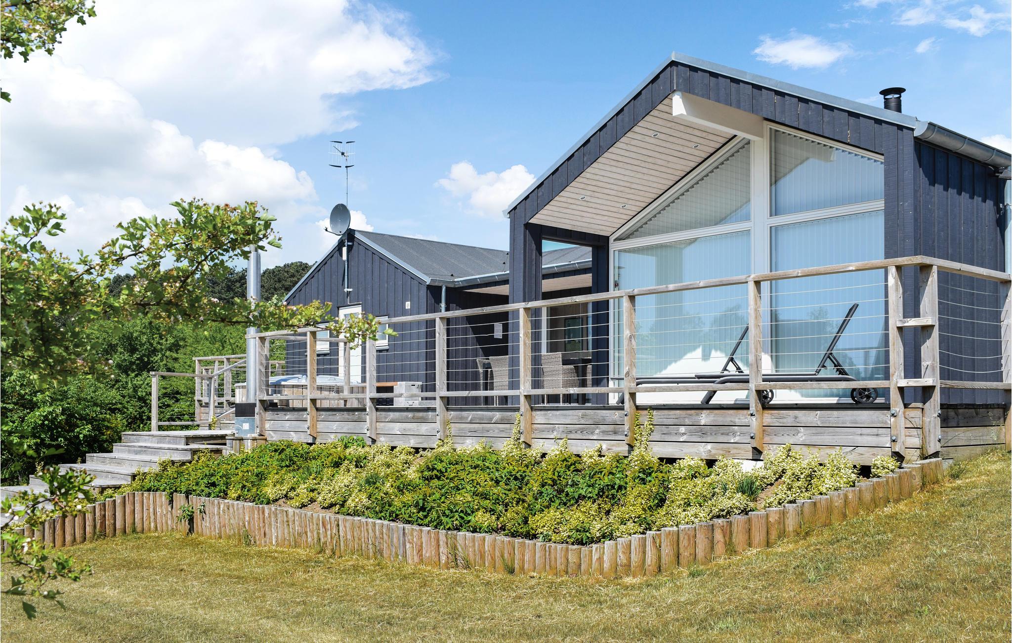 Modern en supermooi vakantiehuis met hoogwaardige inrichting. De inrichting is optimaal, er zijn ook 2 luxe badkamers, waarvan één de sauna herbergt. Binnen in het huis en in de tuin vindt u veel ruimte. Op het grote terras staat een Fins bad voor maximaal acht personen. Het vakantiehuis is hoog gelegen en biedt een prachtig uitzicht. Op loopafstand bevinden zich het strand, de kruidenier en diverse restaurants. Misschien wilt u het Nationaal Park Mols Bjerge of het dierenpark Ree bezoeken.