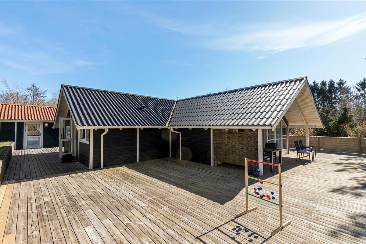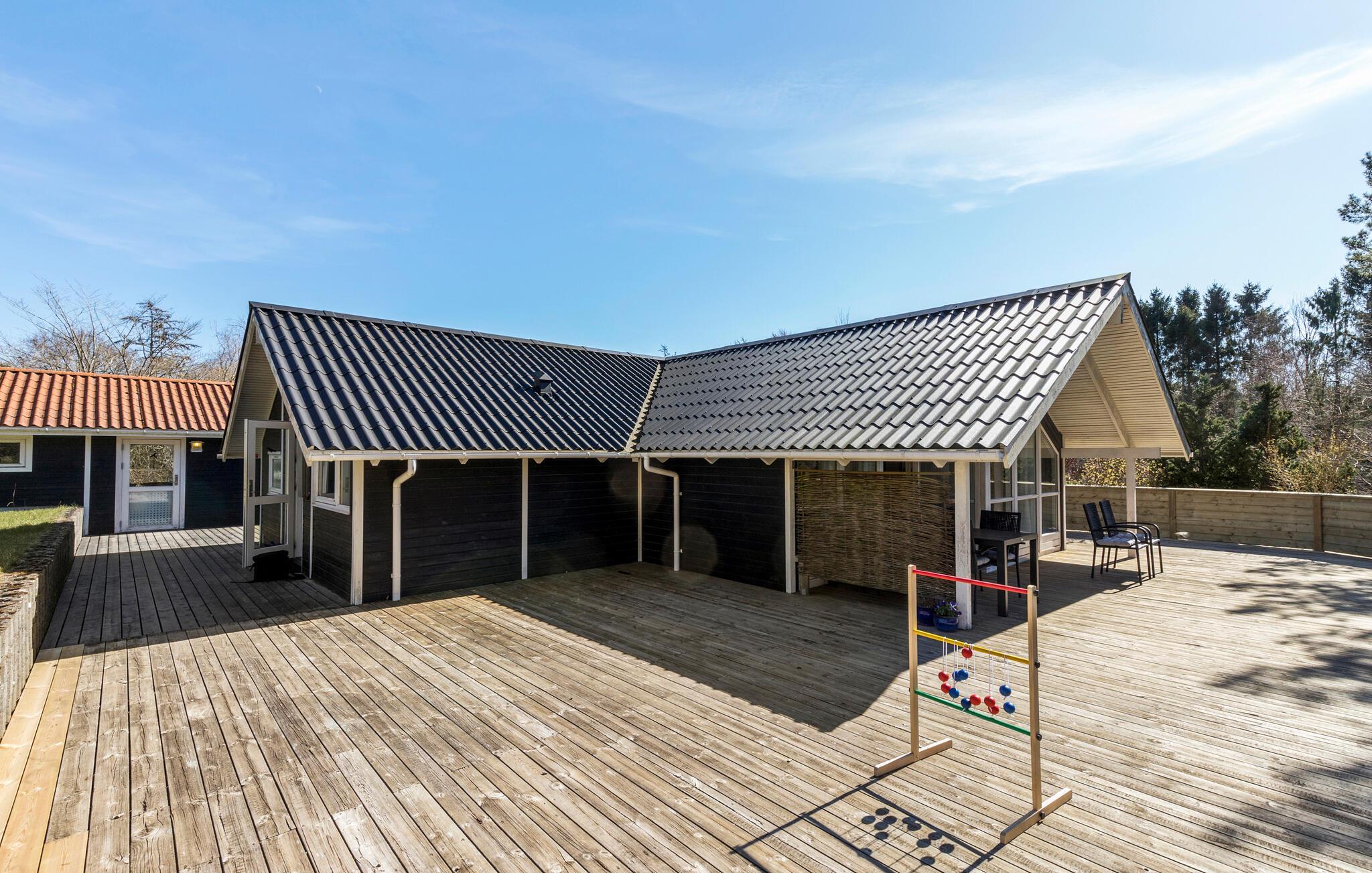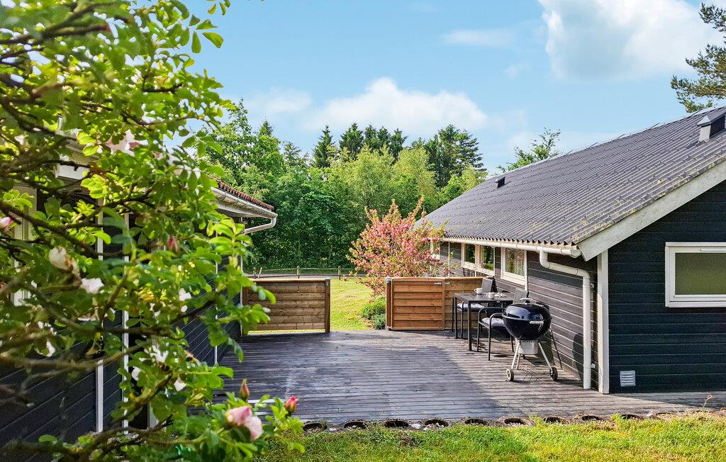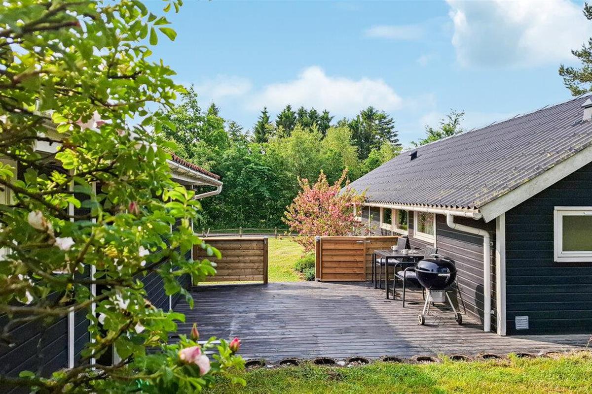 Licht vakantiehuis met tuin en houten terras in Lyngsbæk, ideaal voor gezinnen en rustzoekers.