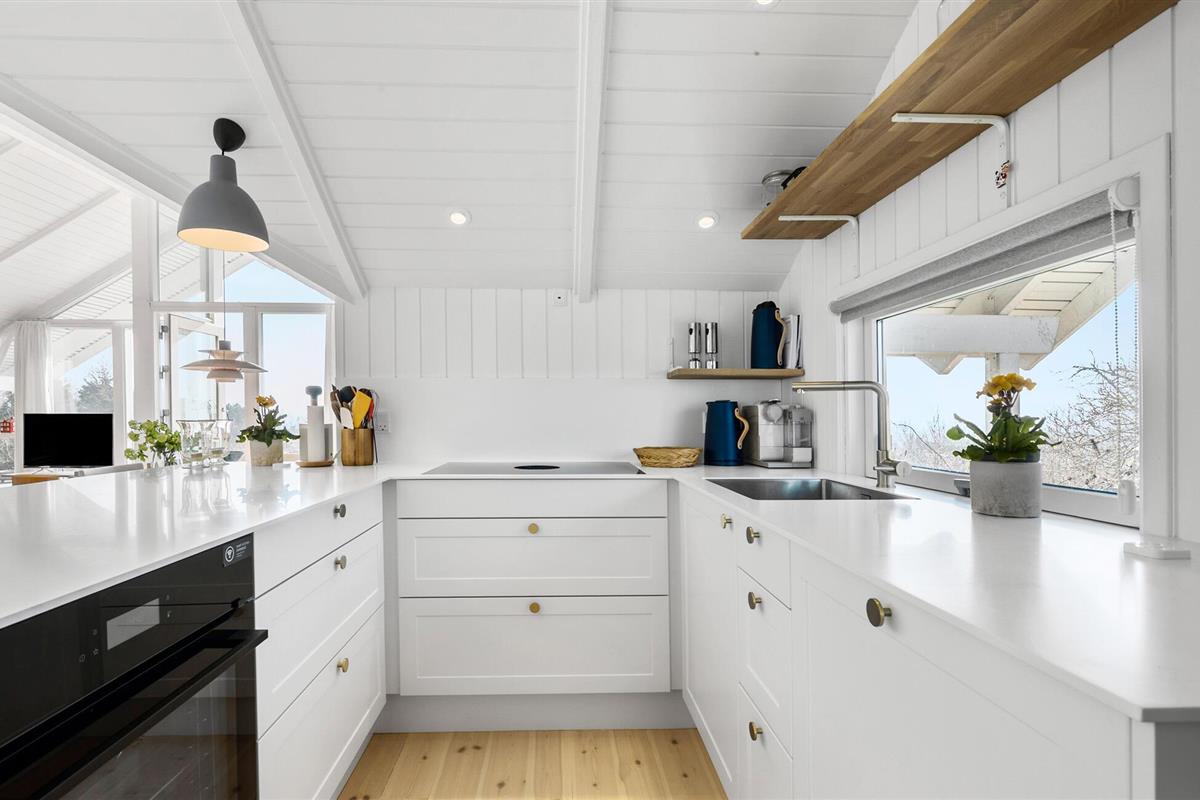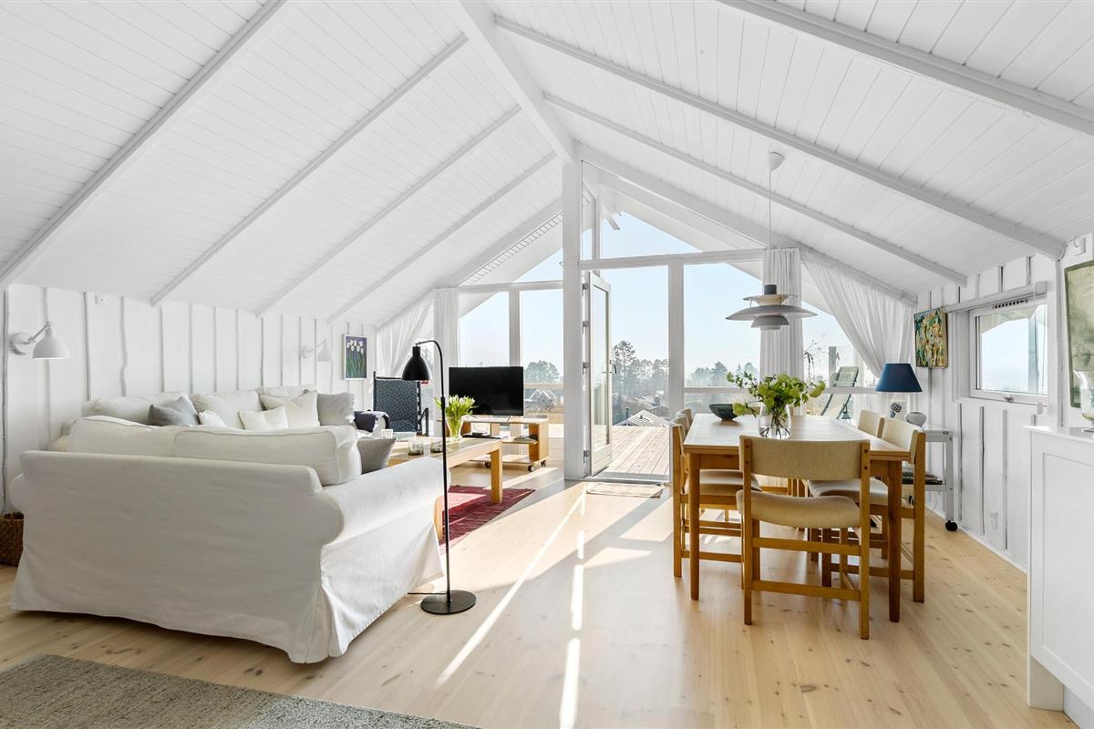 Geniet van een modern vakantiehuis met panoramisch zeezicht, sauna en whirlpool aan Lyngsbæk Strand, Ebeltoft.