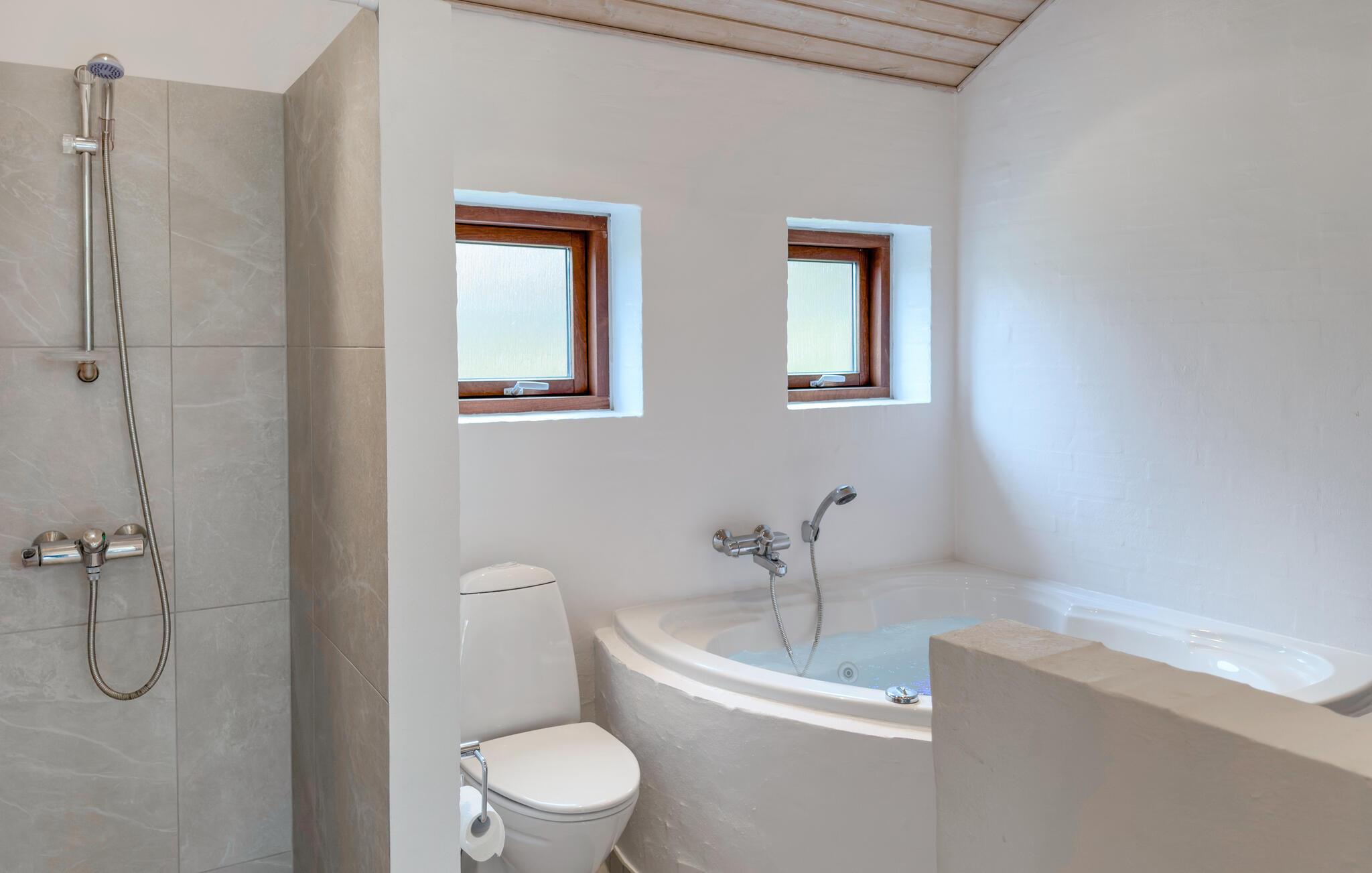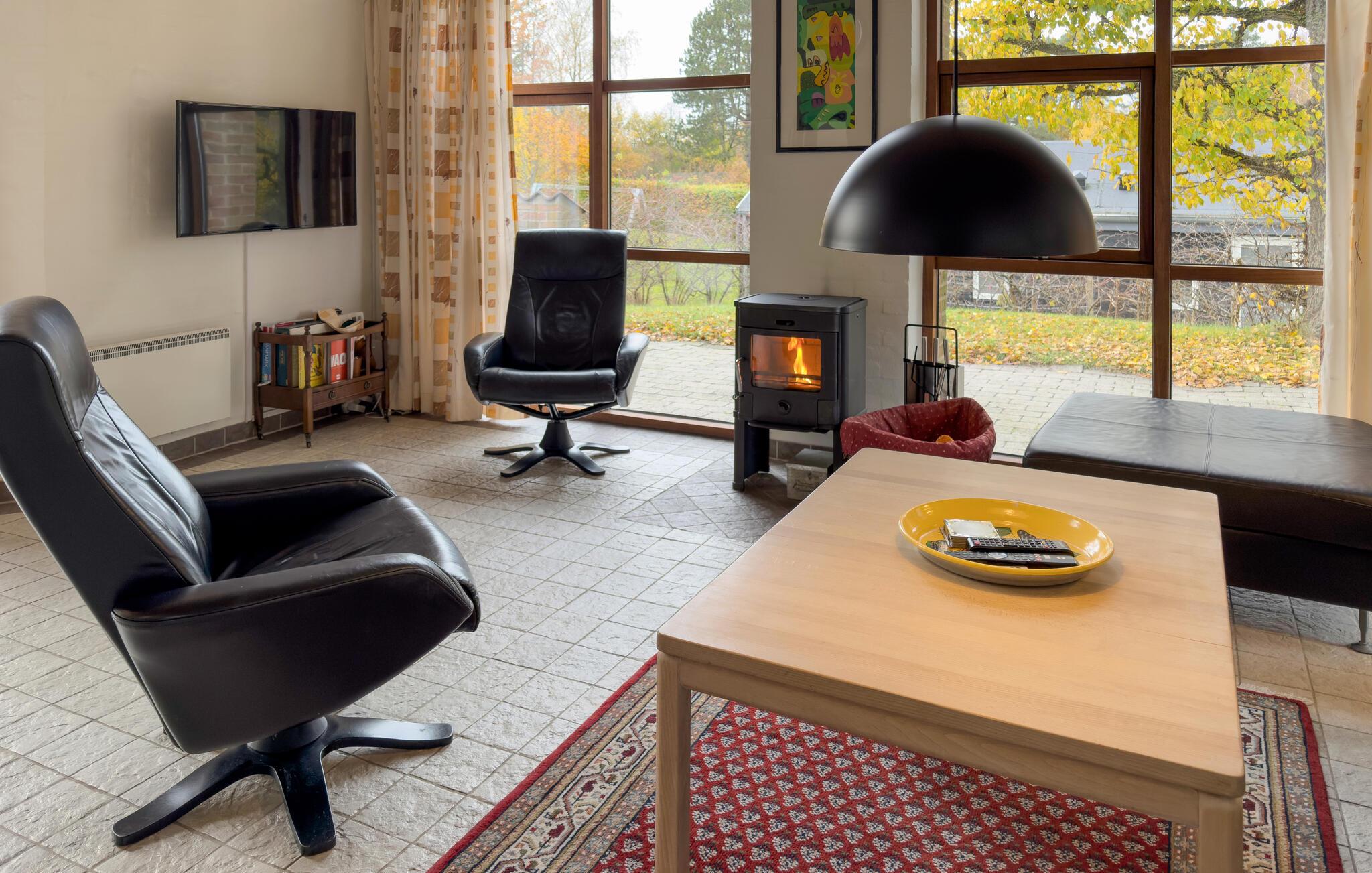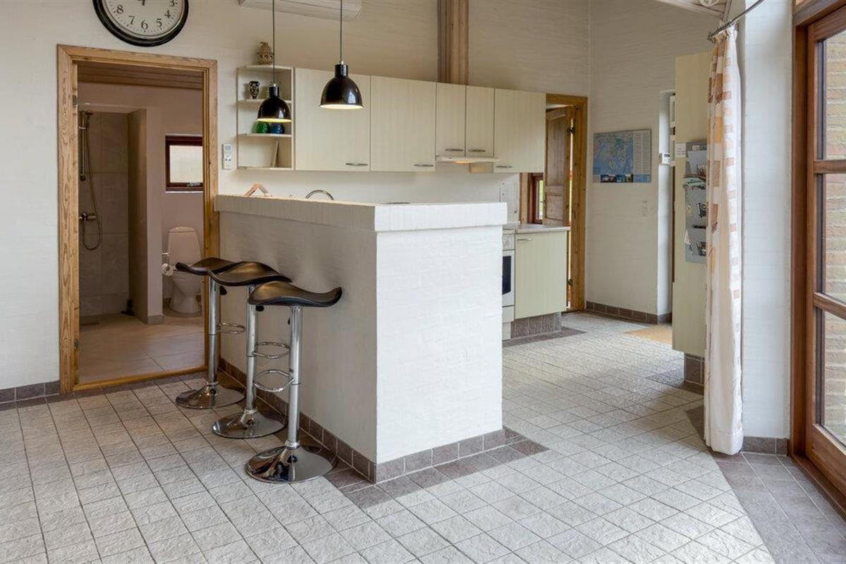 Hier staat een architect achter het grote, moderne en lichte vakantiehuis in een zeer gewild vakantiehuizenproject. U bevindt zich op loopafstand van het kindvriendelijke zandstrand. Bij het strand vindt u een kruidenierswinkel, café en restaurants. Een voet- en fietspad loopt langs het strand naar de stad Ebeltoft. Het huis is hoog gelegen en biedt daardoor een goed uitzicht. Het perceel is licht hellend, met gazon en kleine bomen die erop groeien. U zult zich comfortabel voelen in het huis met drie goede slaapkamers, een goede badkamer en een keuken-woonkamer. Buiten heeft u het grote terras tot uw beschikking. Het internet wordt geleverd via een snelle glasvezelkabelverbinding (50/50).