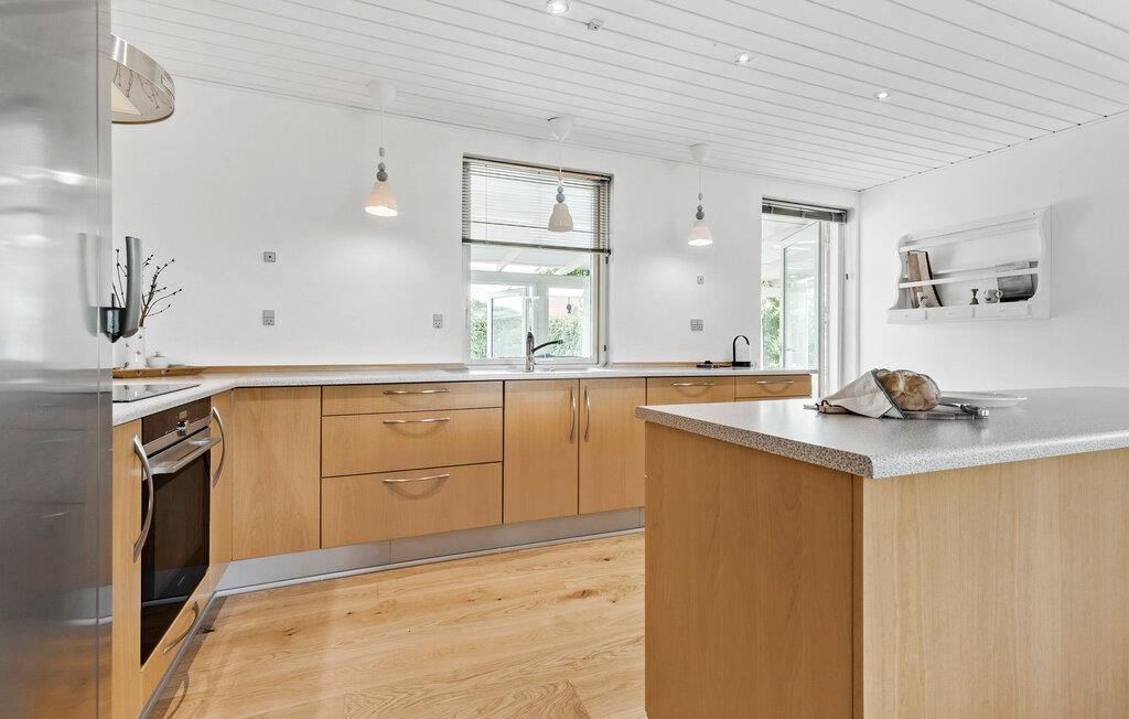 Buiten nodigen gezellige zithoeken je uit om te blijven hangen en te ontspannen. De prachtige tuin biedt je veel privacy en is de ideale plek voor rustige middagen in de buitenlucht. Gebruik de barbecue voor gezellige avonden met het hele gezin. Het dichtstbijzijnde zandstrand ligt op slechts een korte wandeling van je vakantiehuis, waar je kunt zwemmen en genieten van de kustlijn van Ebeltoft Bay.