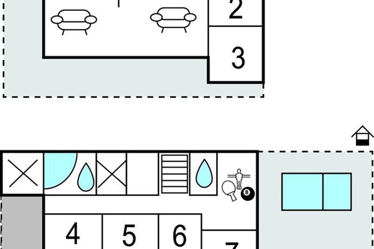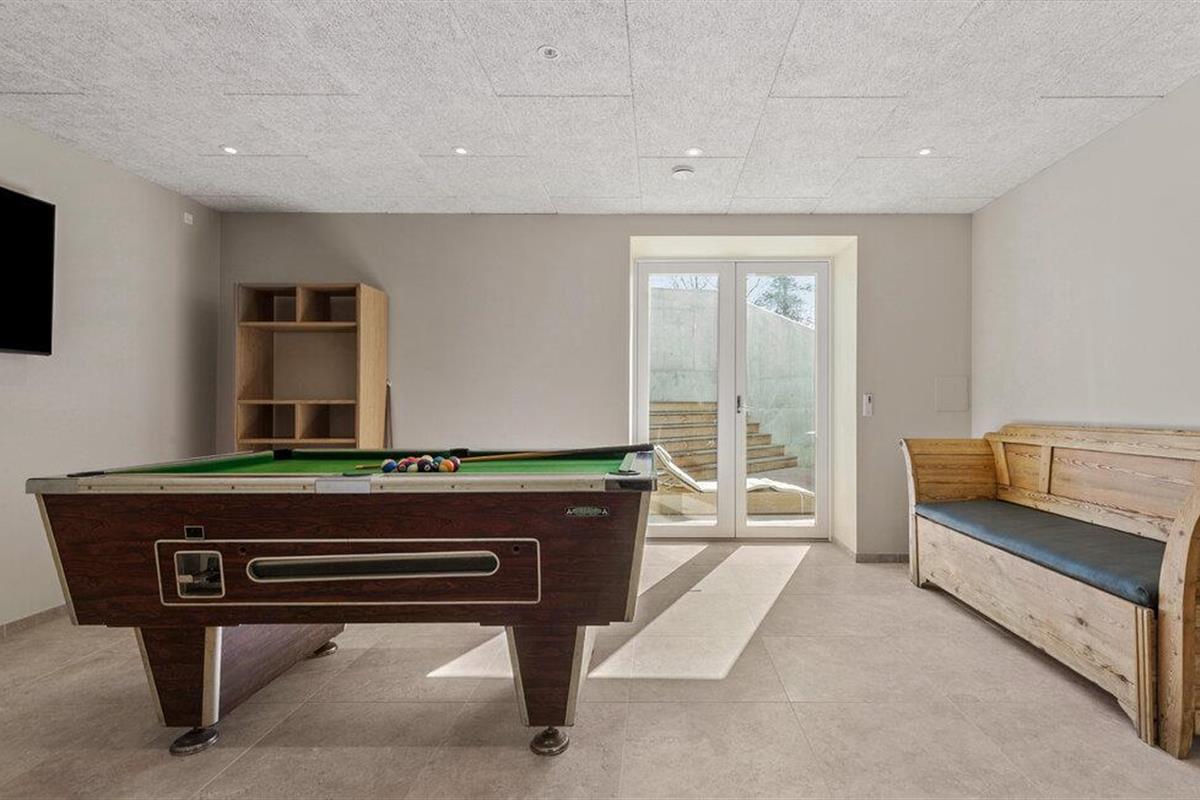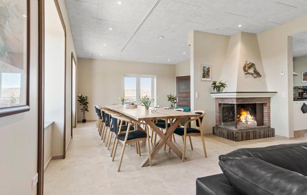 Het stijlvol ingerichte huis biedt ideale omstandigheden voor een grotere groep reizigers of meerdere gezinnen die samen ontspannen dagen willen doorbrengen. De verhoogde ligging zorgt voor een prachtig uitzicht op het platteland en veel licht binnen. Stap binnen in de open woonkamer met een grote zithoek en open haard. Neem plaats aan de lange eettafel en geniet samen van maaltijden in een gezellige sfeer. Bereid je maaltijden in de moderne, goed uitgeruste keuken, die ook genoeg ruimte biedt voor meerdere fijnproevers. Speel daarna een potje pool of ontspan voor de tv.