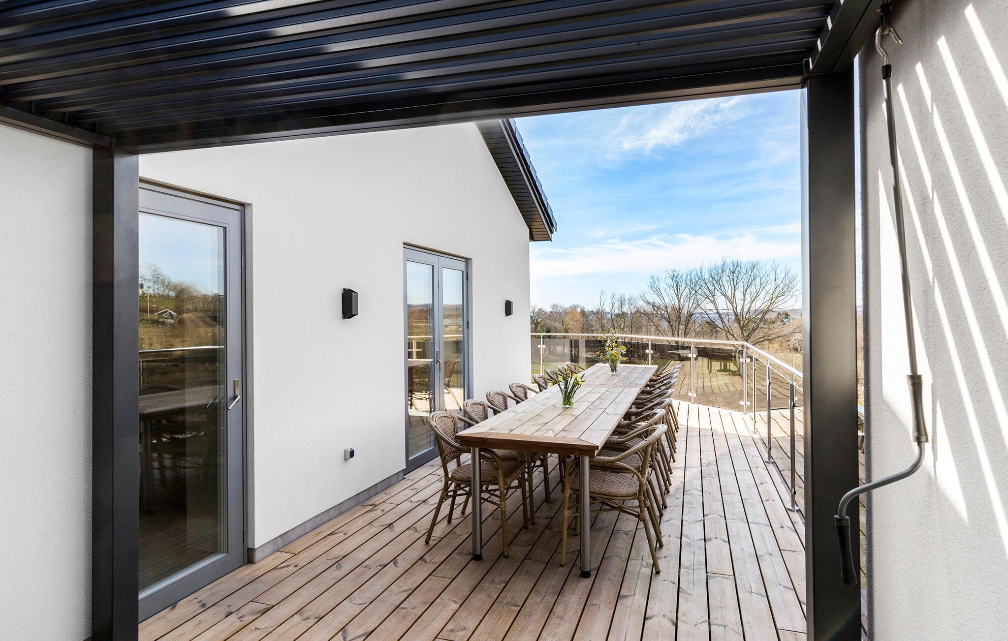 Breng tijd door op de ruime terrassen met verschillende zithoeken, zowel overdekt, zonnig als beschut. Maak gebruik van het bubbelbad, geniet van het uitzicht of neem gewoon de rust van de omgeving in je op. De grote tuin biedt volop ruimte om te spelen of te zonnebaden.