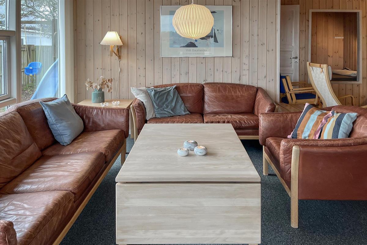 Kom binnen in de ruime woonkamer en maak het jezelf gemakkelijk op de gezellige zitmeubels. Grote ramen laten veel natuurlijk licht binnen en creëren een open uitzicht op de tuin. Bereid je maaltijden in de praktische keuken, die indruk maakt met veel werkruimte en directe toegang tot de woonkamer. Gebruik de lange eettafel voor gezamenlijke maaltijden of voor leuke bord- en kaartspellen op gezellige avonden. Neem een duik in de whirlpool of geniet van de weldadige warmte van de sauna.