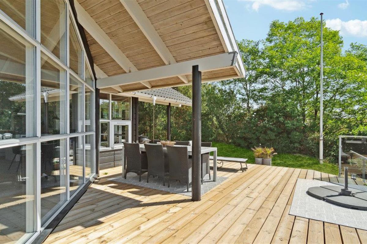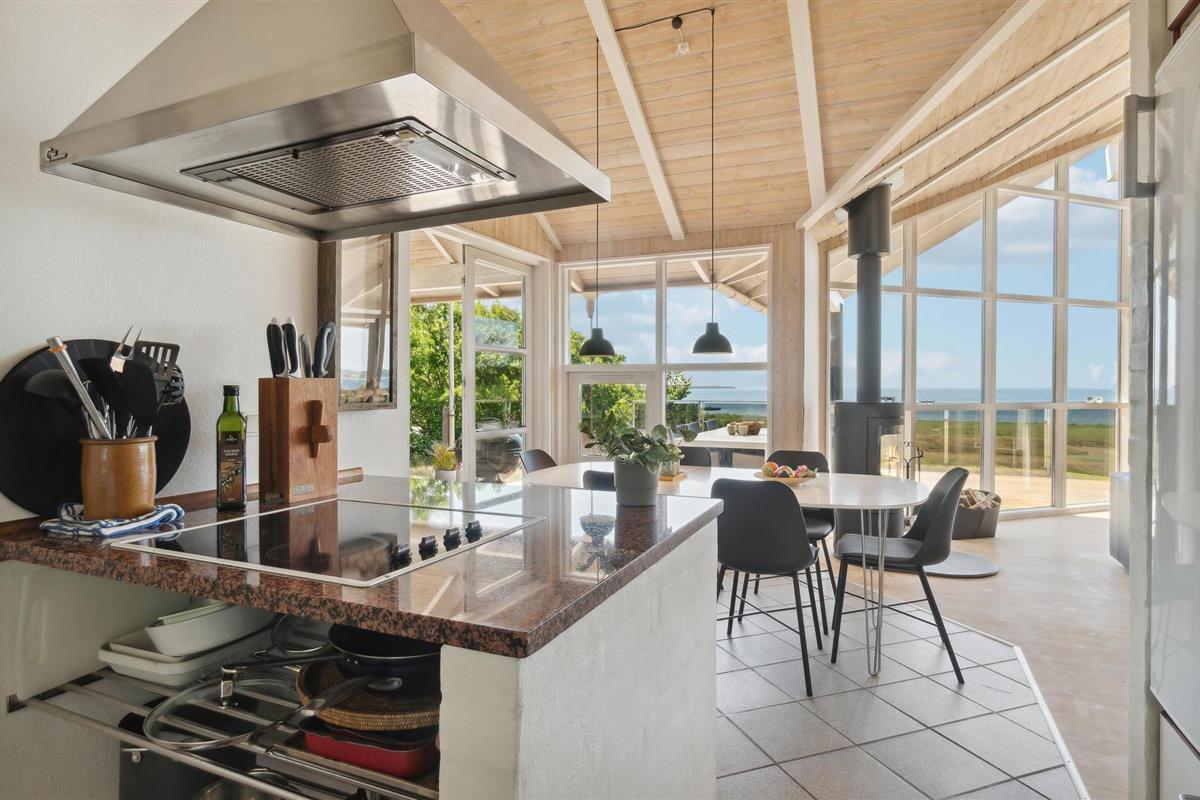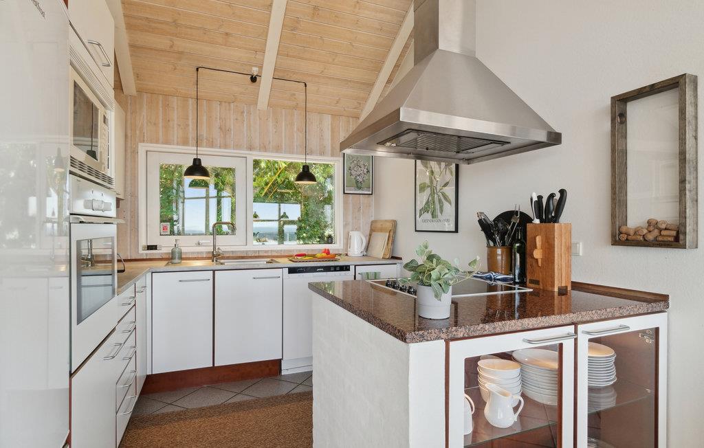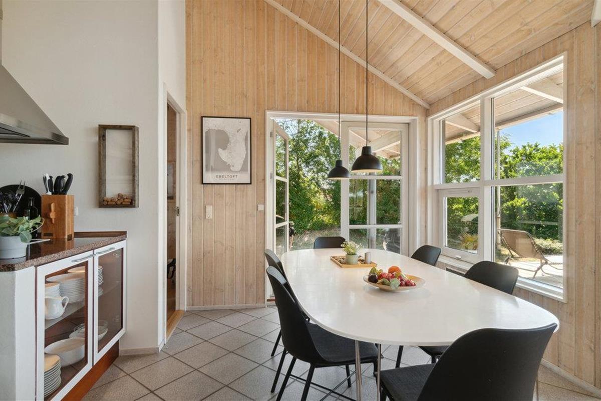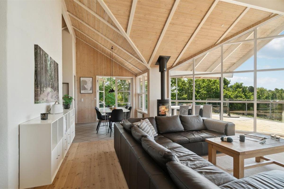 U kunt bijna in het hele huis genieten van het prachtige uitzicht op zee. Vooral het uitzicht op de zonsondergang over het water. Het vakantiehuis is licht en modern ingericht, met mooie meubels en een goed uitgeruste keuken. Vanuit de woonkamer heeft u toegang tot het prachtige terras, deels open, deels gesloten. 56 treden leiden naar het huis, dat gelegen is in het aantrekkelijke, heuvelachtige Lyngsbæk/Femmøller gebied, met prachtig strand en bos in de buurt. Een wandeling, of een fietstocht langs de kust naar Ebeltoft (ca. 6 km) is een aanrader.