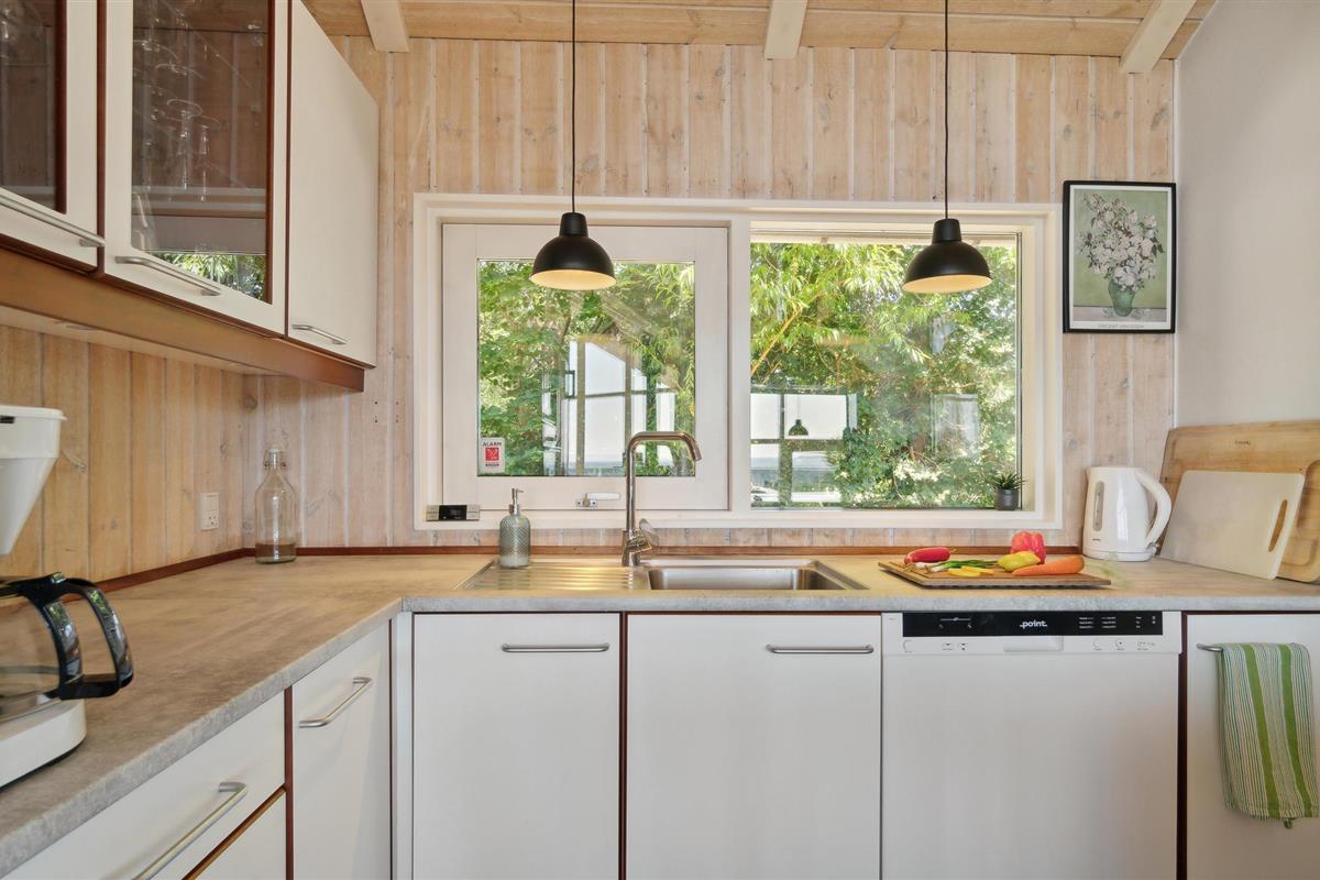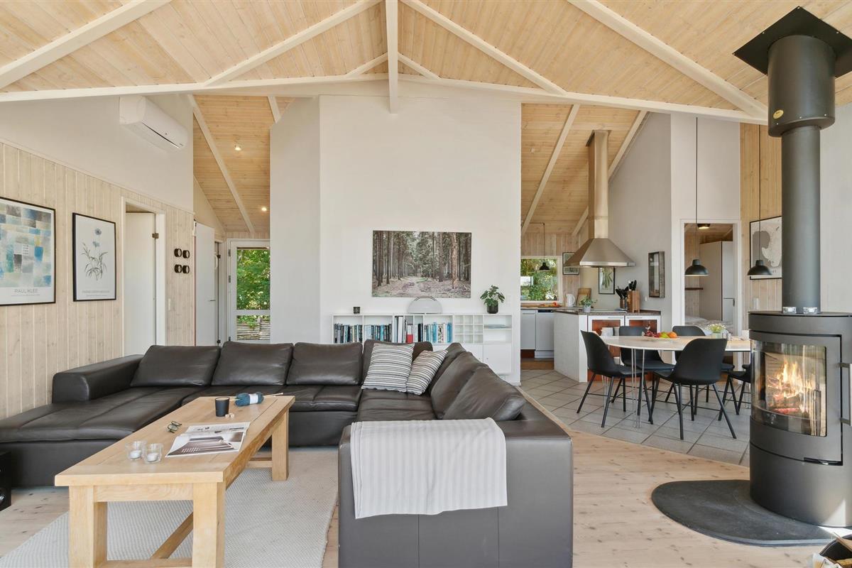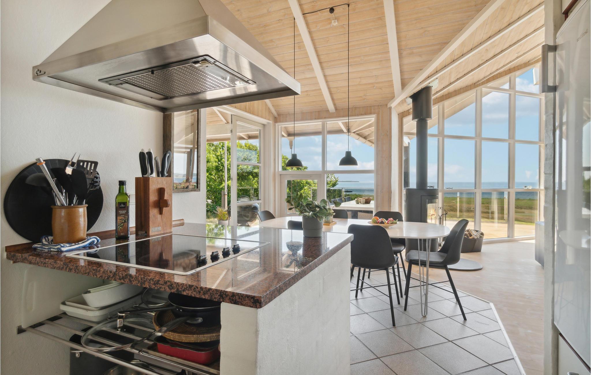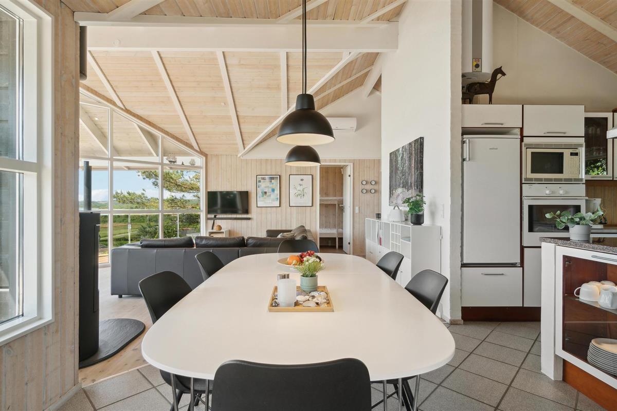 U kunt bijna in het hele huis genieten van het prachtige uitzicht op zee. Vooral het uitzicht op de zonsondergang over het water. Het vakantiehuis is licht en modern ingericht, met mooie meubels en een goed uitgeruste keuken. Vanuit de woonkamer heeft u toegang tot het prachtige terras, deels open, deels gesloten. 56 treden leiden naar het huis, dat gelegen is in het aantrekkelijke, heuvelachtige Lyngsbæk/Femmøller gebied, met prachtig strand en bos in de buurt. Een wandeling, of een fietstocht langs de kust naar Ebeltoft (ca. 6 km) is een aanrader.