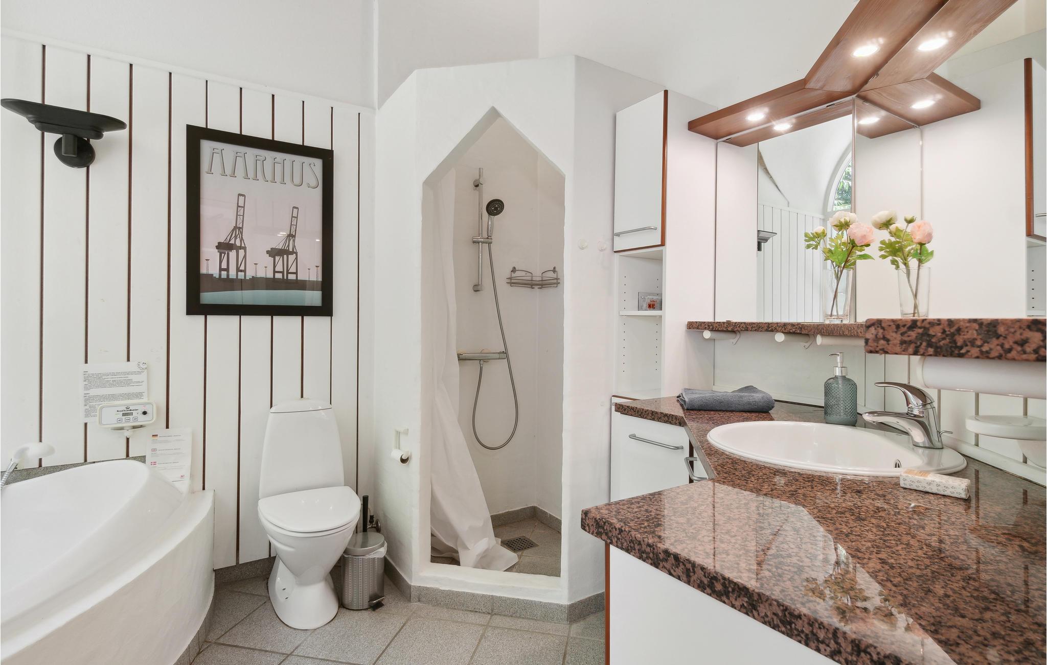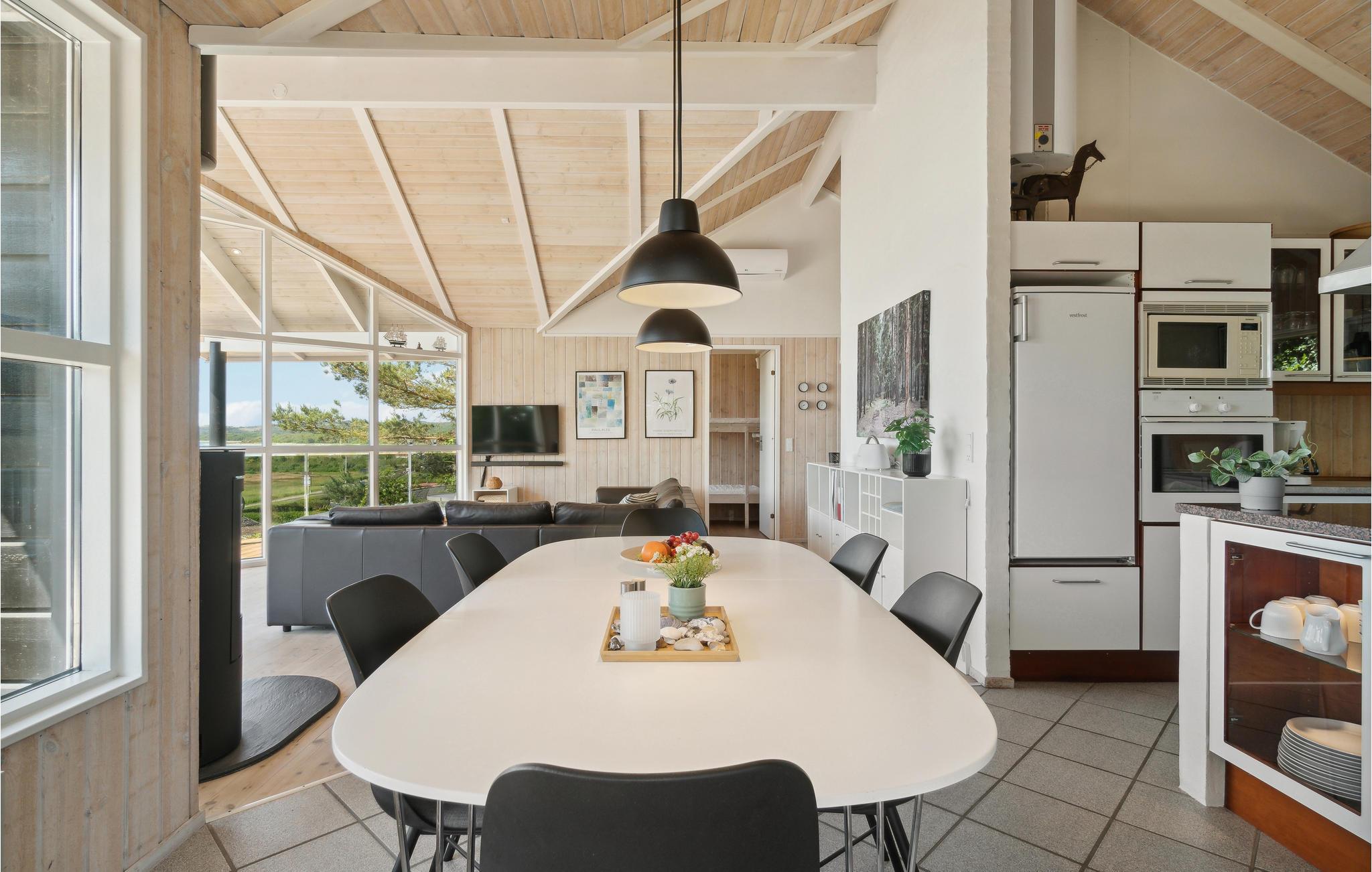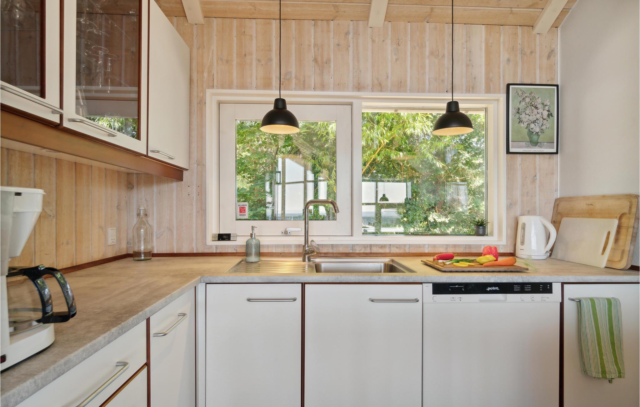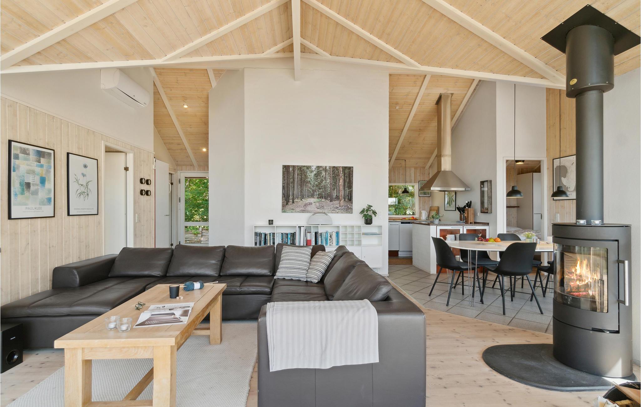 U kunt bijna in het hele huis genieten van het prachtige uitzicht op zee. Vooral het uitzicht op de zonsondergang over het water. Het vakantiehuis is licht en modern ingericht, met mooie meubels en een goed uitgeruste keuken. Vanuit de woonkamer heeft u toegang tot het prachtige terras, deels open, deels gesloten. 56 treden leiden naar het huis, dat gelegen is in het aantrekkelijke, heuvelachtige Lyngsbæk/Femmøller gebied, met prachtig strand en bos in de buurt. Een wandeling, of een fietstocht langs de kust naar Ebeltoft (ca. 6 km) is een aanrader.