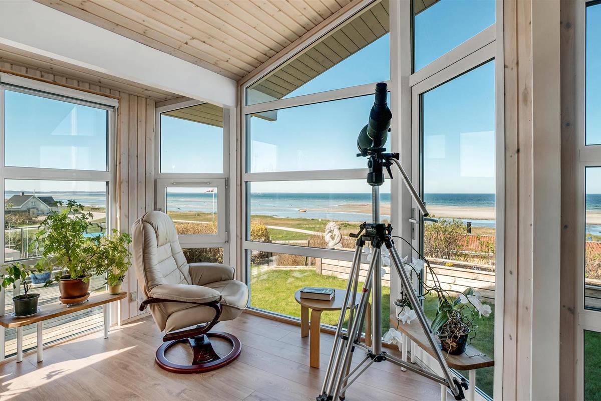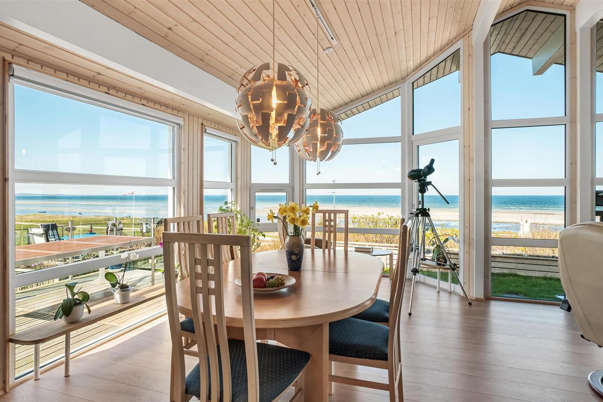Met een fantastisch uitzicht op het Kattegat, verwelkomt dit lichte vakantiehuis u in de eerste rij water.