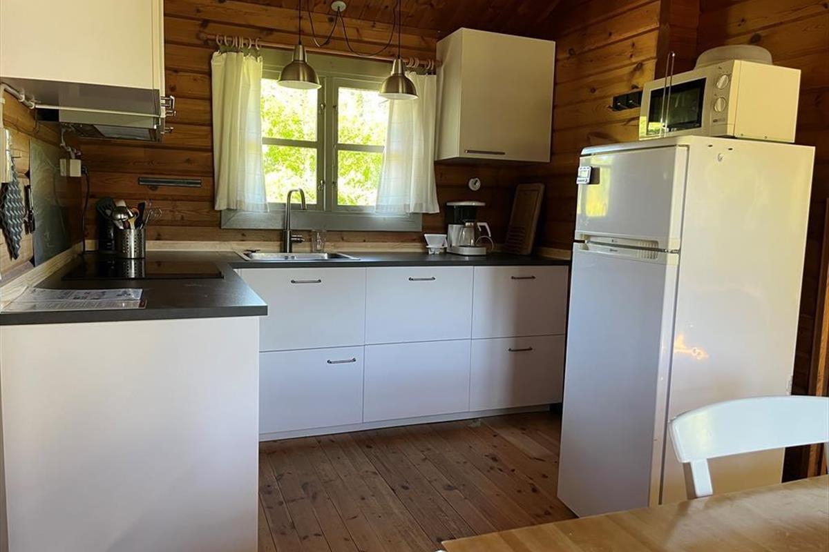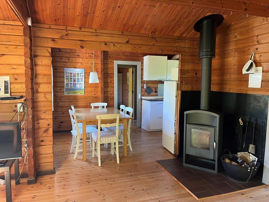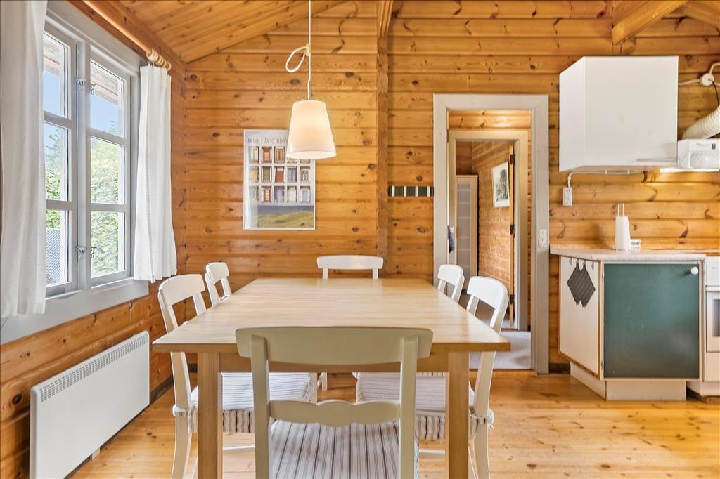 Der Kaminofen ist mitten im Herzstück des Hauses, dem Wohnraum, platziert. In diesem Raum werden Sie viel gemeinsame Zeit verbringen. Sie können in aller Ruhe lesen, Gesellschaftsspiele spielen oder den Fernseher nutzen, der deutsche und dänische Sender empfängt. Kostenlos nutzbares WiFi ist ebenfalls vorhanden. In direkter Verlängerung des Wohnraums befinden sich die Küche und der Esstisch, der Platz für sechs Personen bietet. Das Haus ist klein, aber gemütlich und garantiert Ihnen schönste klassische Ferienhausatmosphäre.