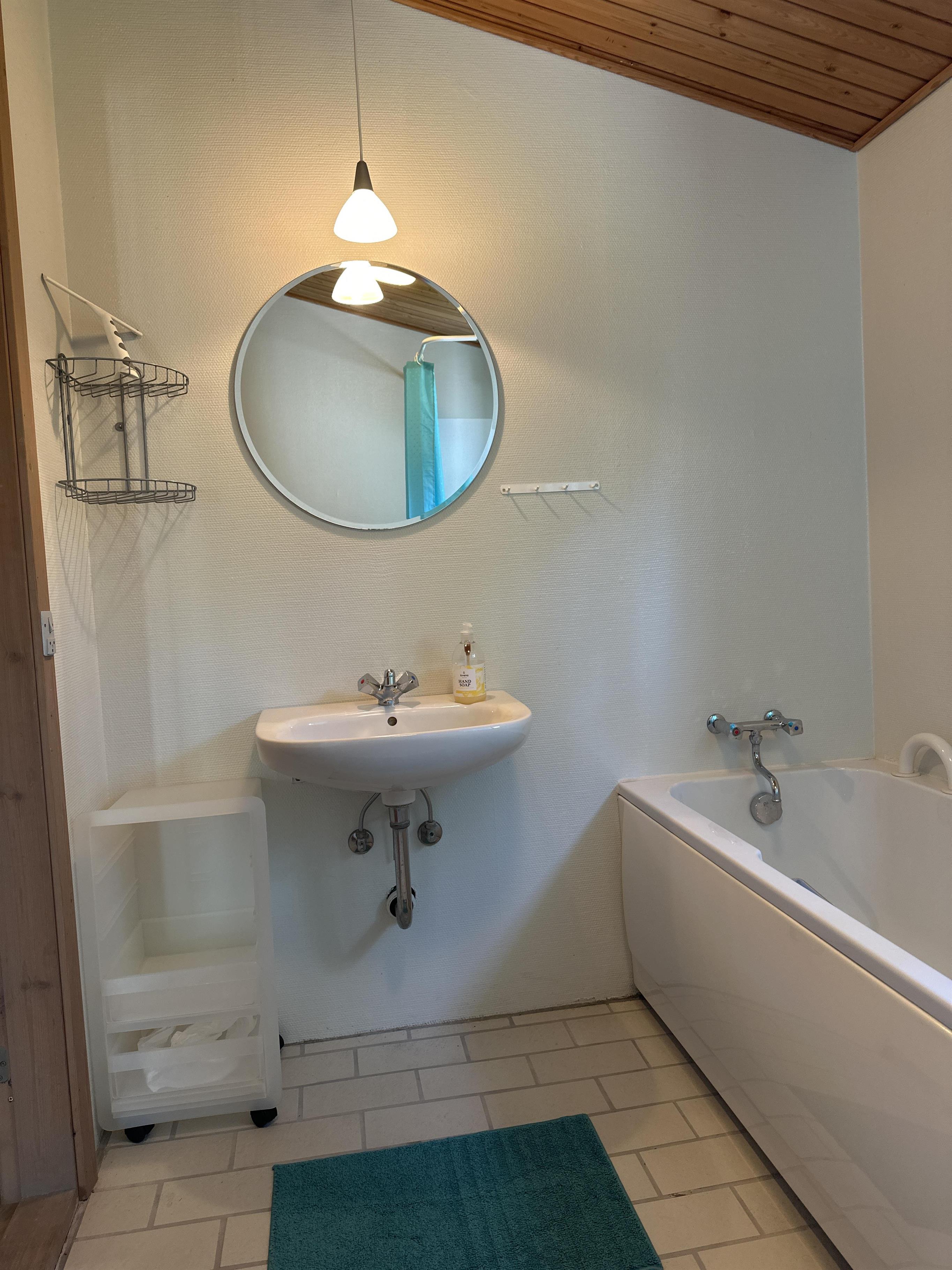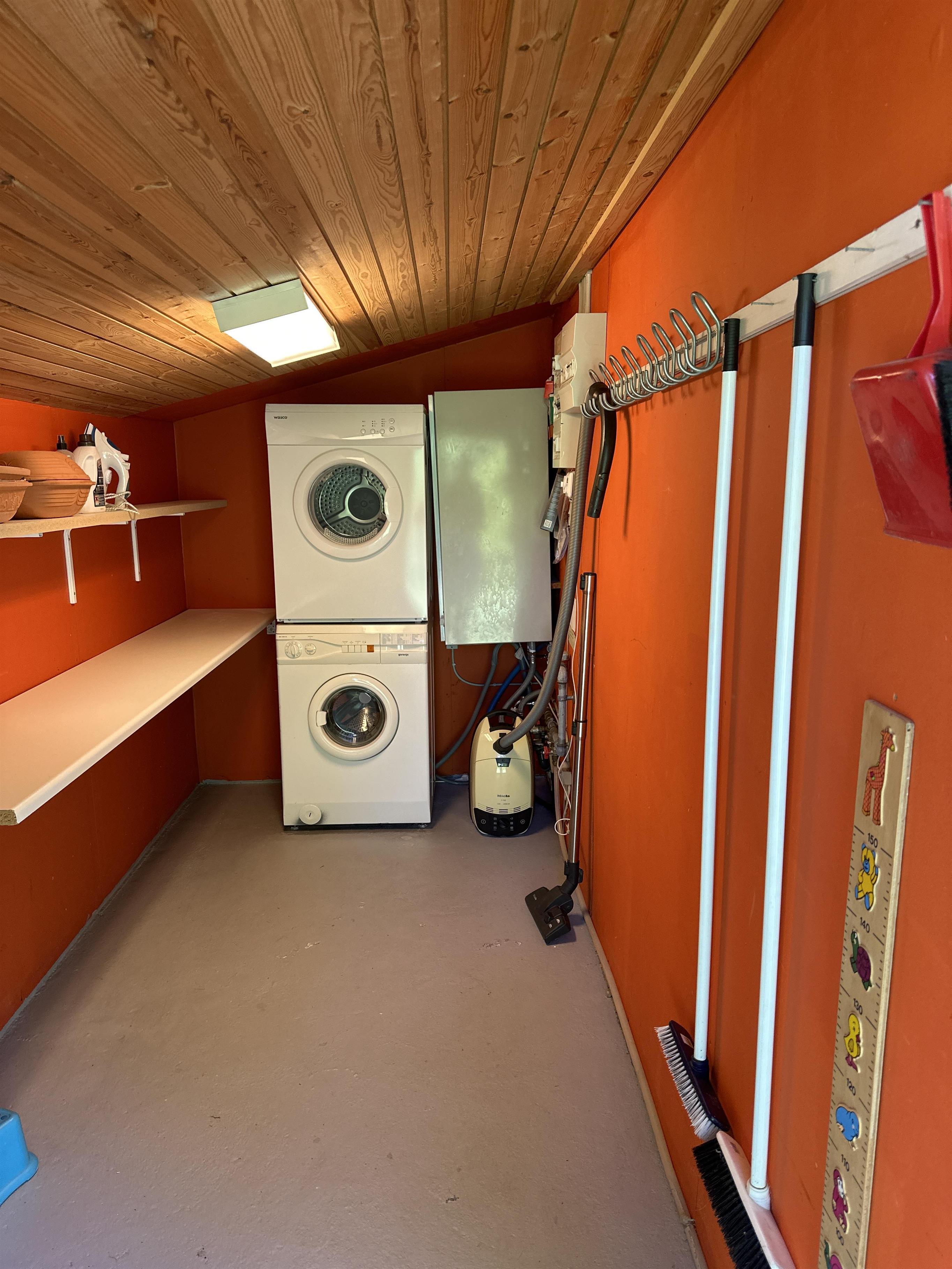 The bathroom is nicely and functionally furnished with a shower cubicle and spa bath, where you can enjoy a relaxing bath after a trip to the sea. In the adjoining extension, you will also find a practical laundry room and an extra bathroom with sauna – ideal for a quiet moment of warmth and well-being on a cool evening or after a brisk walk.