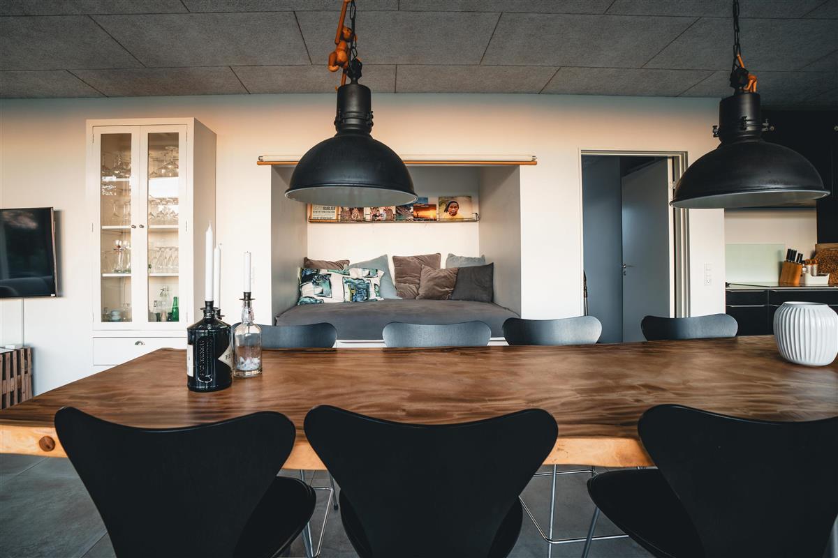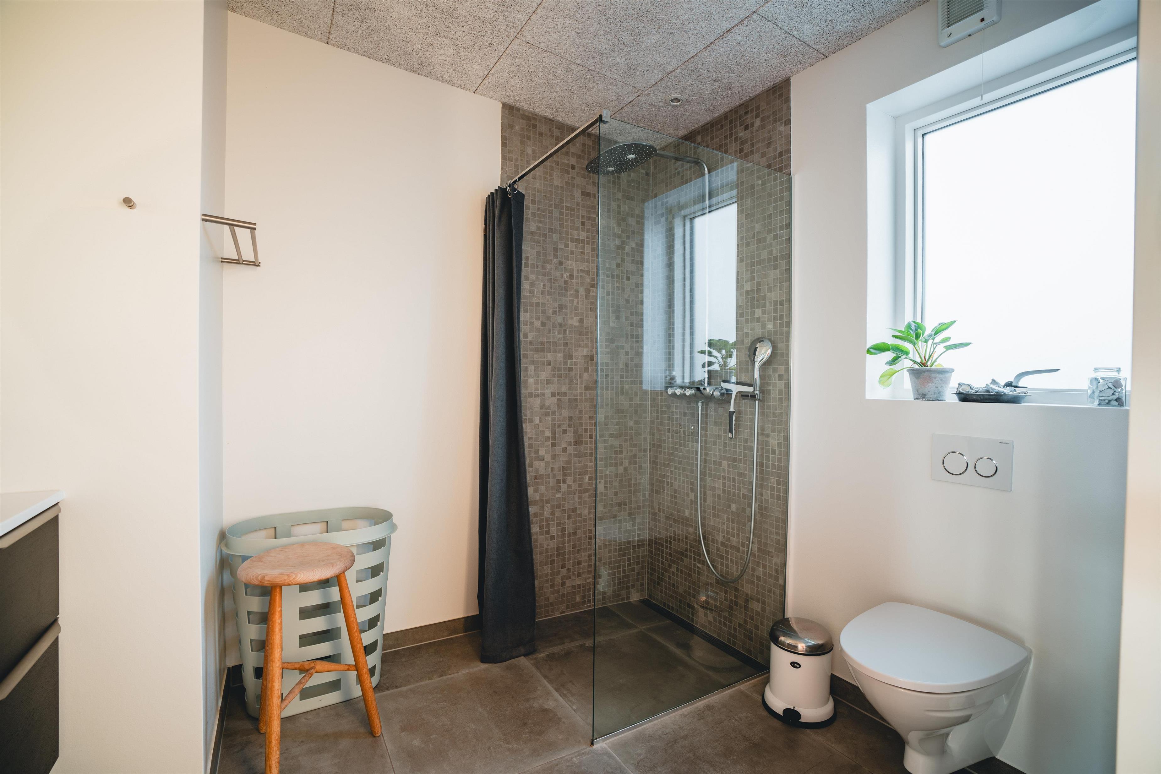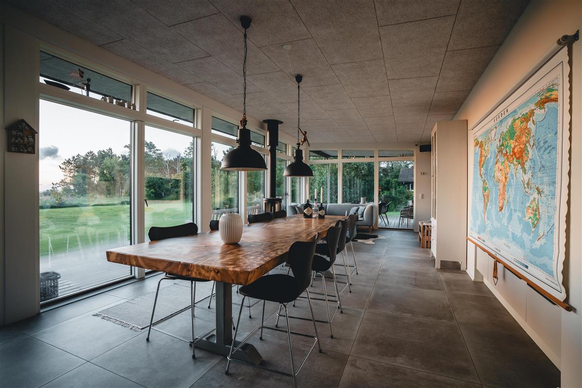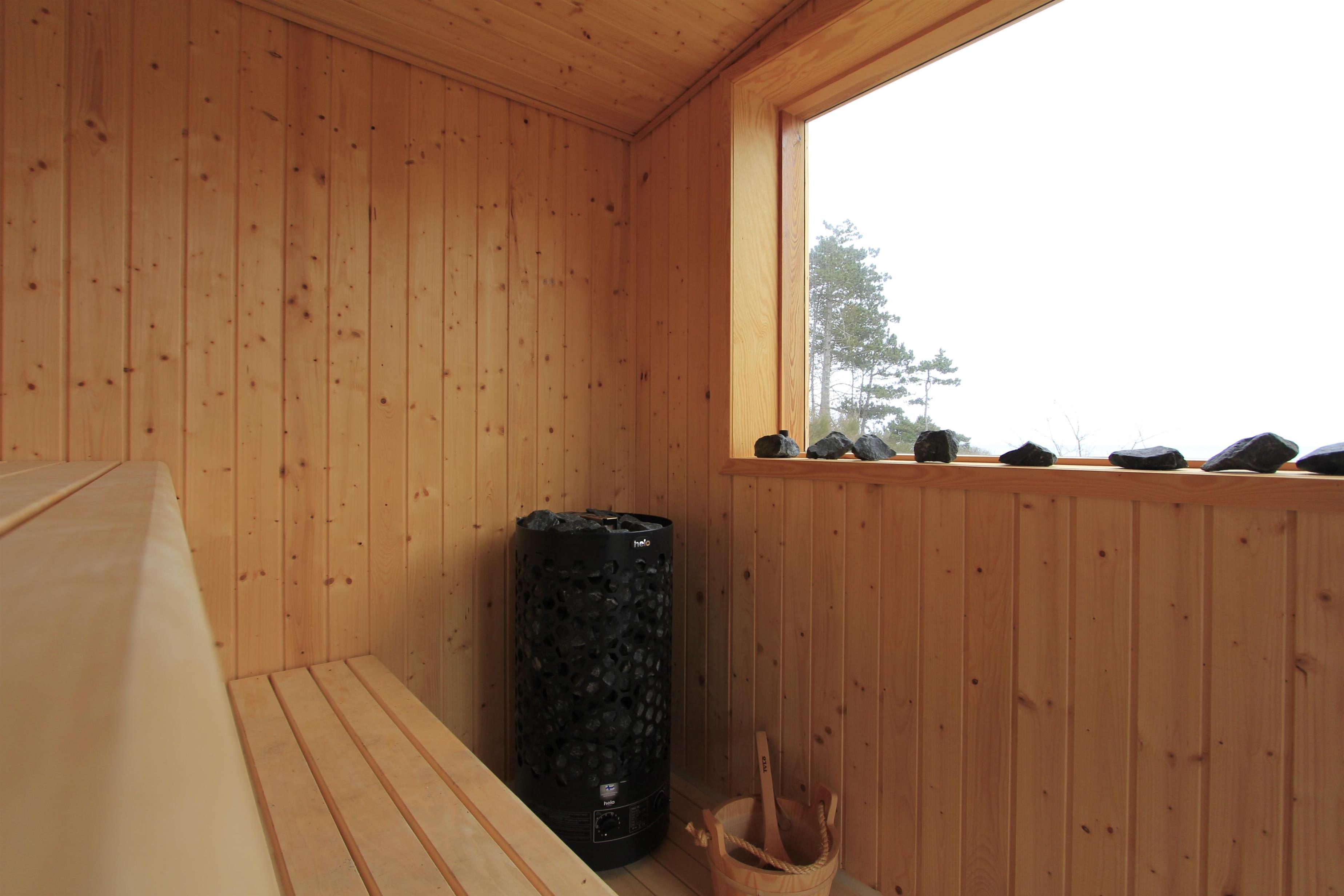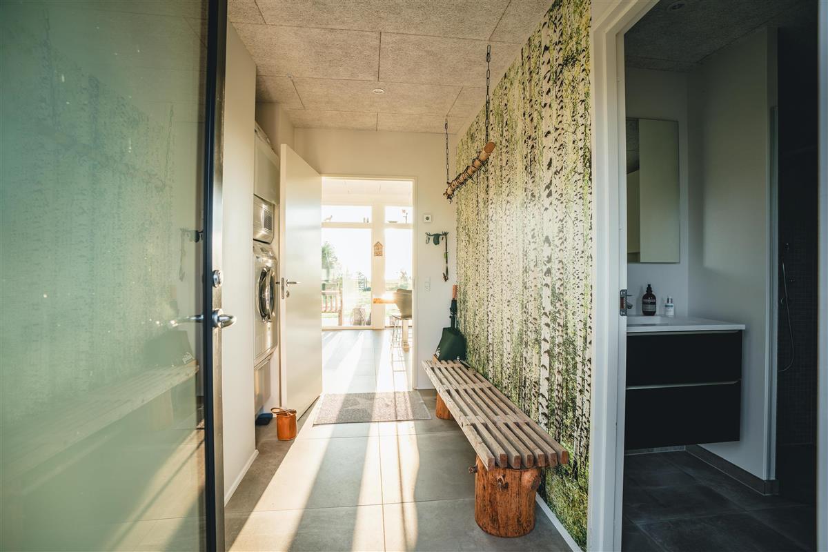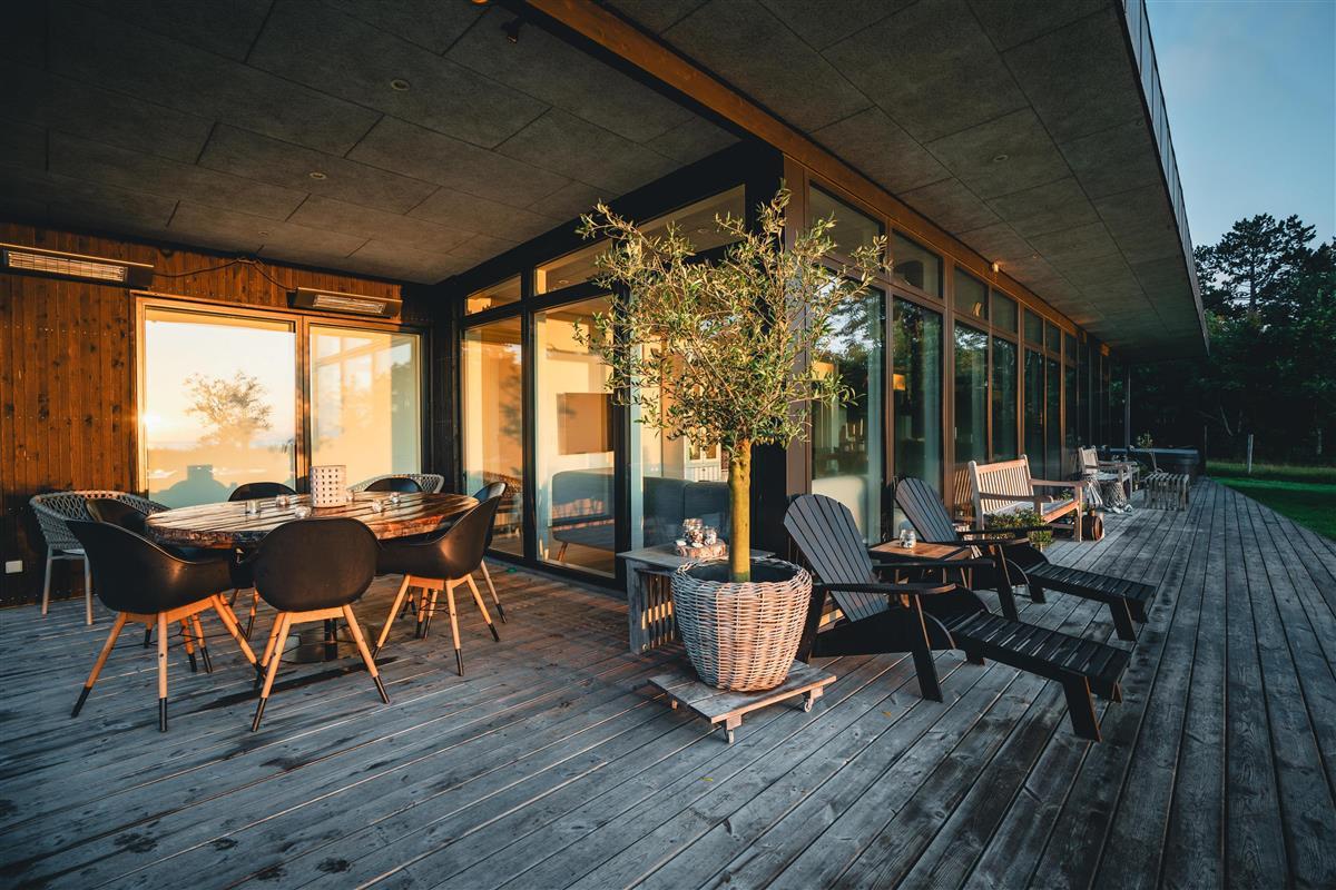 Enjoy the view on the terrace, which is partially covered and furnished with modern garden furniture and a barbecue. Here you can enjoy long, bright evenings surrounded by nature. On hot summer days, the sun loungers are perfect for sunbathing, and in the sauna in the middle of the grounds, you can relax with a view of the sea. The grounds are fenced in, making the house particularly suitable for those who want to bring their dog. A charging station for electric cars has been installed so you can charge your car directly at the house.