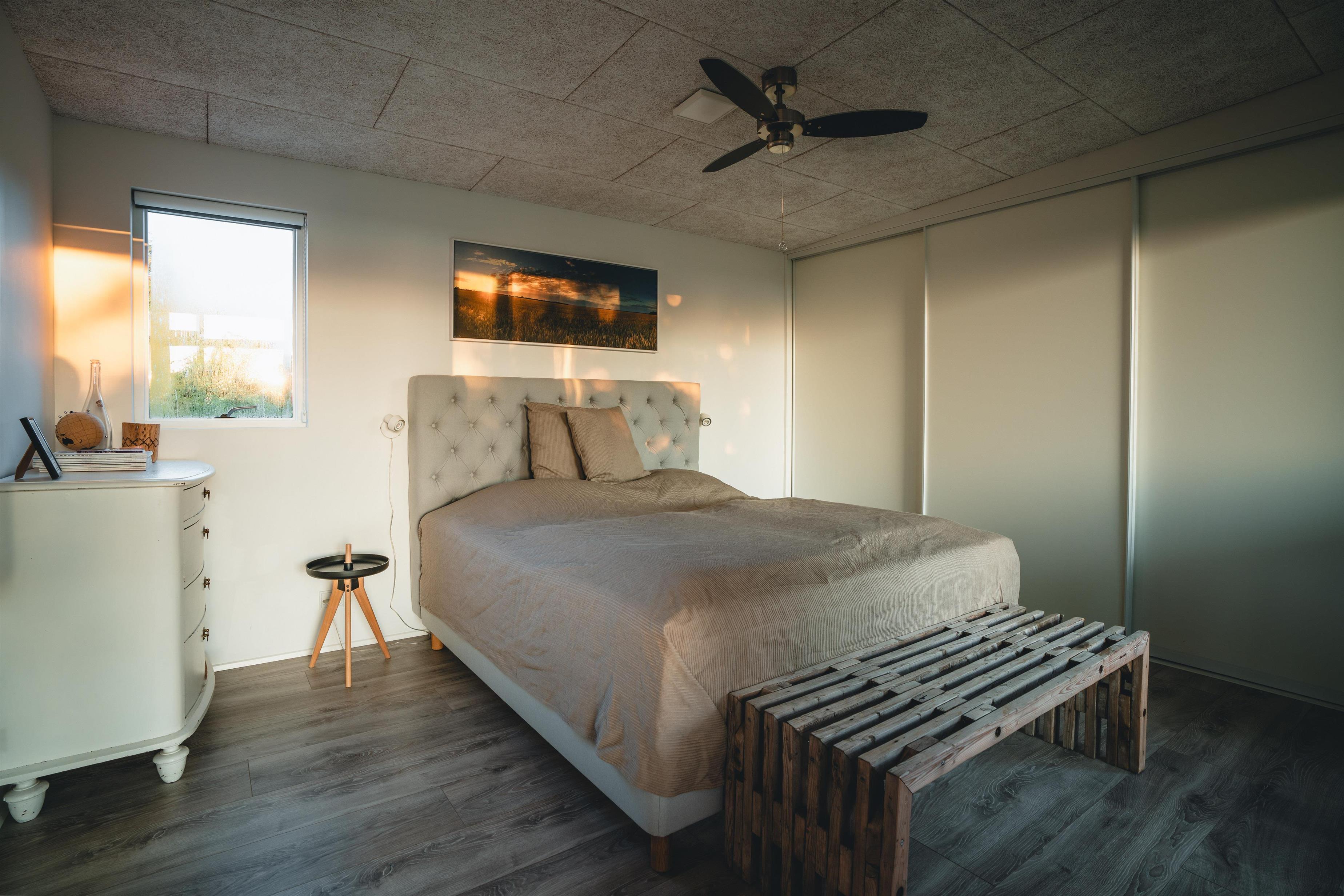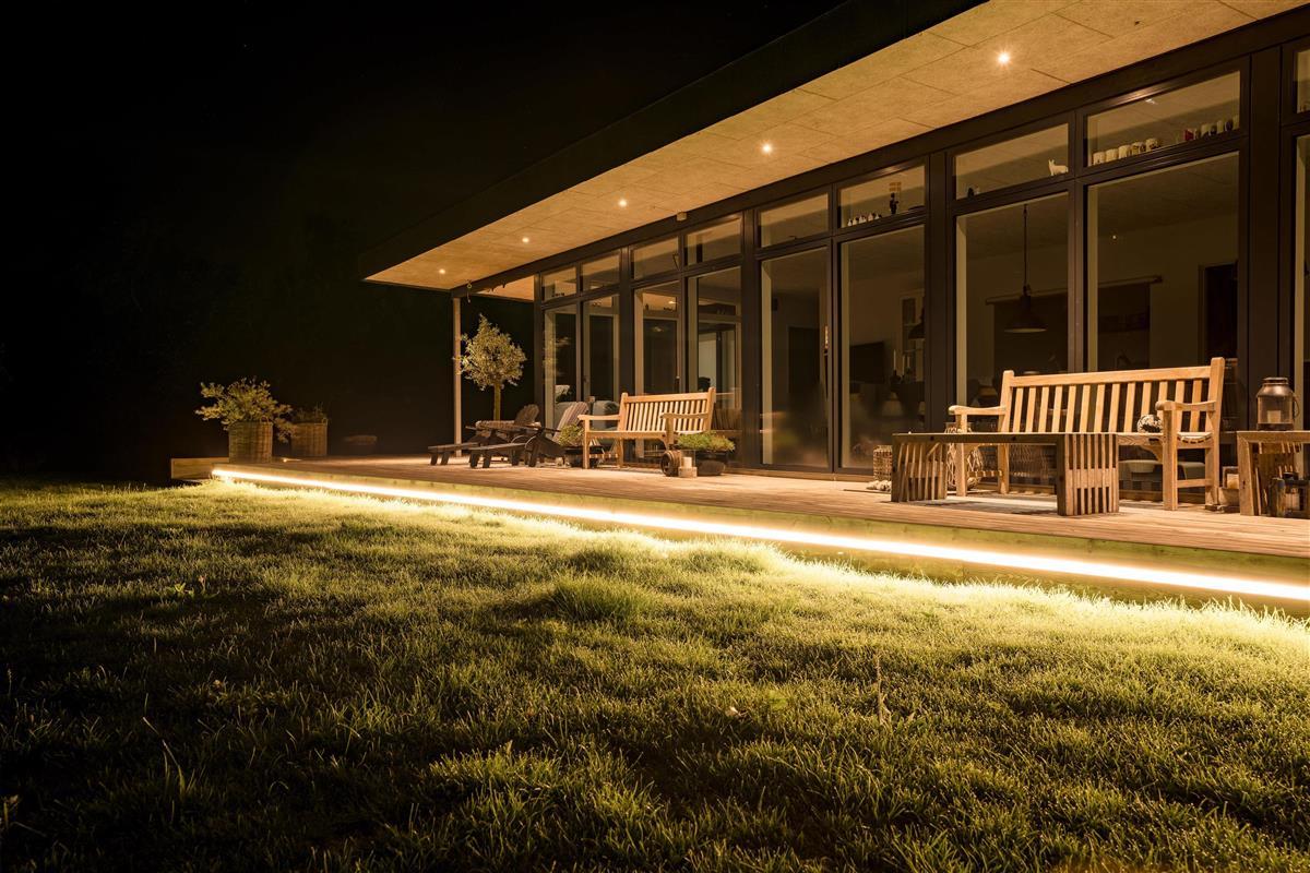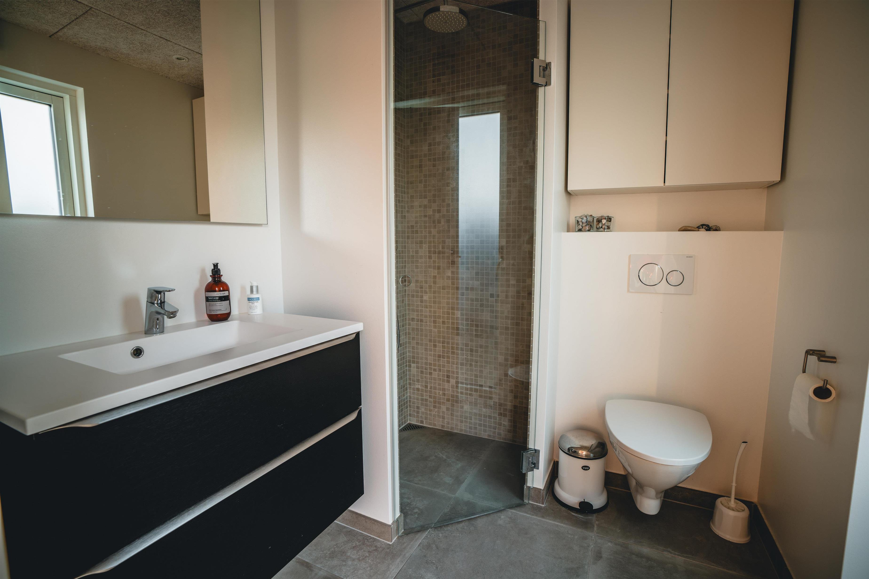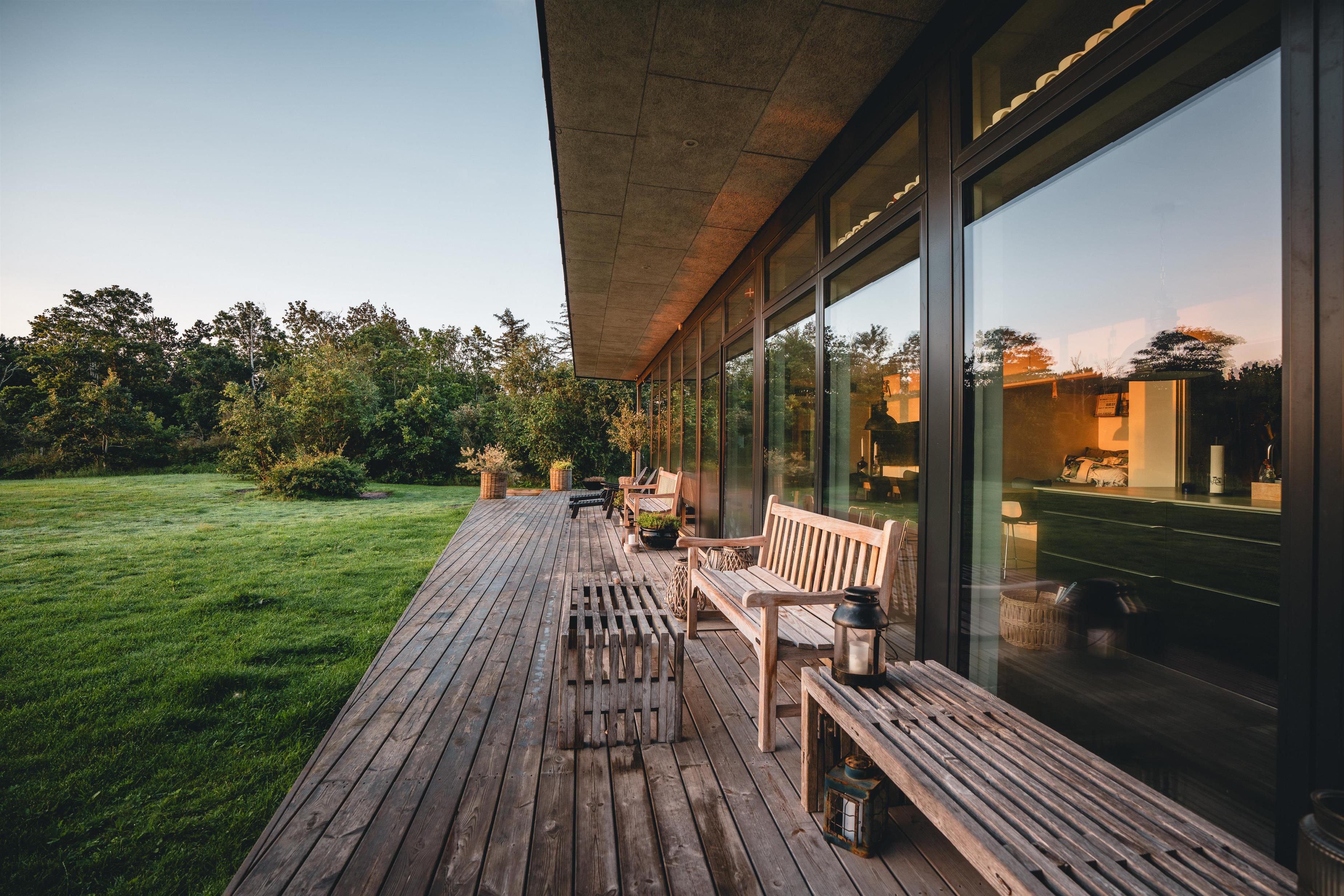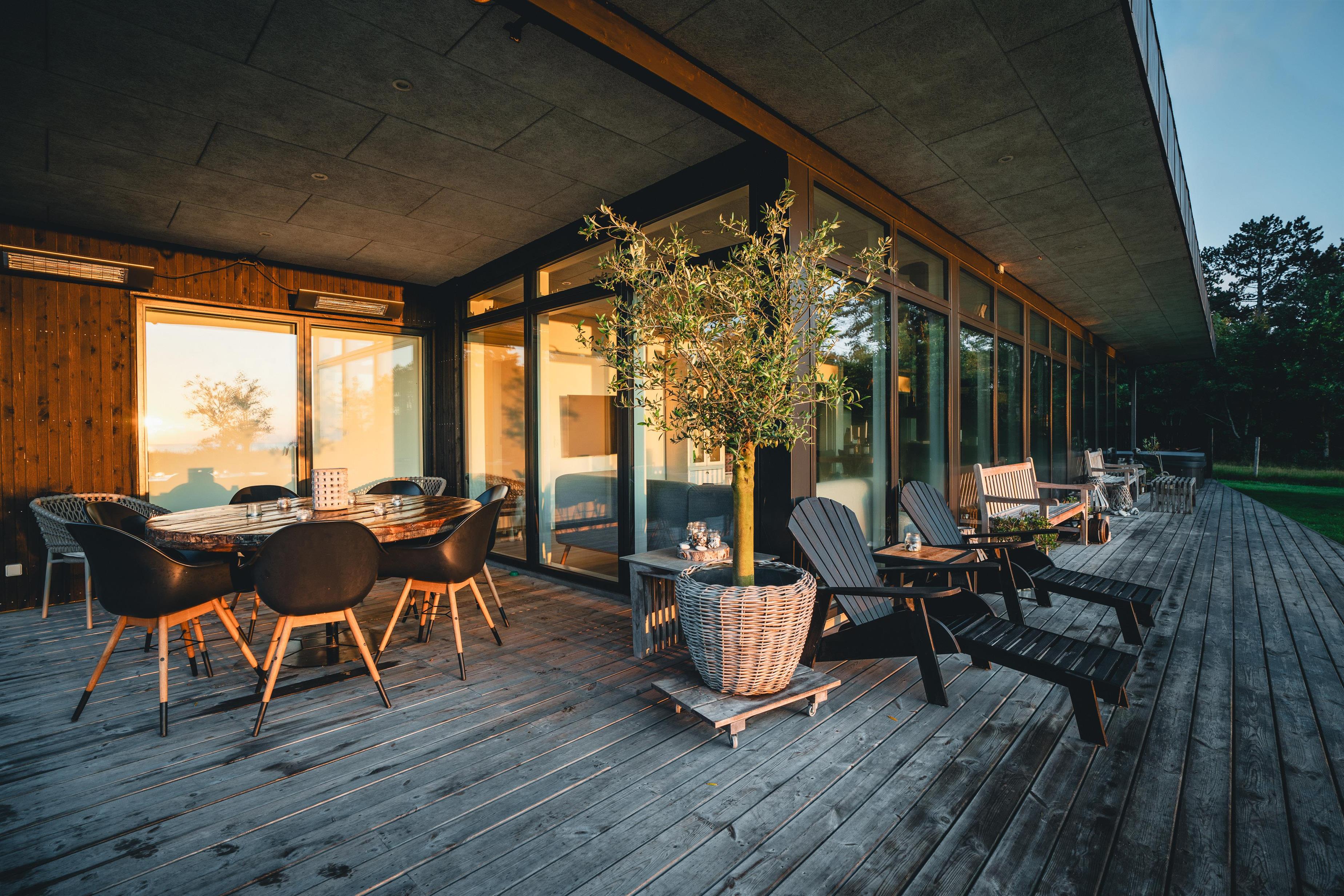 Enjoy the view on the terrace, which is partially covered and furnished with modern garden furniture and a barbecue. Here you can enjoy long, bright evenings surrounded by nature. On hot summer days, the sun loungers are perfect for sunbathing, and in the sauna in the middle of the grounds, you can relax with a view of the sea. The grounds are fenced in, making the house particularly suitable for those who want to bring their dog. A charging station for electric cars has been installed so you can charge your car directly at the house.