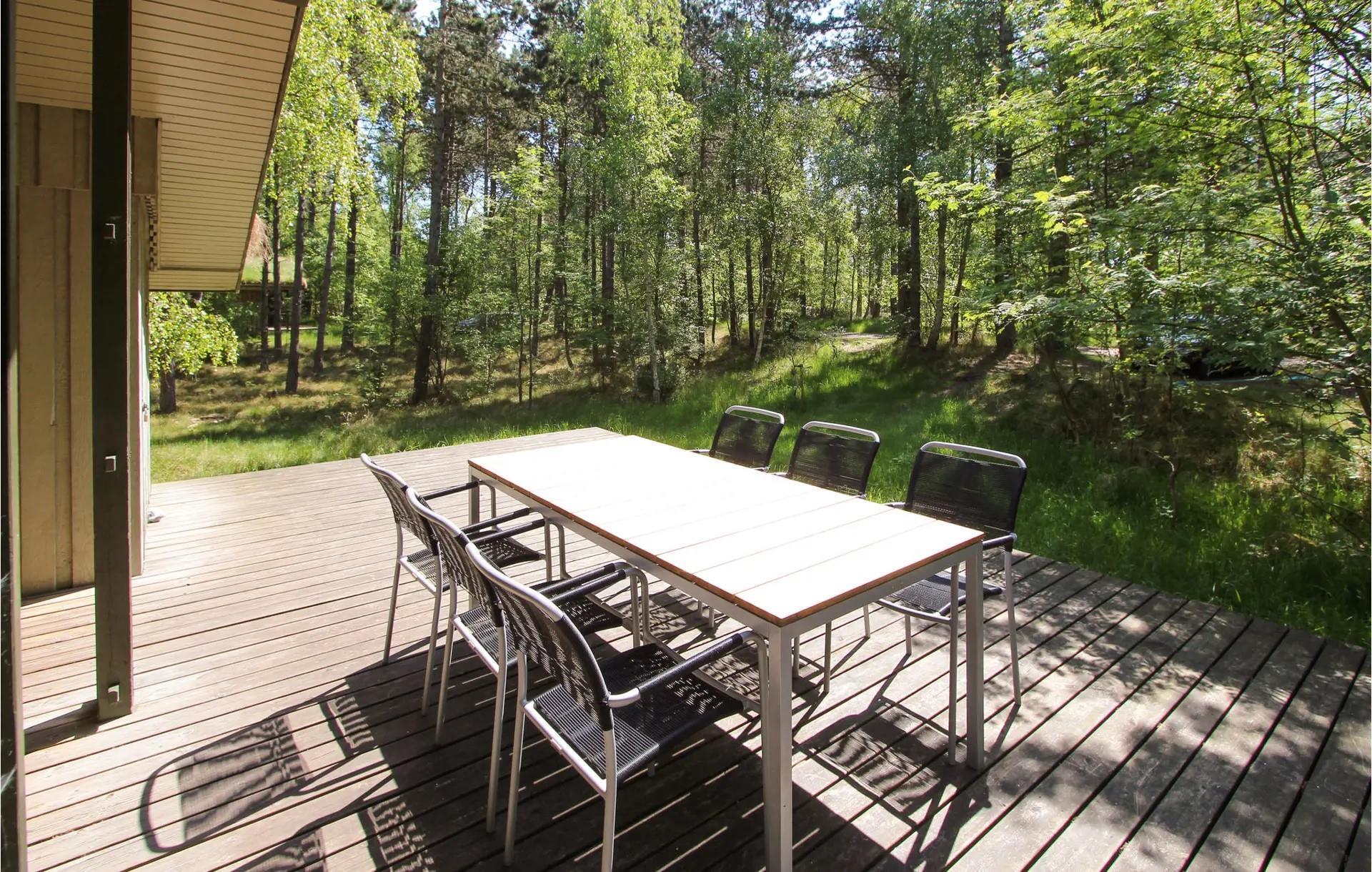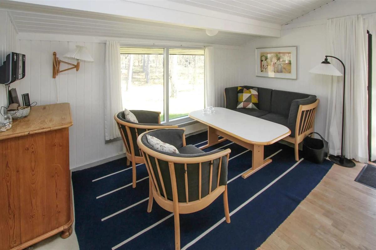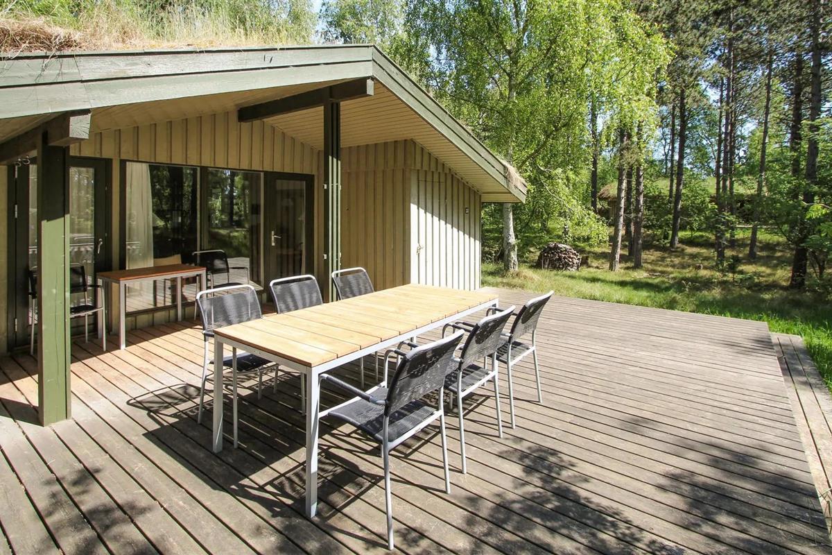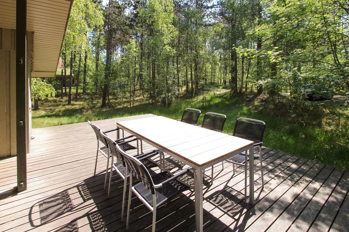 there is a partially covered terrace with good garden furniture, where you can enjoy the quiet mornings of your holiday with a cup of coffee or long summer evenings in the peaceful surroundings of the forest. The grounds are natural with heather and tall grass, and the forest is very close by – perfect for play, walks and little adventures. As the area is protected, barbecuing is not allowed at the house, but you can easily take a disposable barbecue down to the beach and combine food and sea views.