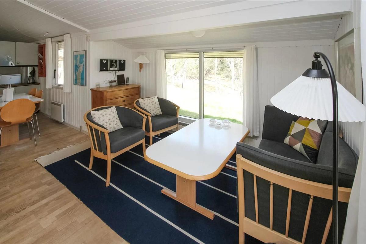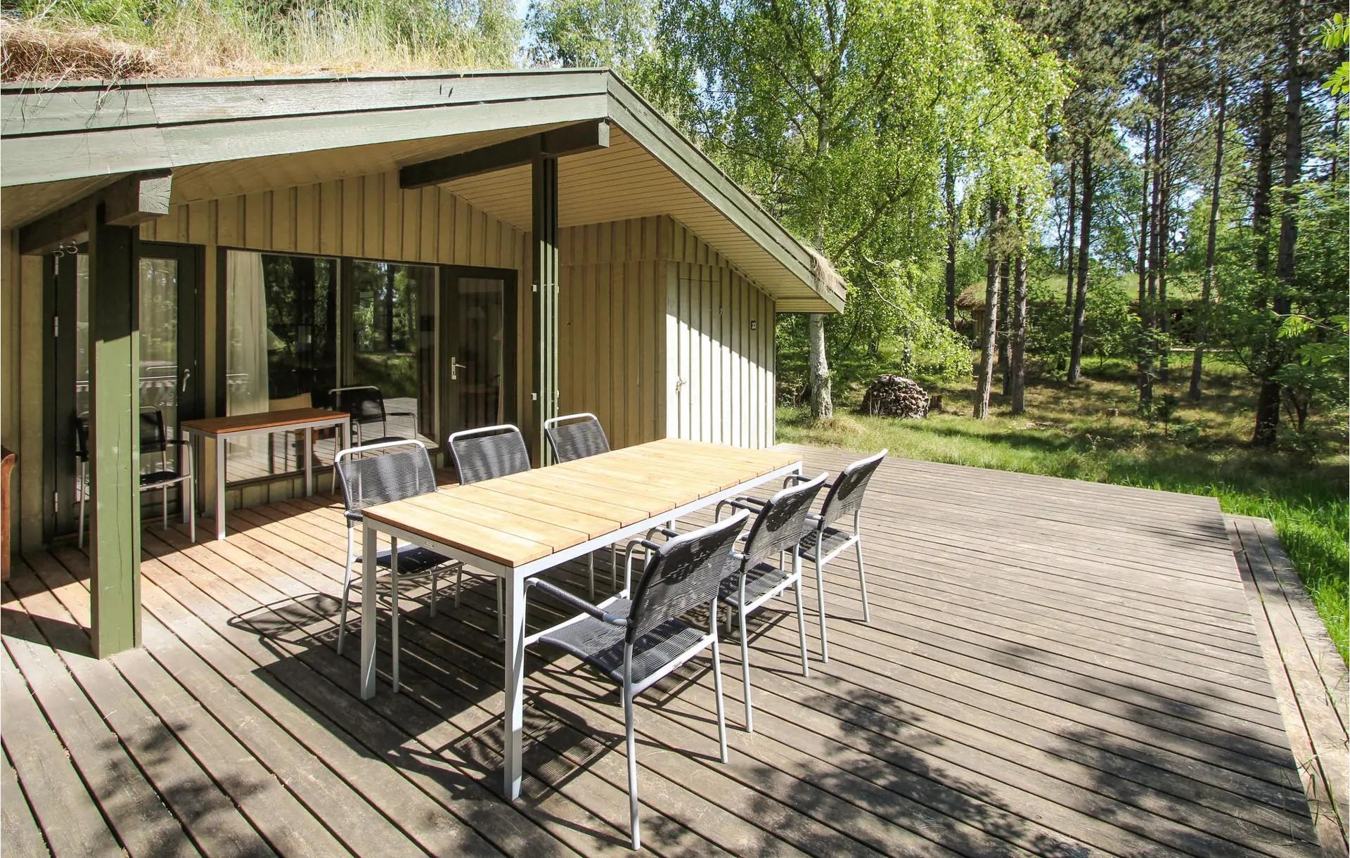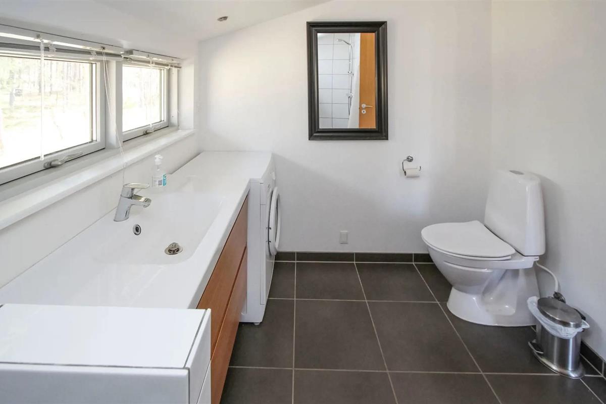 there is a partially covered terrace with good garden furniture, where you can enjoy the quiet mornings of your holiday with a cup of coffee or long summer evenings in the peaceful surroundings of the forest. The grounds are natural with heather and tall grass, and the forest is very close by – perfect for play, walks and little adventures. As the area is protected, barbecuing is not allowed at the house, but you can easily take a disposable barbecue down to the beach and combine food and sea views.