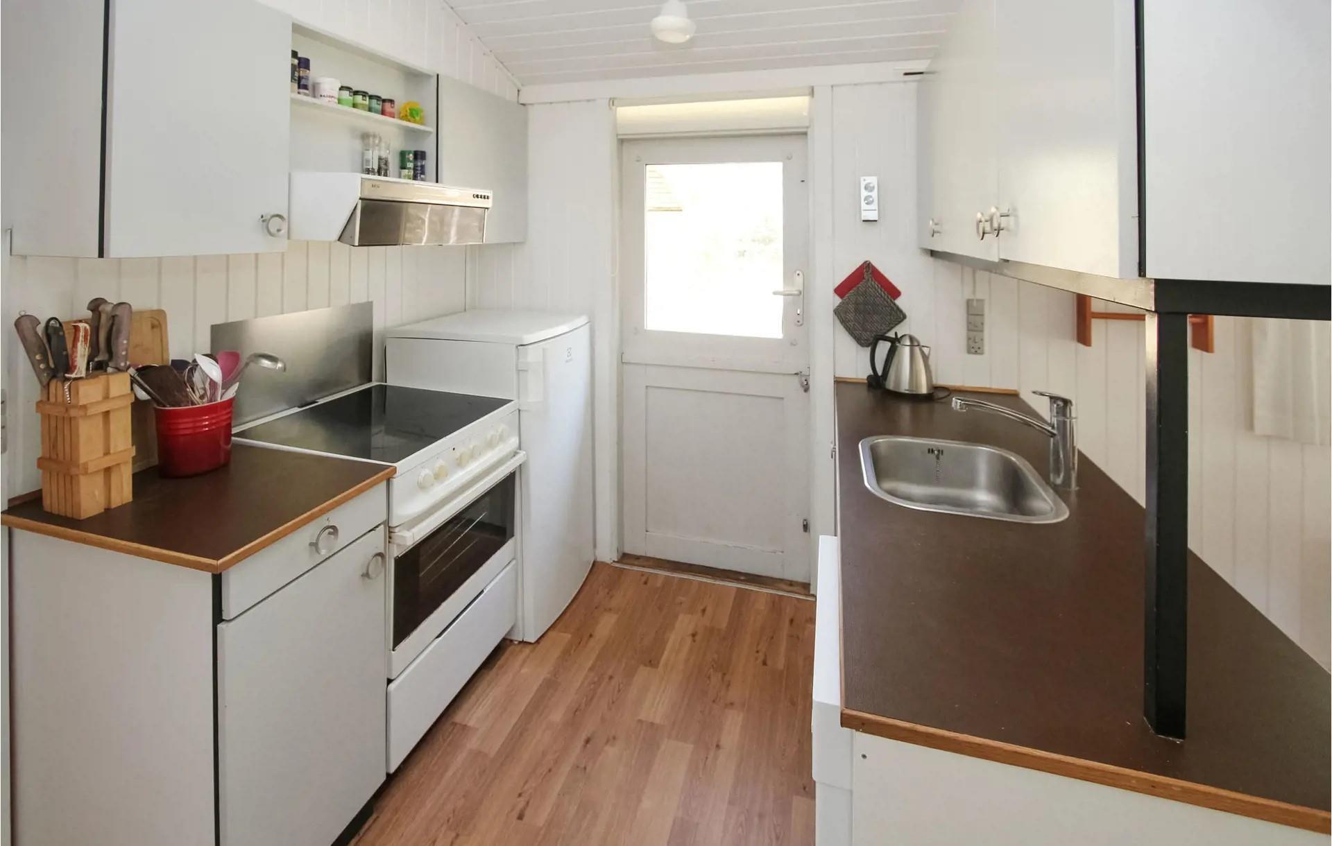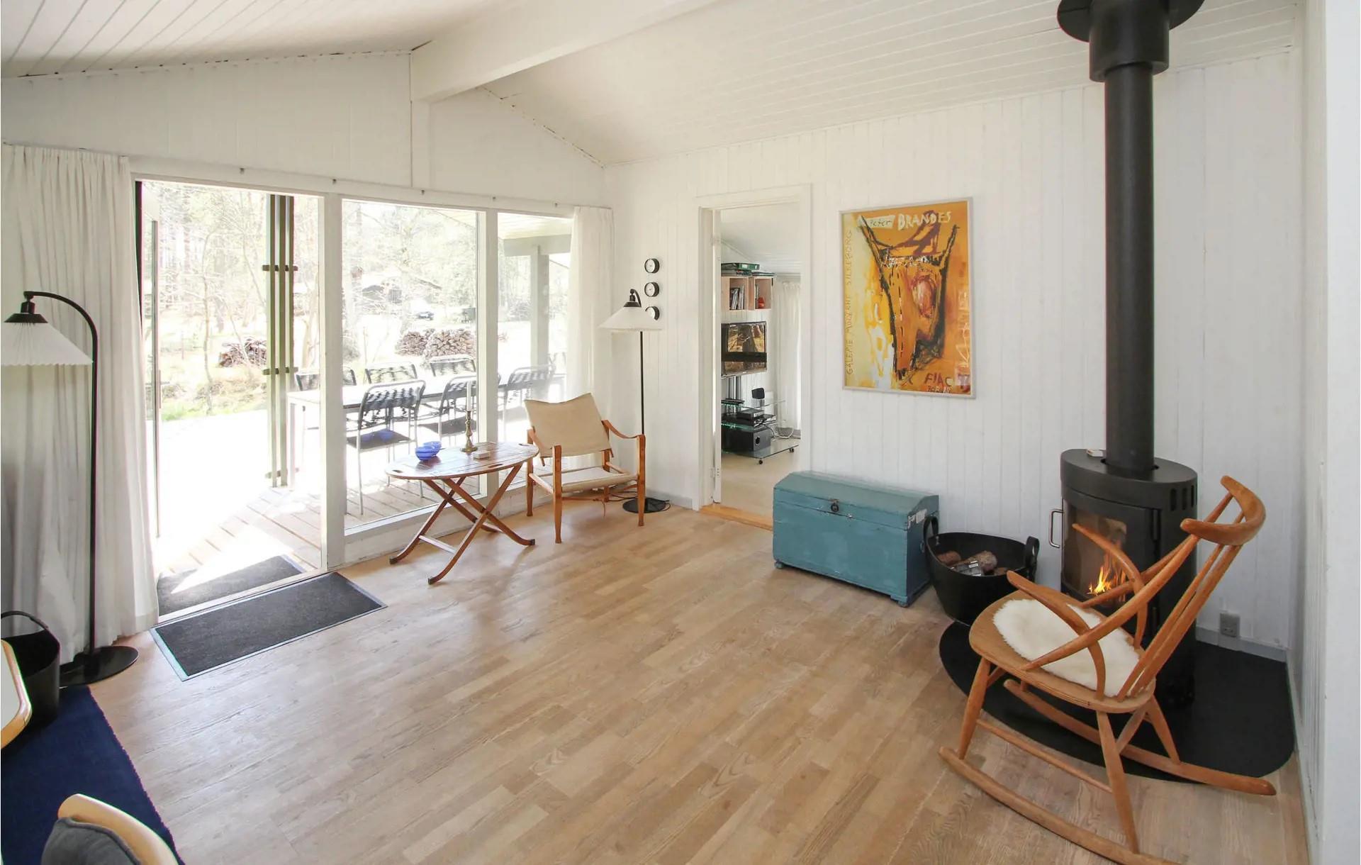 you will be greeted by a warm and classic atmosphere with wooden walls, ceilings and natural light from the large windows. The house has a cosy living room with comfortable furniture, a wood-burning stove and Chromecast TV, so you can relax in front of the fire or stream your favourite content. The kitchen is practical and open to the dining area, so you can prepare your holiday meals and still be part of the conversation at the table.