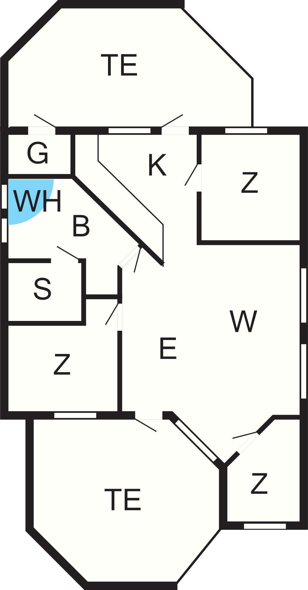 Bad: WC, Waschb., Dusche, Fußbodenheiz.