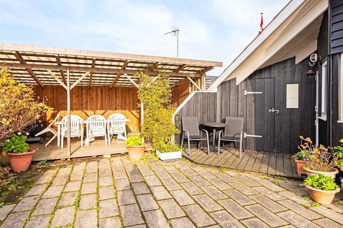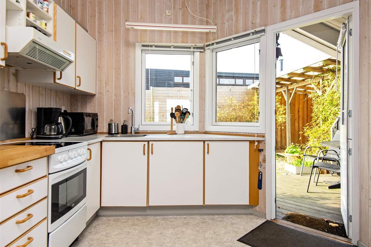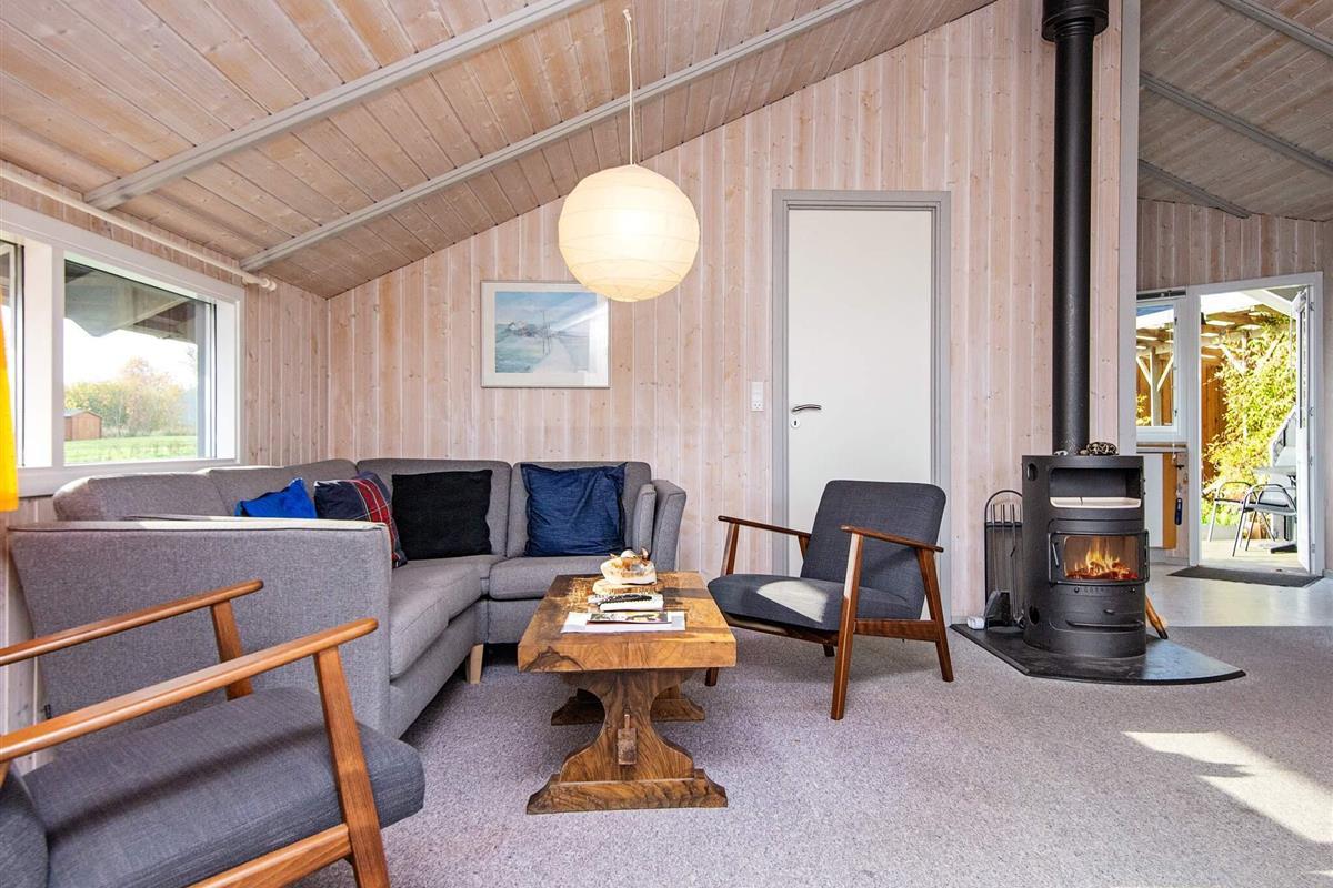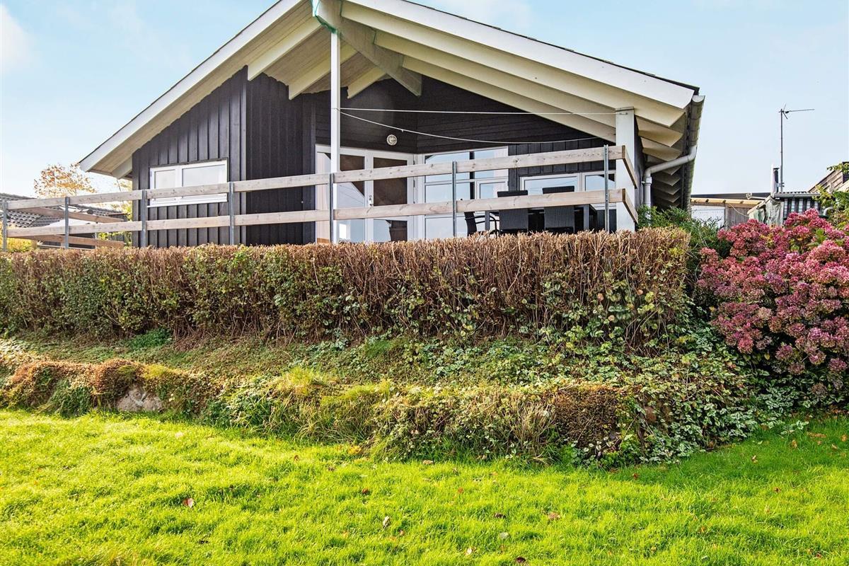 Das Ferienhaus liegt auf einem großen, angelegten Gartengrundstück mit Platz für spielende Kinder. Zudem steht eine große, überdachte Terrasse für Sonnentage und Grillabende bereit. Für Sonnenanbeter gibt es auch eine offene Terrasse. Schönes Terrain für Radtouren und Spaziergänge in der Umgebung und nur ca. 300 m Entfernung zu einem Kiesstrand. Es sind ca. 2 km zum nächsten Sandstrand.