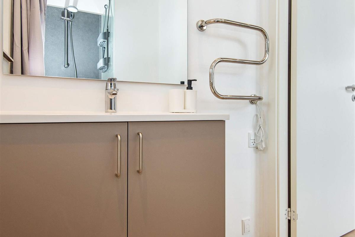 Bad: Waschm., WC, Waschb., Dusche, Fußbodenheiz.