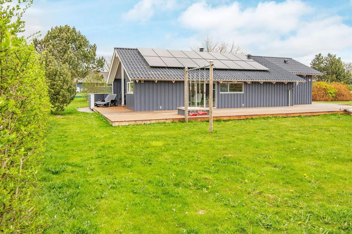 Bei Mørkholt finden Sie dieses Ferienhaus mit Whirlpool und Sauna im Haus sowie attraktiver Lage, nur ca. 300 m vom Wasser entfernt. An der Vorderseite des Hauses hat man schönen Ausblick zum nahen Vejle Fjord. Von der Terrasse aus können Sie den Sonnenuntergang im Westen, über Felder und Wiesen beobachten. Mit den Solarzellen auf dem Dach wurde auf das Klima geachtet und zugleich die Stromkosten auf ein Minimum reduziert.