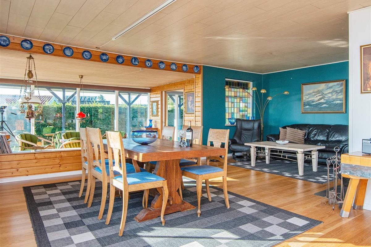 Dieses gut ausgestattete Ferienhaus in der Nähe von Mørkholt bietet einen atemberaubenden Panoramablick auf die Küste, den Sie am besten vom hellen und geräumigen Wohnzimmer aus genießen können. Das helle und luftige Interieur schafft eine einladende Atmosphäre und macht es zum idealen Rückzugsort für Familien oder Gruppen, die Komfort, Entspannung und Naturschönheit suchen.
