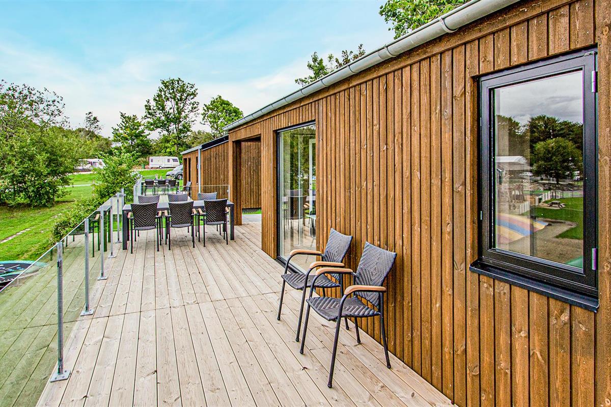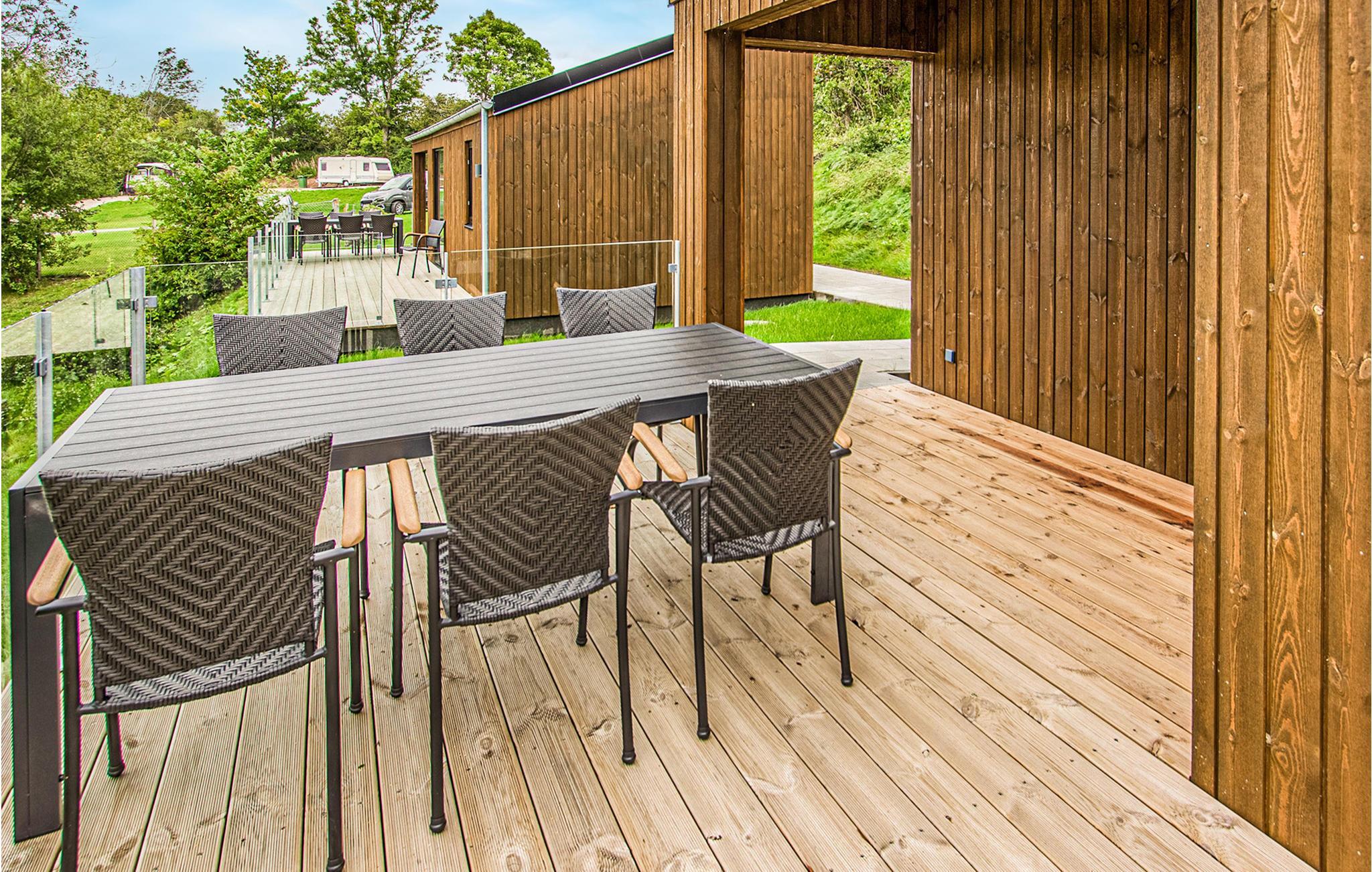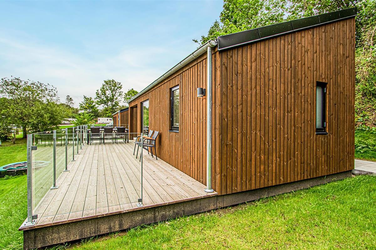 Gelegen op een camping met veel mogelijkheden voor vrijetijdsbesteding, neemt u uw intrek in een modern, chique huis, dat vooral indruk maakt door zijn houten constructie en een gezellige woonsfeer creëert. Vanaf het terras kunt u het water al zien terwijl u samen ontbijt.