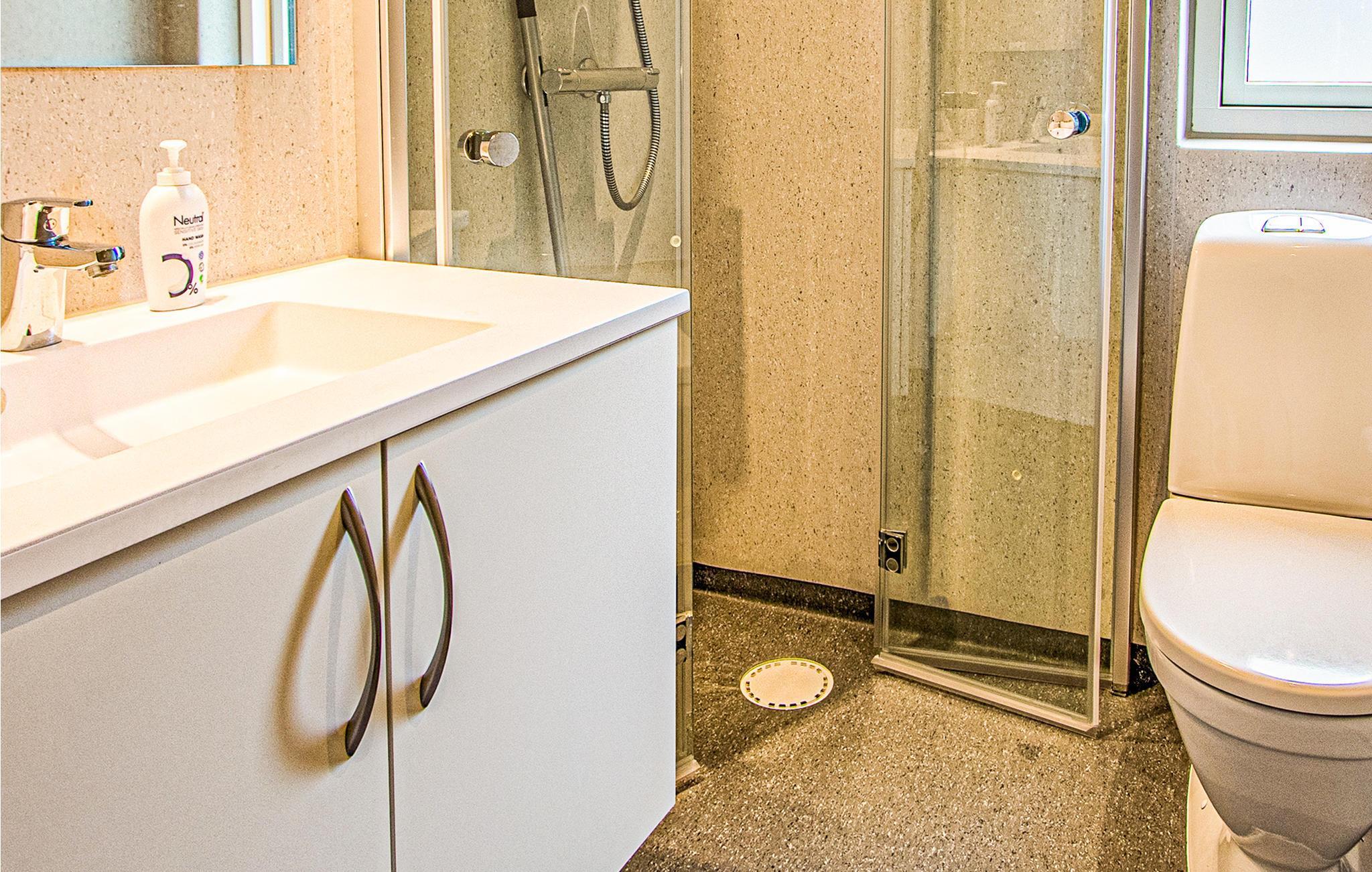 Badkamer (nr. 1) - Toilet: warm en koud water. Douche