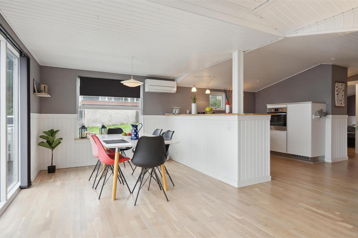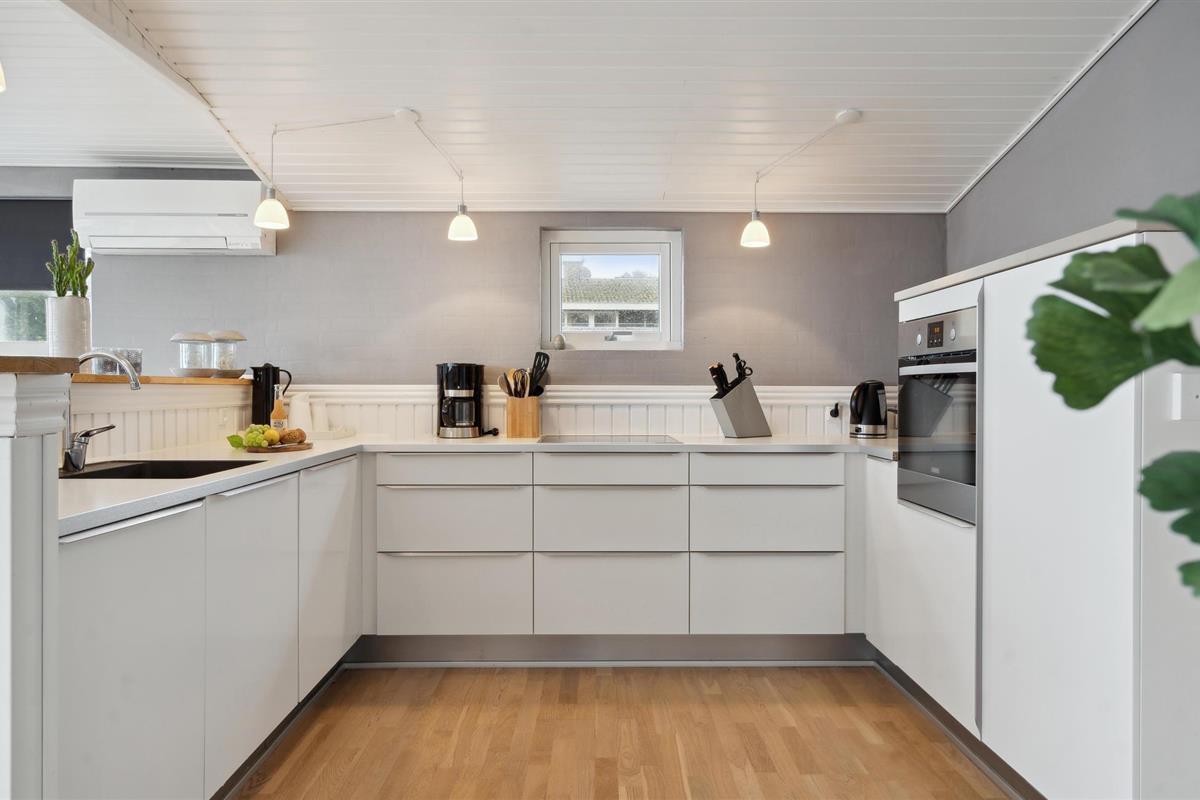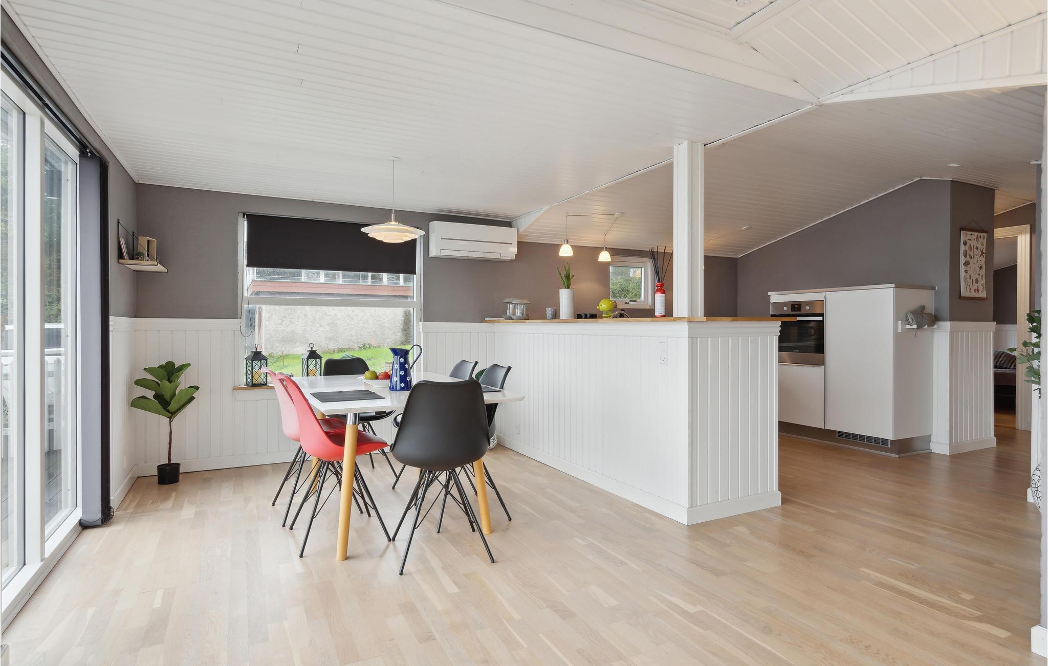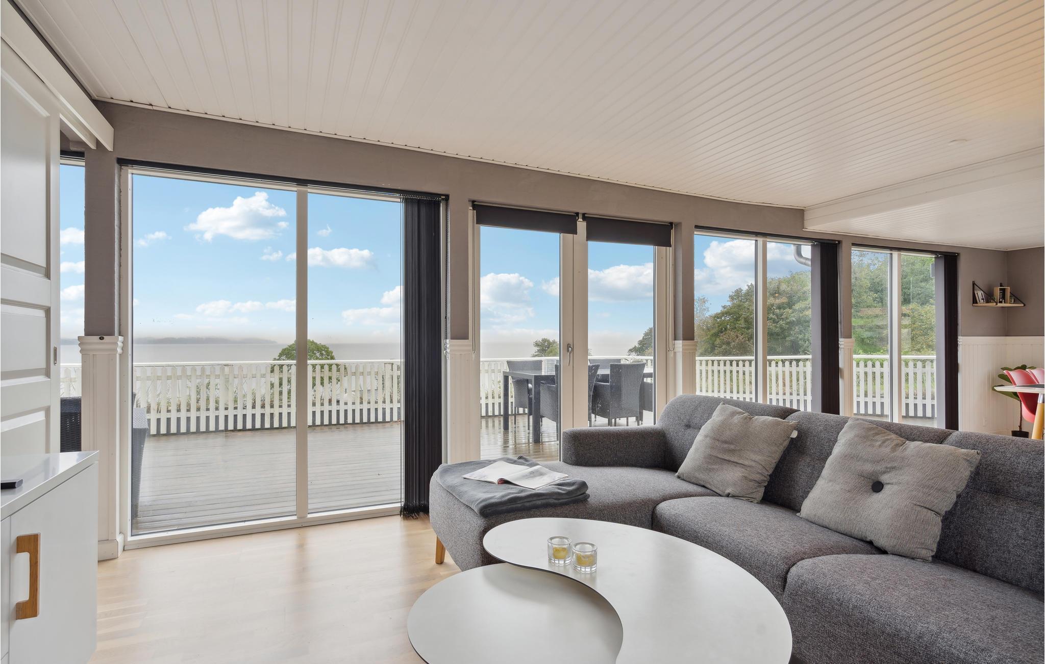 Hier breng je je vakantie door in een uitnodigend vakantiehuis dat niet ver van Vejle Fjord op je wacht. Maak het jezelf gemakkelijk in de lichte kamers met je geliefden, de huiselijke en smaakvolle inrichting creëert de ideale omgeving om te ontspannen. Terwijl je samen dineert, kun je je blik over het water laten dwalen door de grote panoramische ramen en genieten van het geweldige uitzicht vanaf de ruime bank.