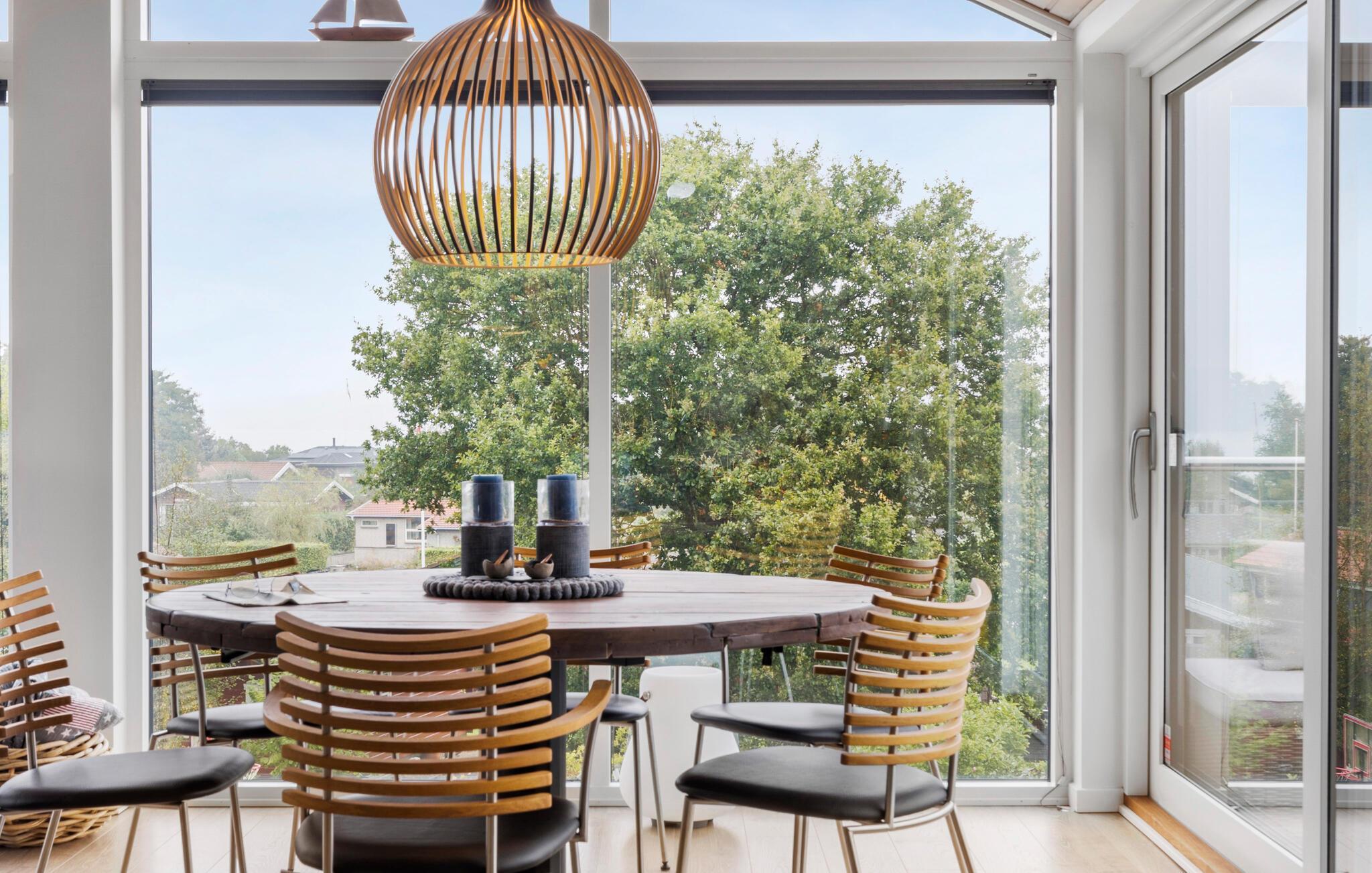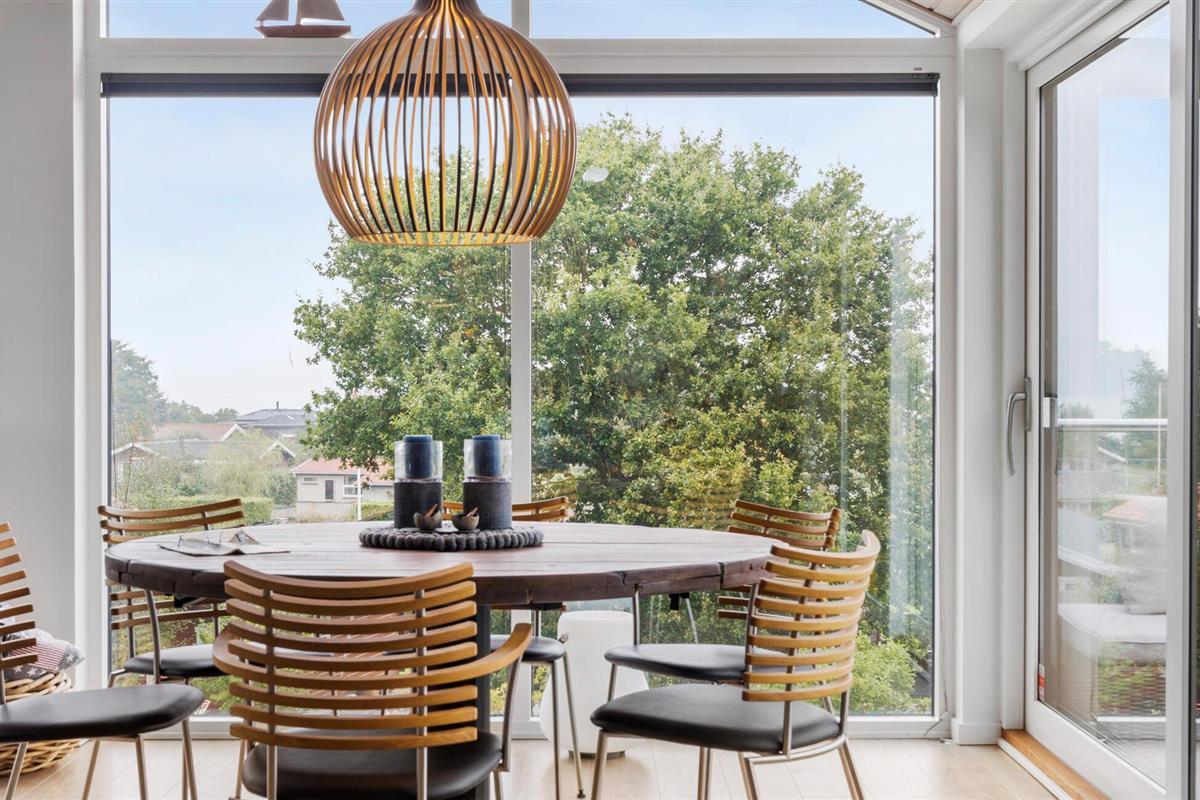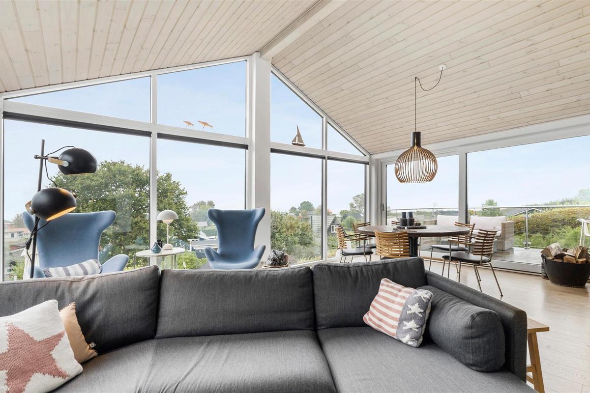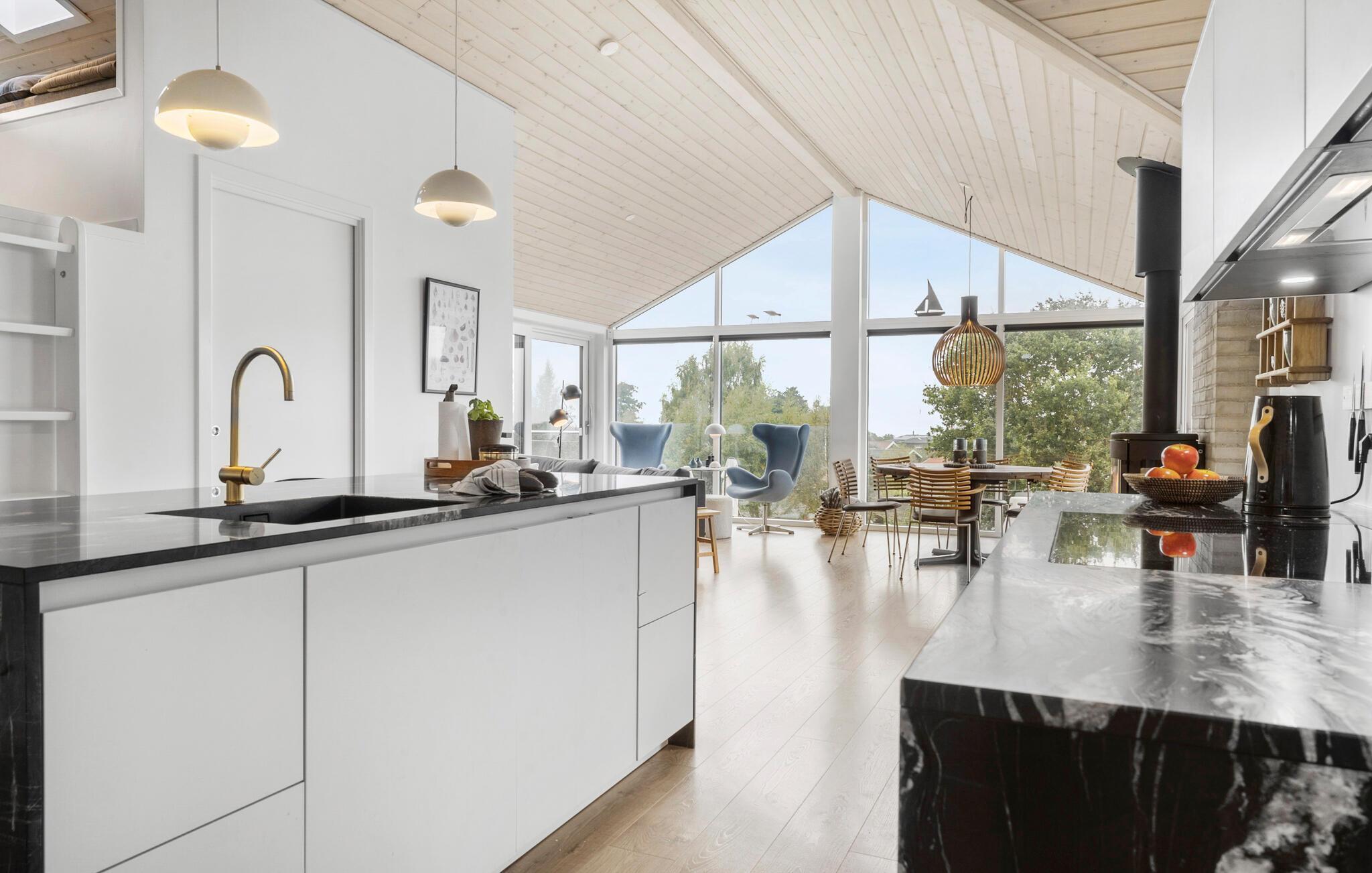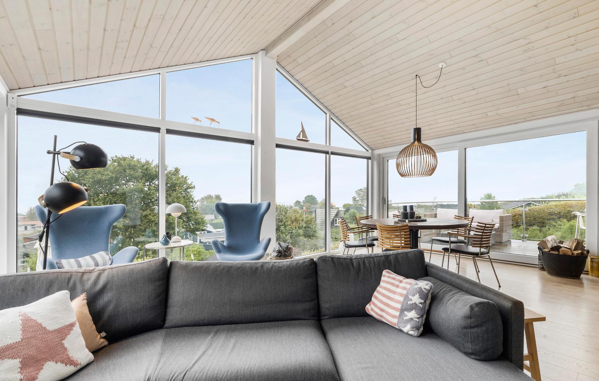 Stijlvol vakantiehuis in Mørkholt met panoramisch uitzicht op Vejle Fjord en rustige tuin.
