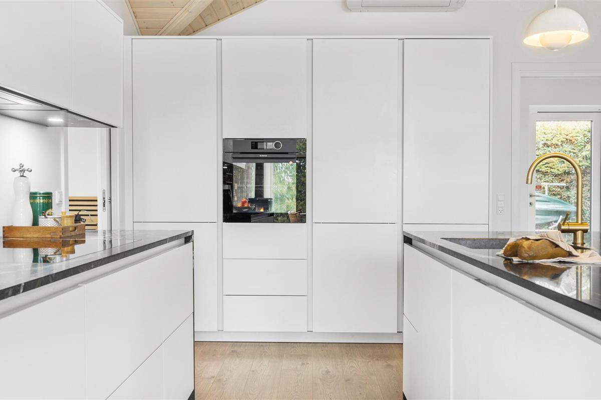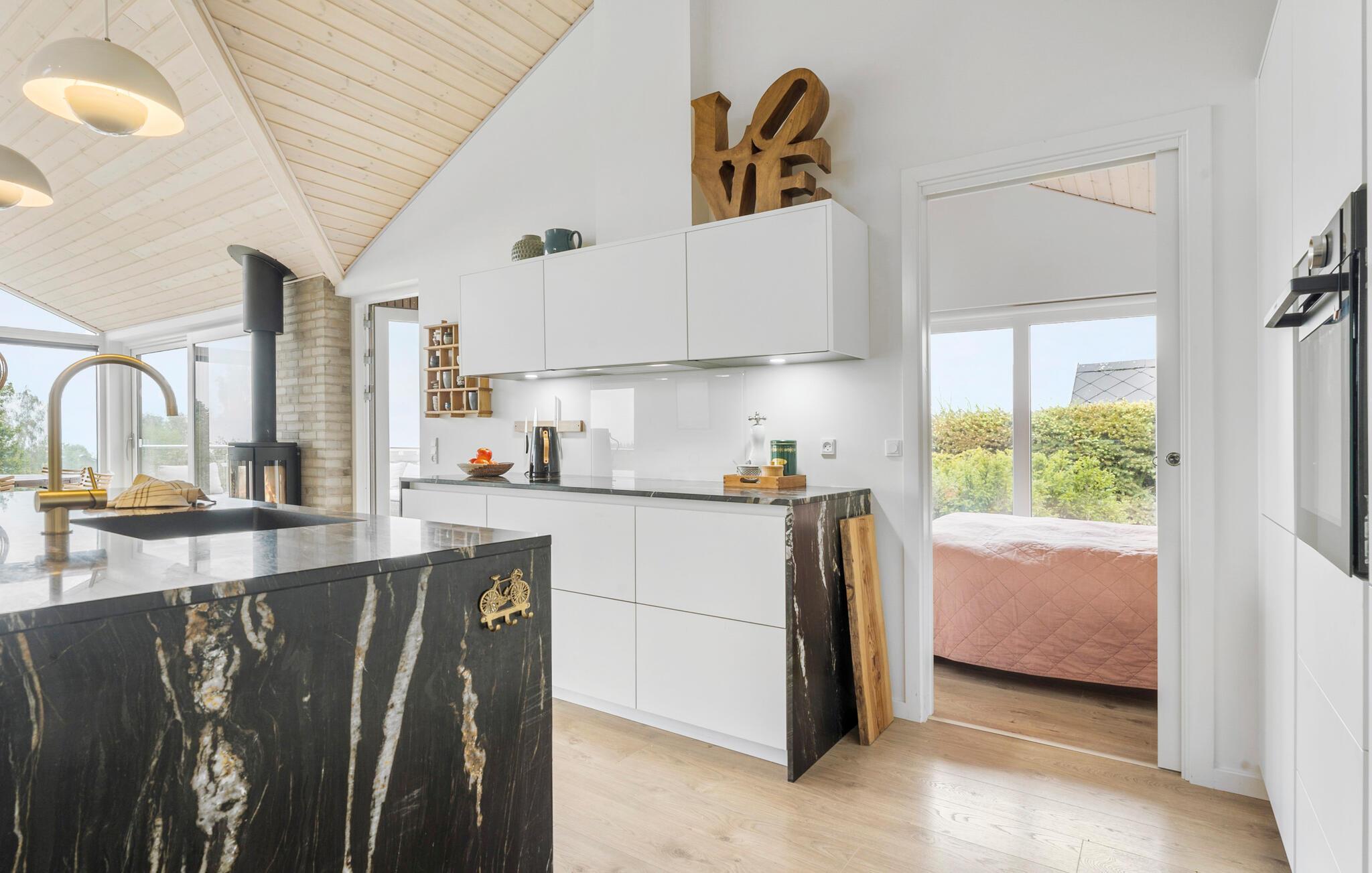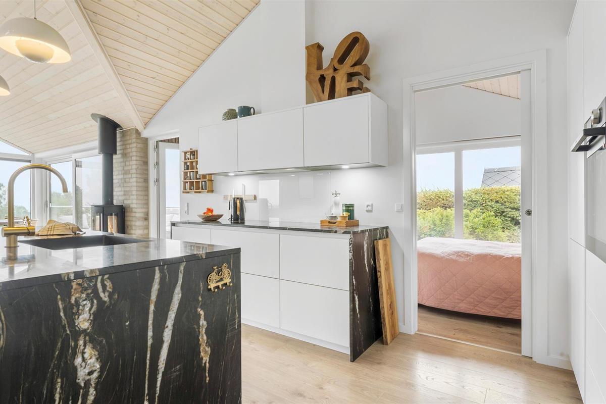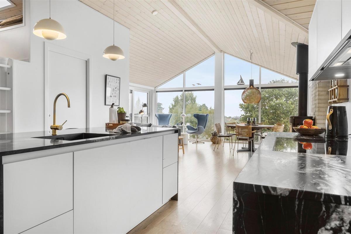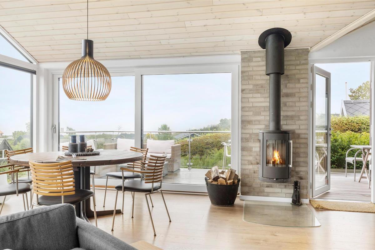 Breng een ontspannen vakantie door in dit stijlvolle vakantiehuis in Mørkholt aan het schilderachtige Vejle Fjord. Het modern ingerichte huis maakt indruk met zijn lichtovergoten kamers en biedt een adembenemend uitzicht op de fjord, waar je van kunt genieten vanaf het gezellige terras of balkon. Begin je dag met een ontbijt in de buitenlucht terwijl je het prachtige uitzicht op het water en de groene omgeving bewondert. Binnen in het huis vind je een open woonkamer met een moderne keuken waar je samen kunt koken en de avonden ontspannen kunt doorbrengen. Sluit de dag in alle rust af voor de houtkachel.