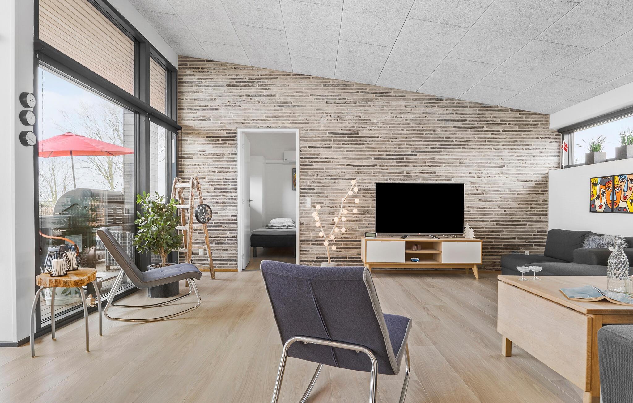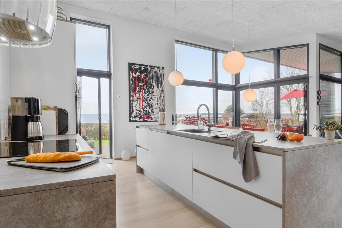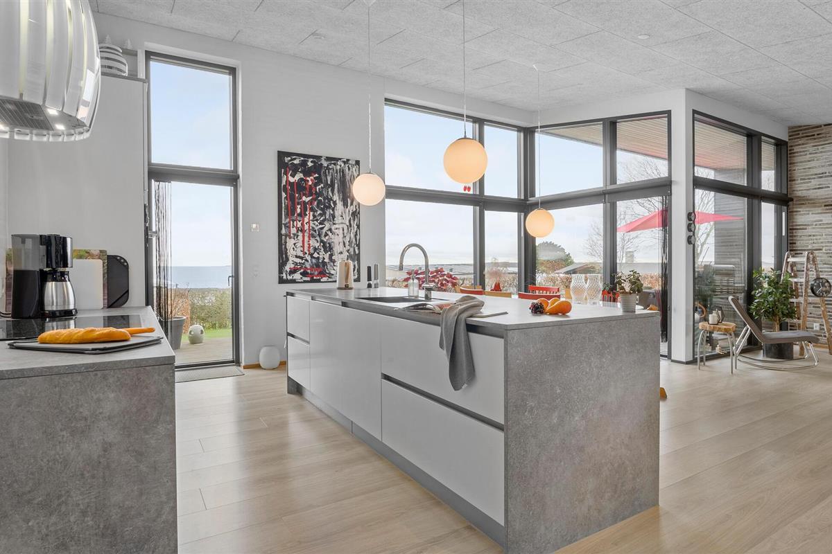 Geniet van luxe en zeezicht in dit moderne vakantiehuis nabij het strand in Børkop, Denemarken.