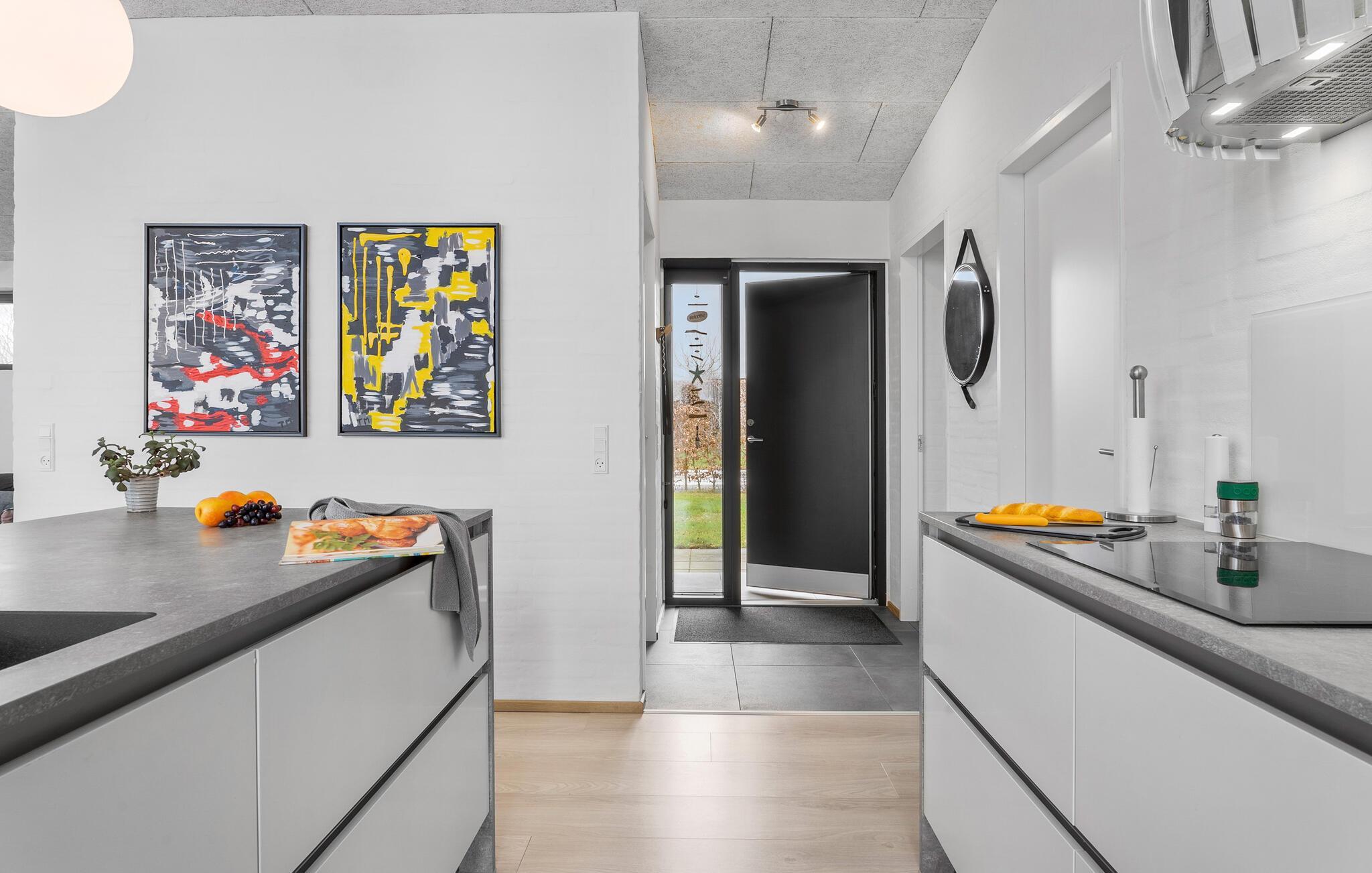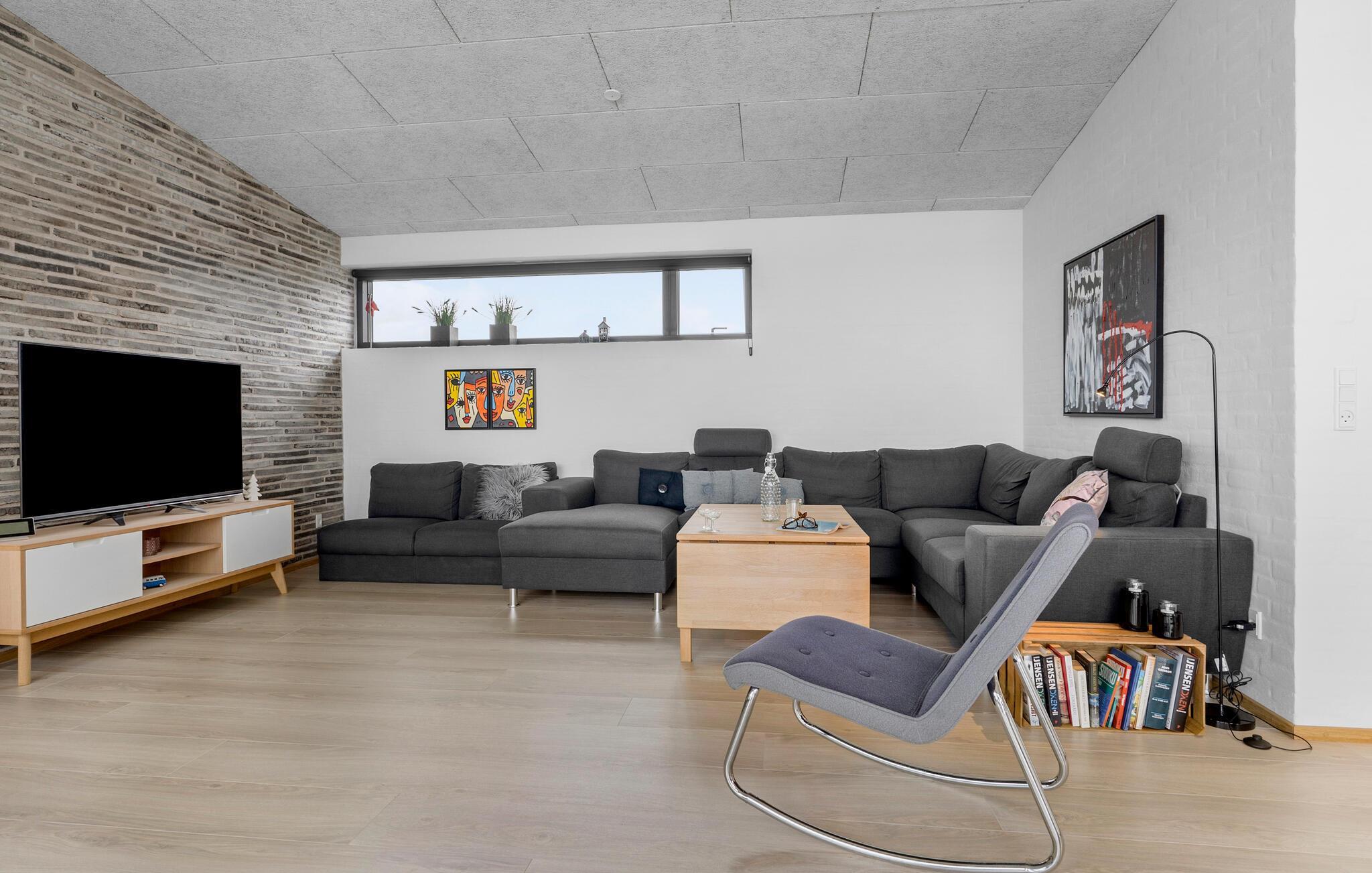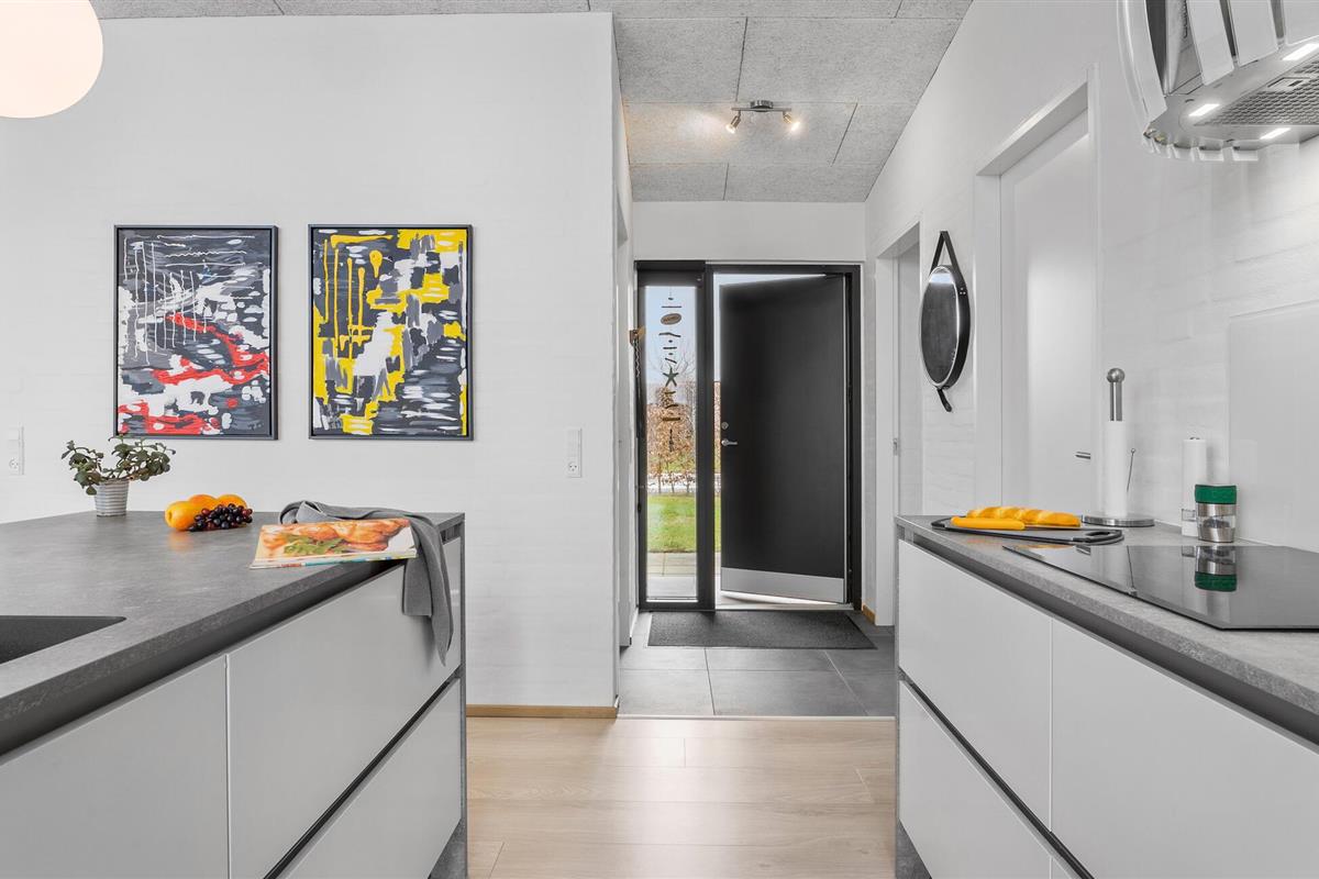 Geniet van luxe en zeezicht in dit moderne vakantiehuis nabij het strand in Børkop, Denemarken.