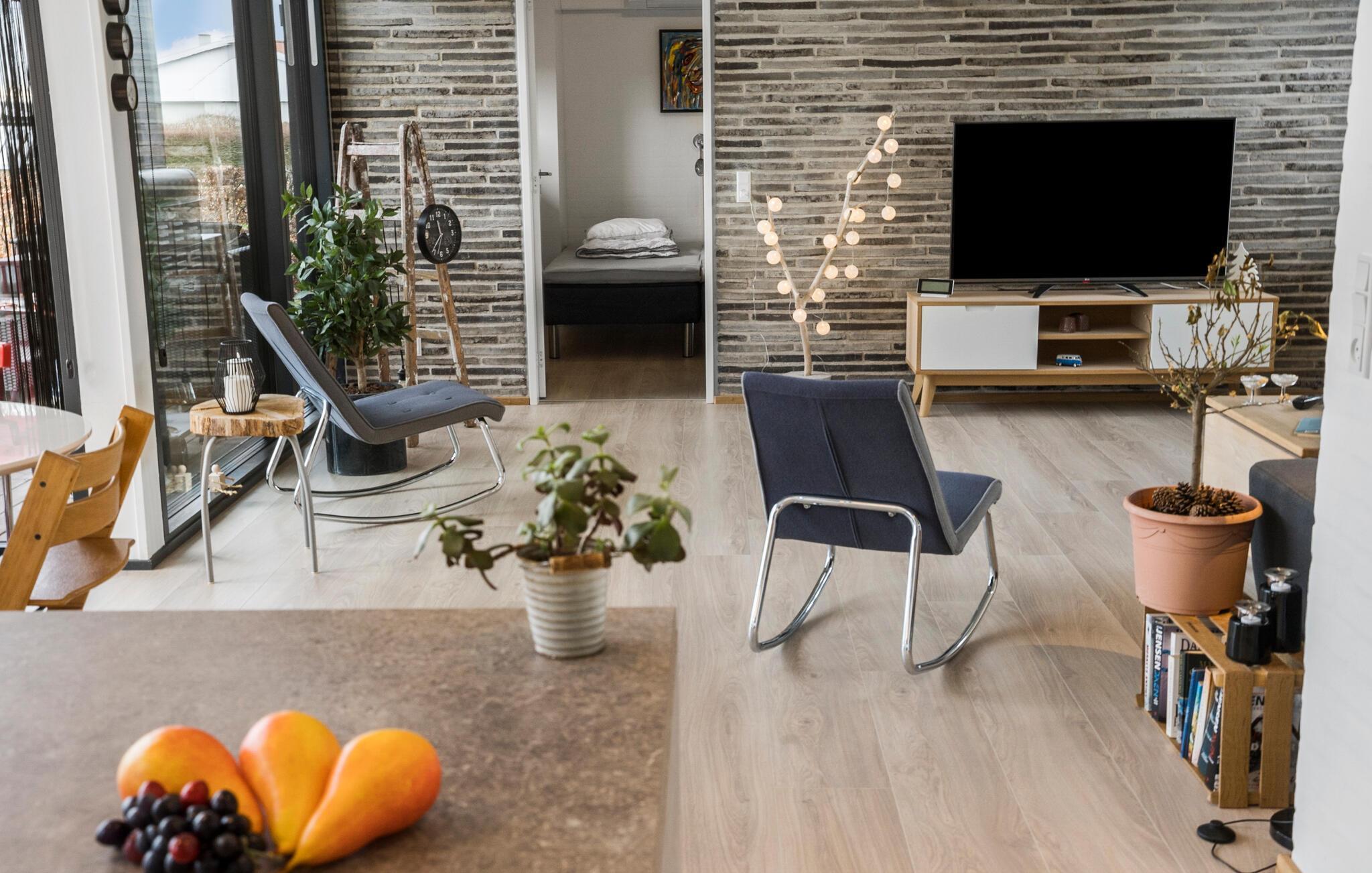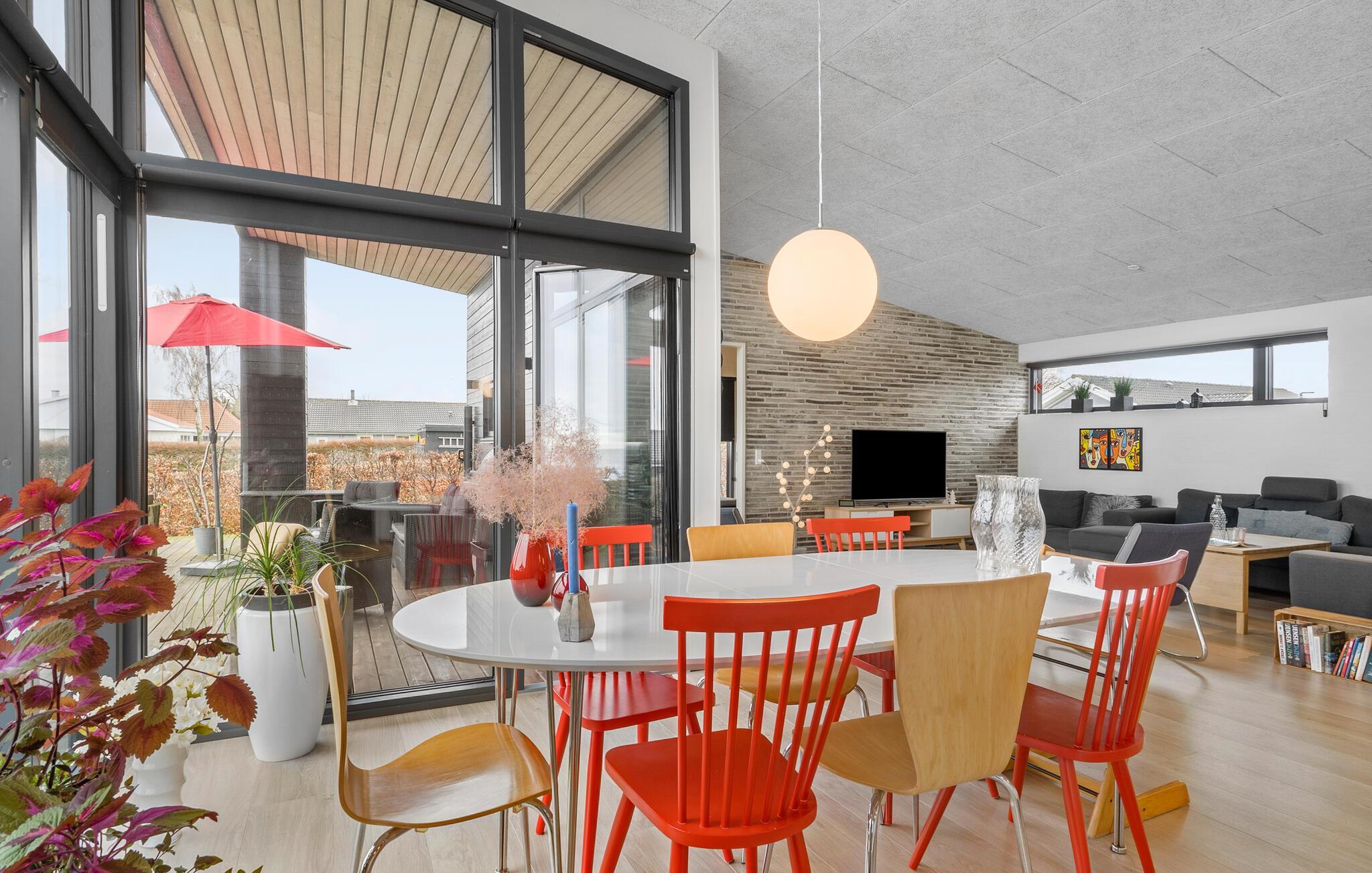 Dit moderne vakantiehuis zal je verrukken met zijn lichtdoorstroomde sfeer, grote vensterpuien en stijlvolle inrichting. Maak heerlijke gerechten in de open keuken en geniet van gezellige maaltijden aan de uitnodigende eettafel met de zee altijd in zicht. Maak het jezelf gemakkelijk op de gezellige bank in de woonkamer, lees een spannend boek of sluit de dag af met een goed gesprek onder het genot van een glas wijn.