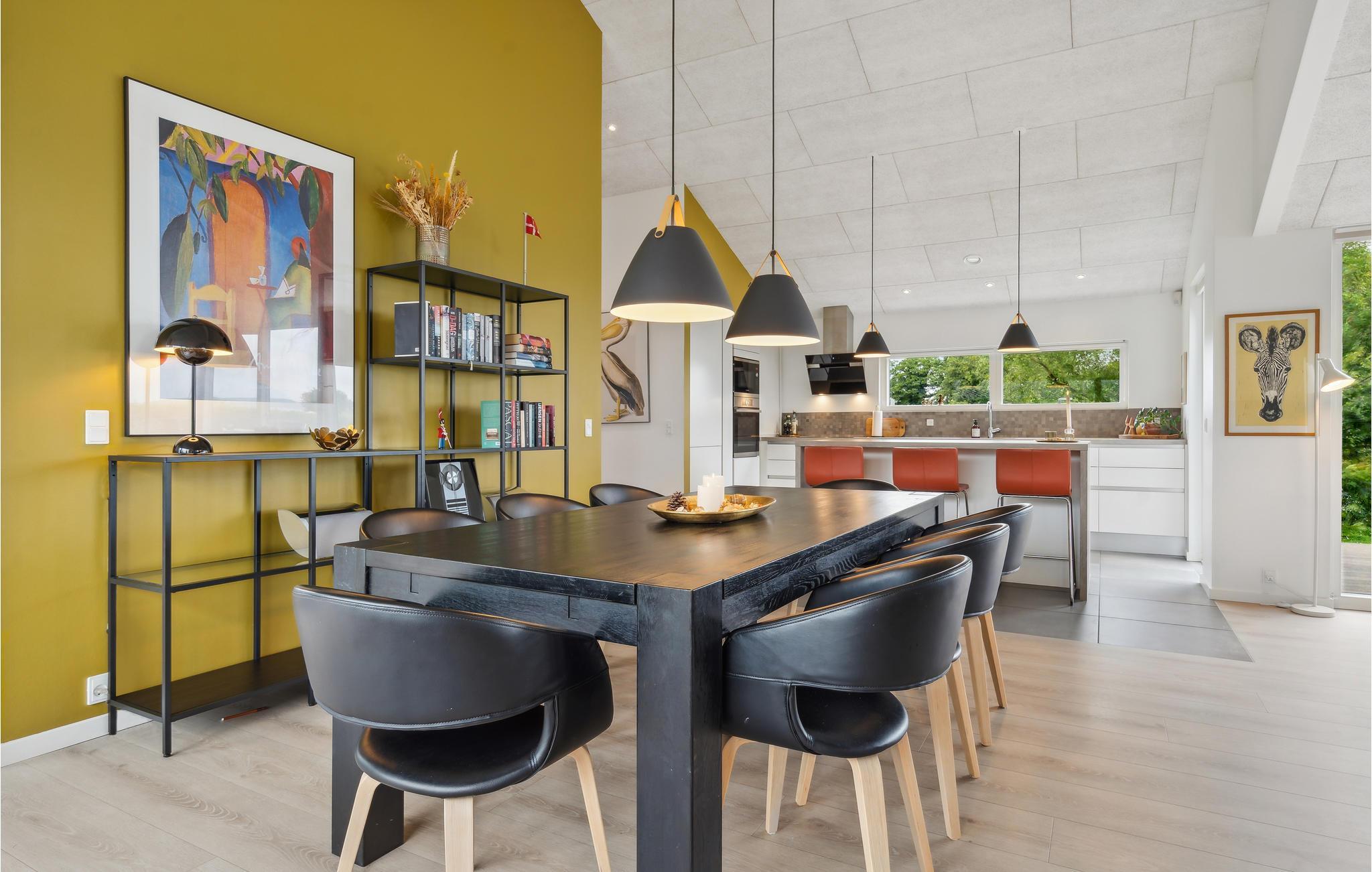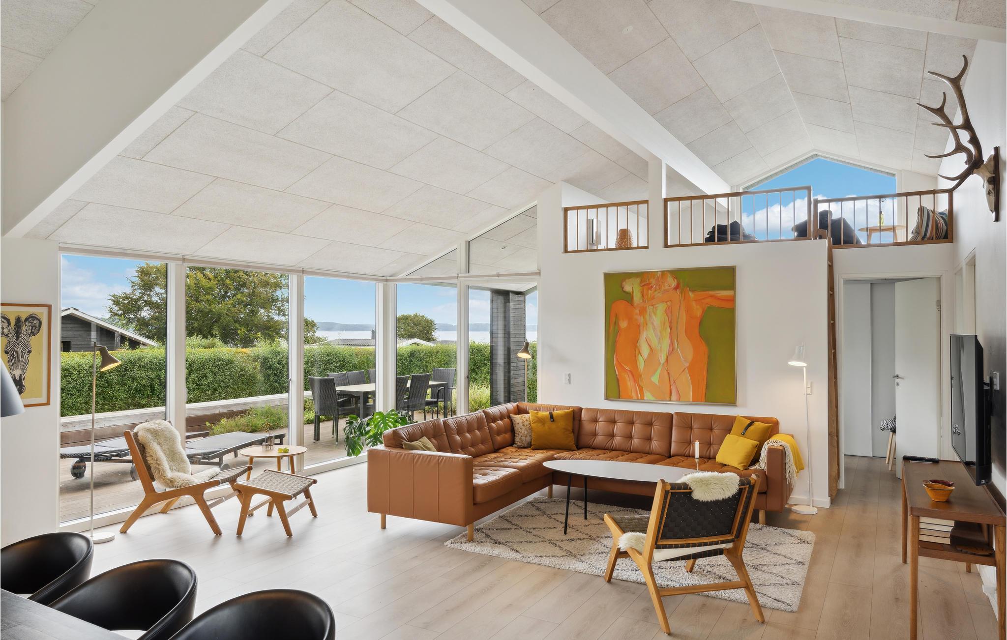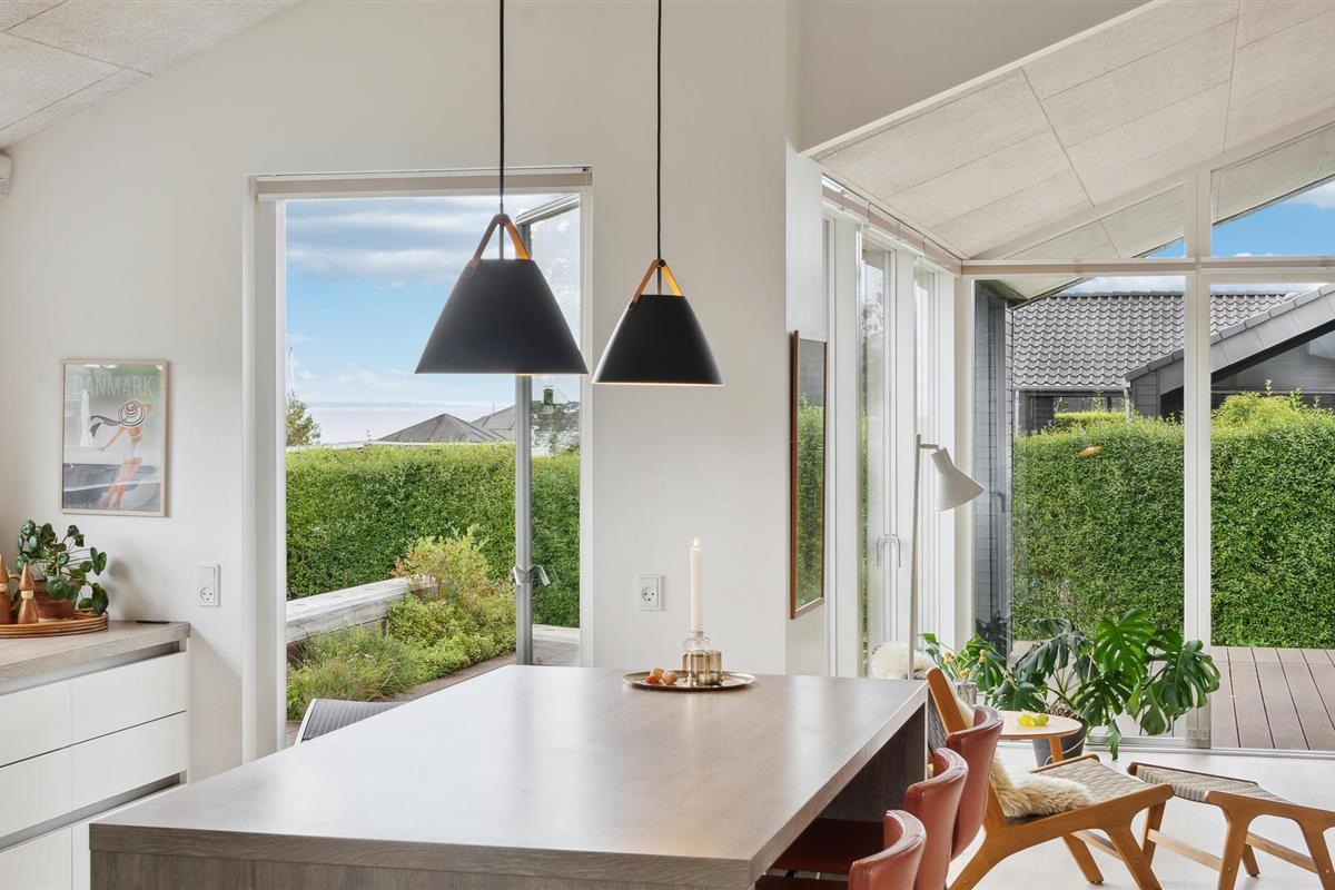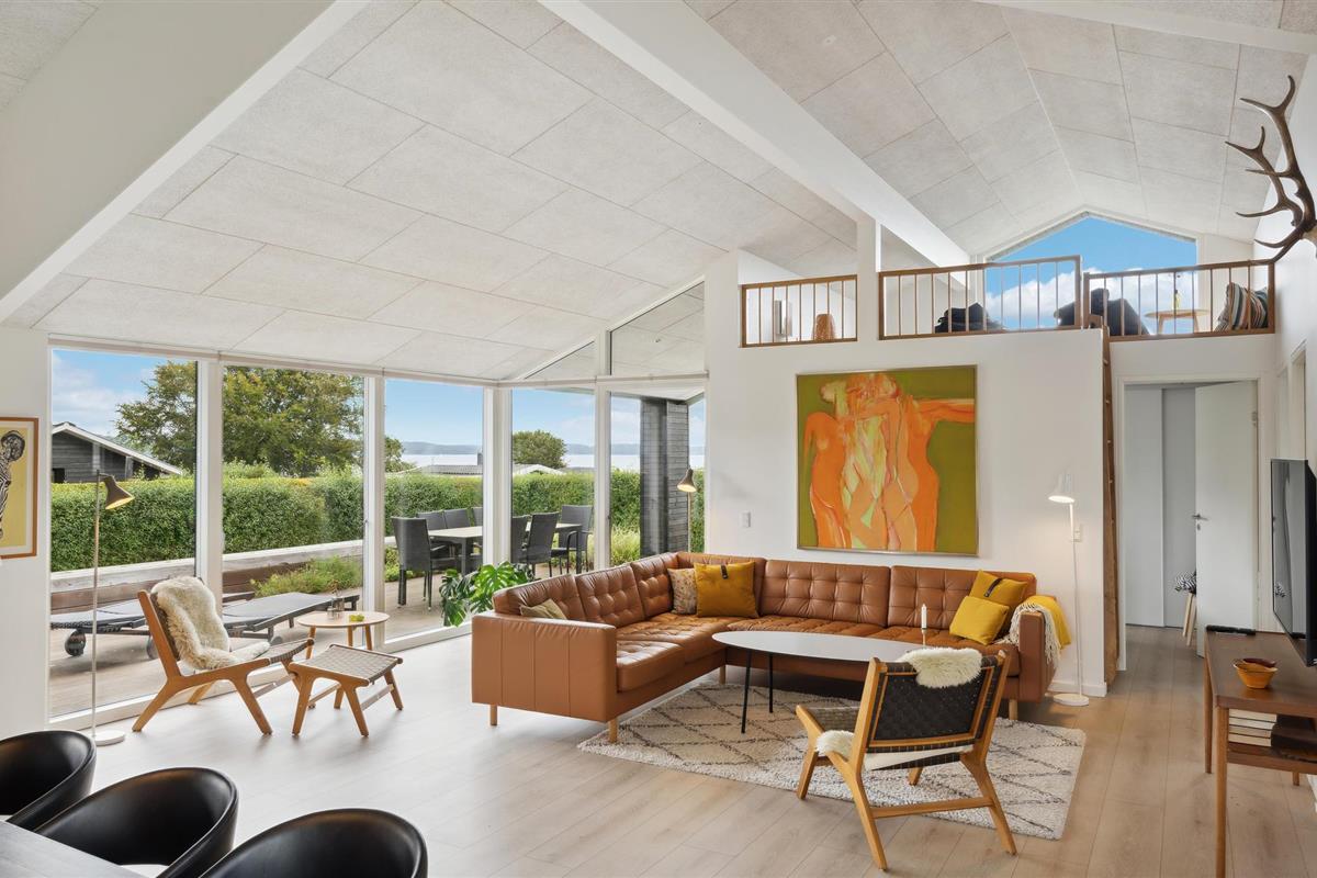 Dit elegante vakantiehuis met een prachtig uitzicht over Vejle Fjord is zowel klassiek als modern. Het is gebouwd van hoogwaardige materialen, ingericht met veel gevoel voor detail, ruim en doordacht. De grote woonkamer met schuine plafonds is ingericht met moderne meubels. Direct naast de ingebouwde houtkachel staat een gezellige bank. Leg er een paar stukken brandhout in en pak uw favoriete boek - de perfecte vakantie op kille dagen.