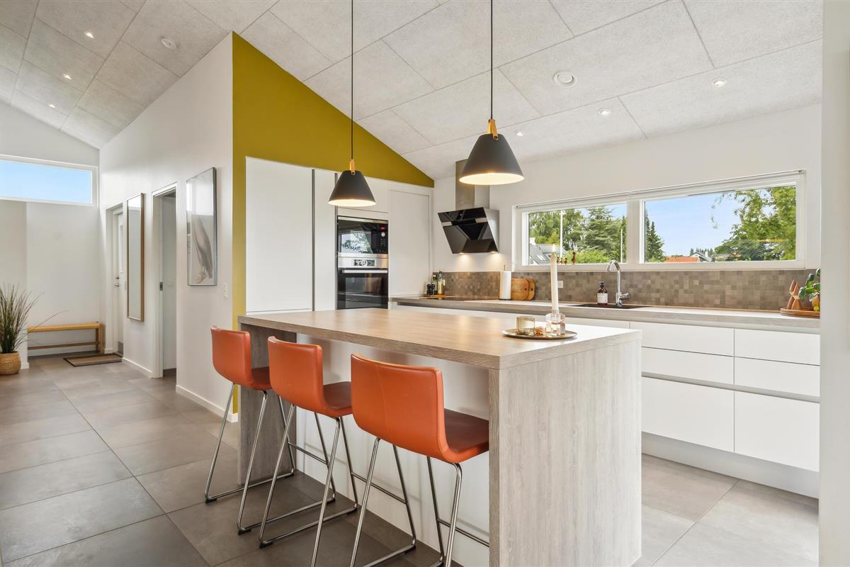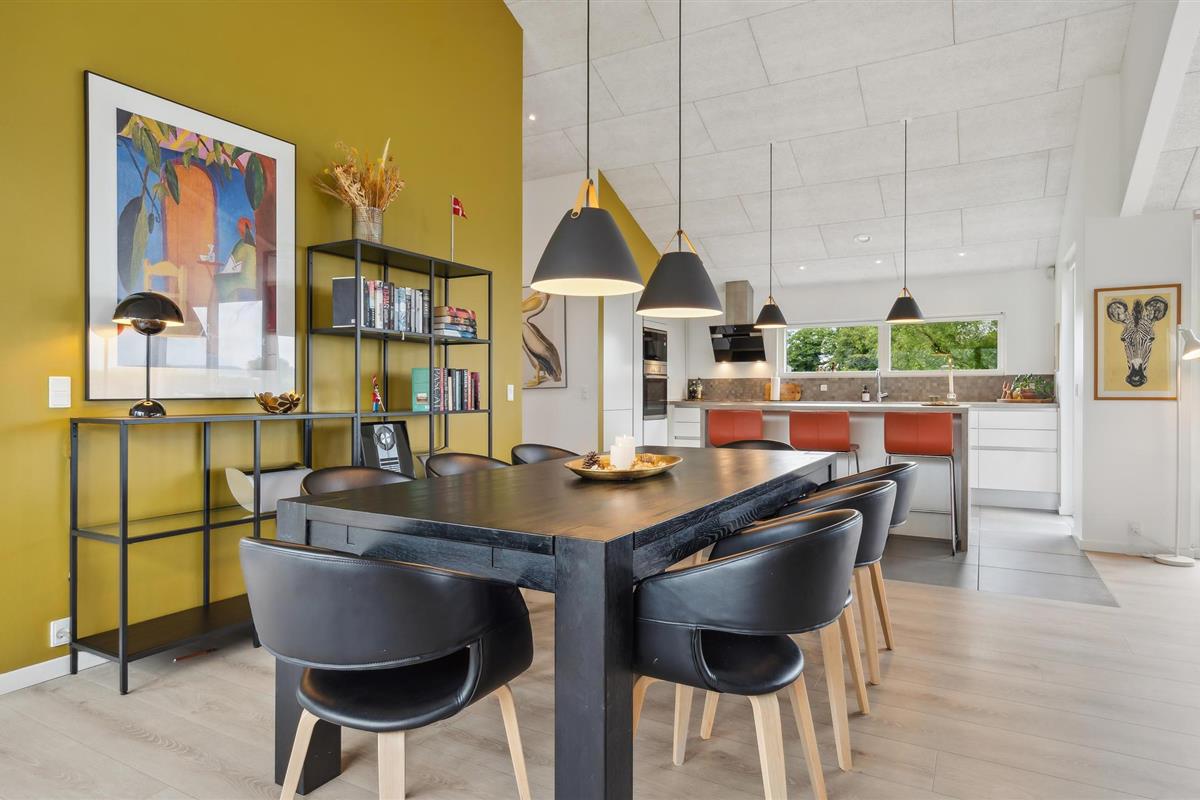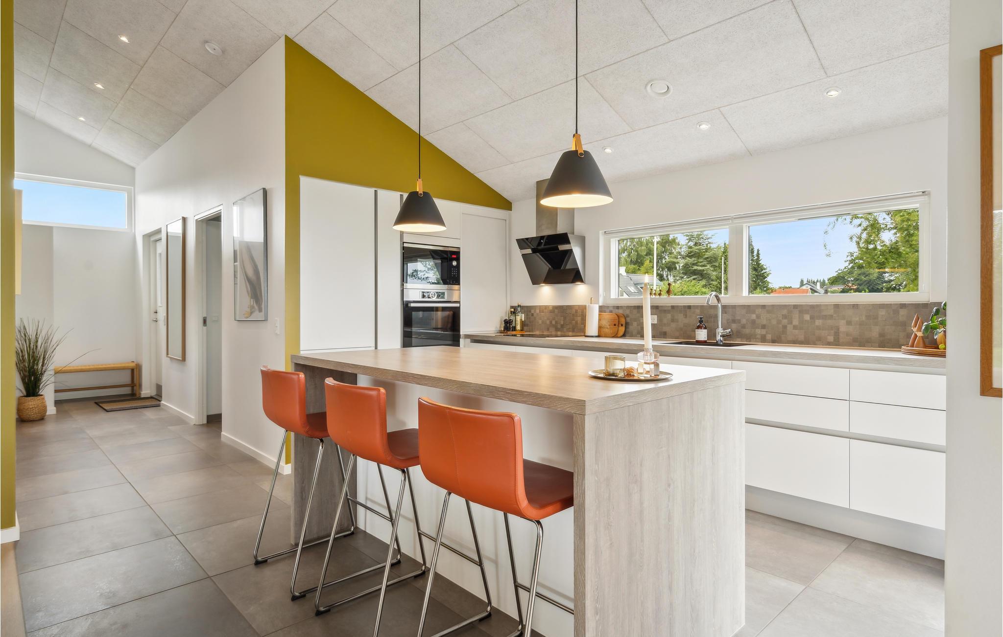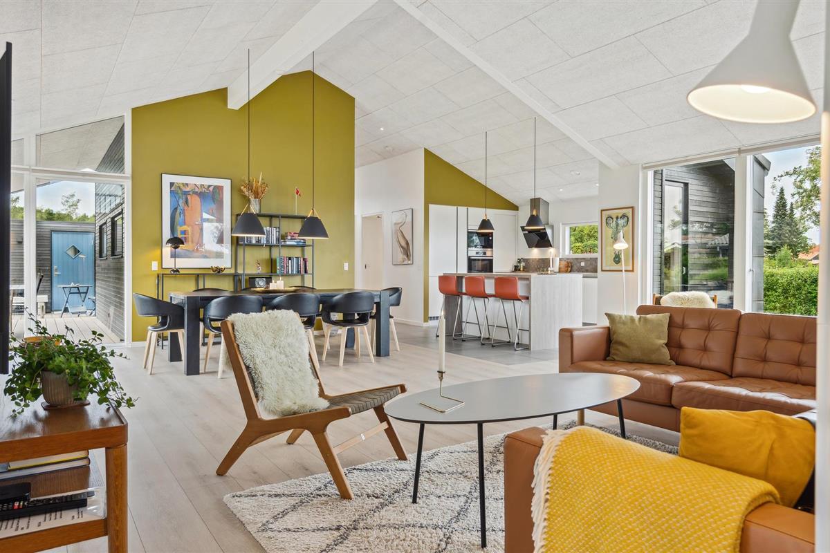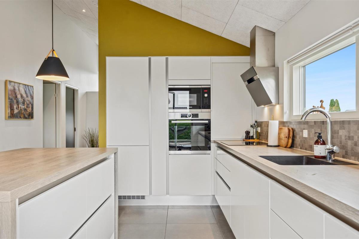 Dit elegante vakantiehuis met een prachtig uitzicht over Vejle Fjord is zowel klassiek als modern. Het is gebouwd van hoogwaardige materialen, ingericht met veel gevoel voor detail, ruim en doordacht. De grote woonkamer met schuine plafonds is ingericht met moderne meubels. Direct naast de ingebouwde houtkachel staat een gezellige bank. Leg er een paar stukken brandhout in en pak uw favoriete boek - de perfecte vakantie op kille dagen.