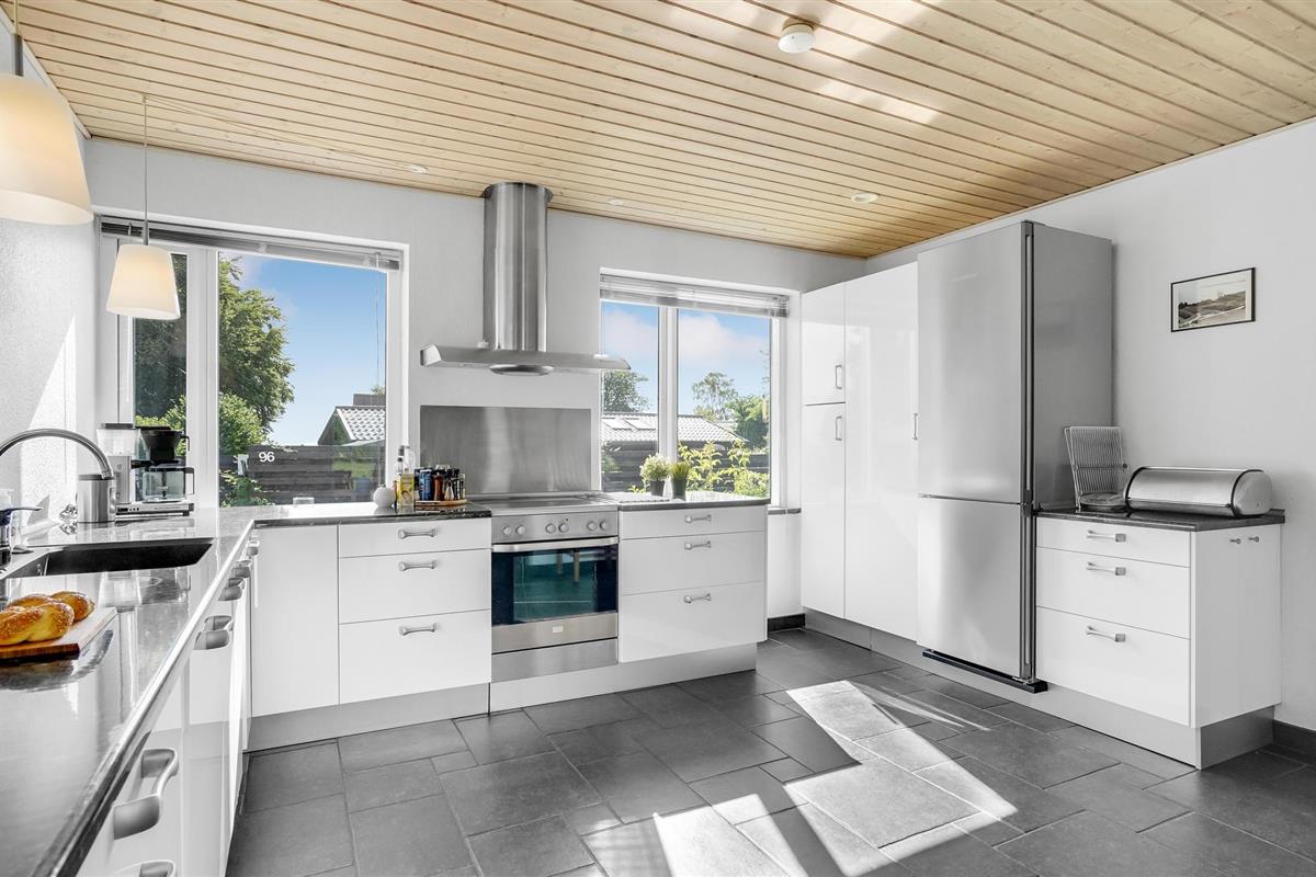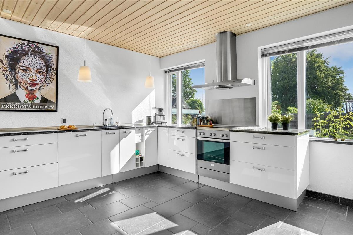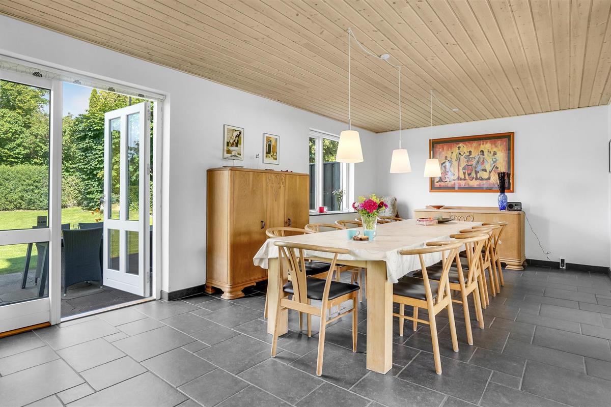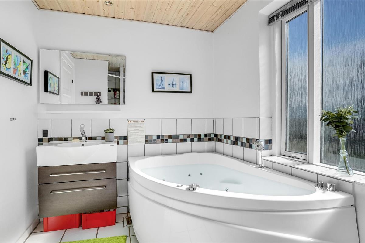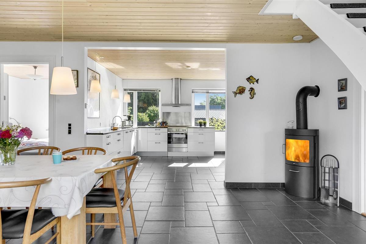 Ruim en gezellig vakantiehuis op twee verdiepingen. Vanuit het huis heeft u het mooiste uitzicht op Vejle Fjord en het schiereiland ten westen van Juelsminde. Het huis heeft een ruime eetkamer. die in open verbinding staat met de ruime keuken. Op de begane grond bevinden zich twee van de vier slaapkamers en een badkamer met whirlpool. De andere twee slaapkamers bevinden zich op de eerste verdieping, samen met nog een badkamer en de woonkamer, die een prachtig panoramisch uitzicht op het water biedt. Er is een mooi betegeld terras op het zuiden en in de tuin vindt u een groot overdekt terras waar u heerlijk kunt dineren met de familie en schaduw kunt vinden op warme dagen.