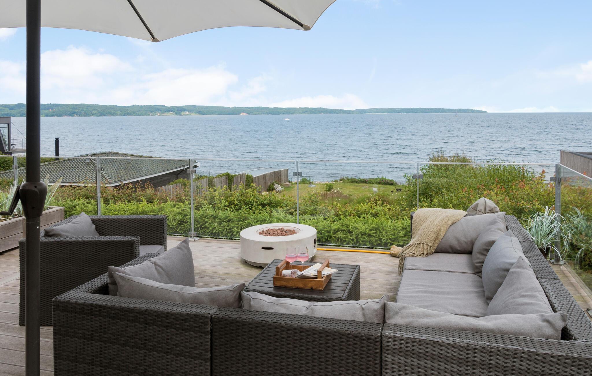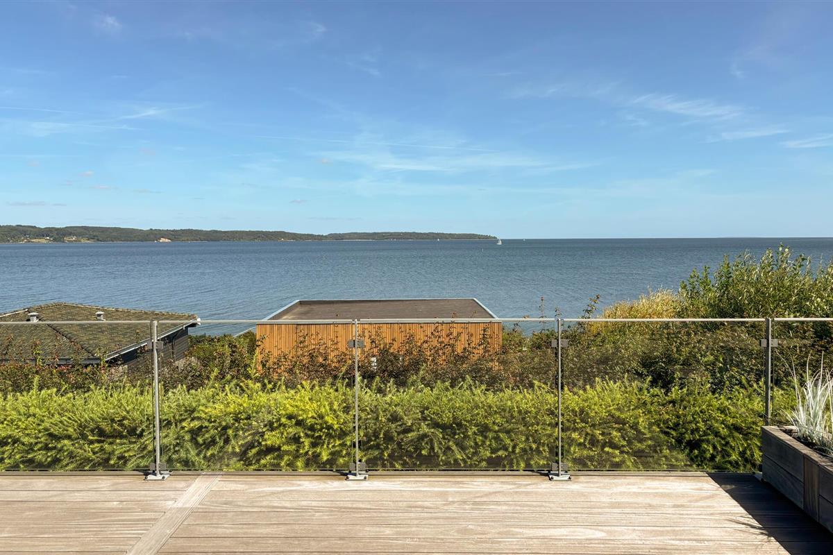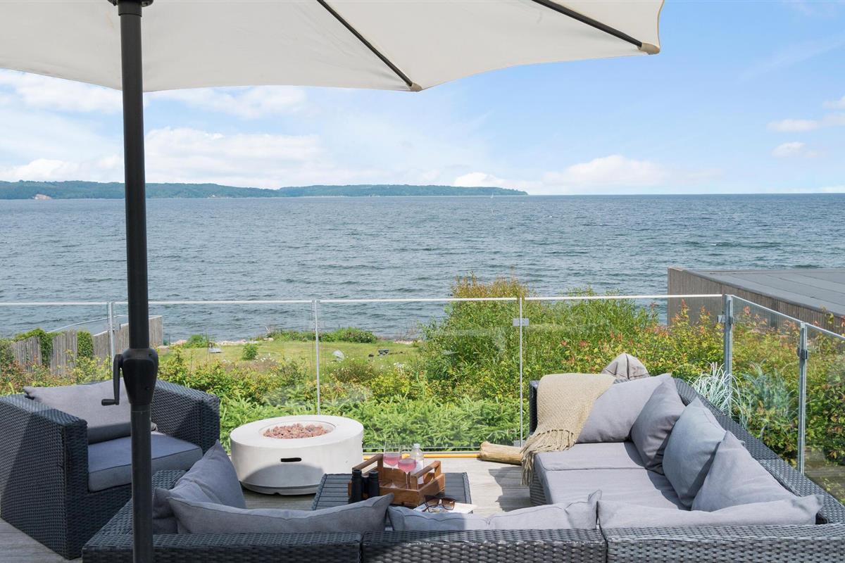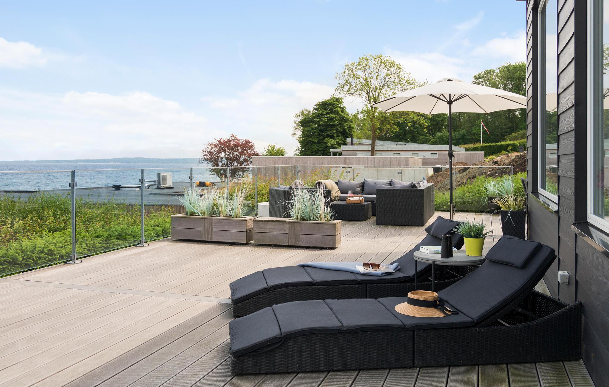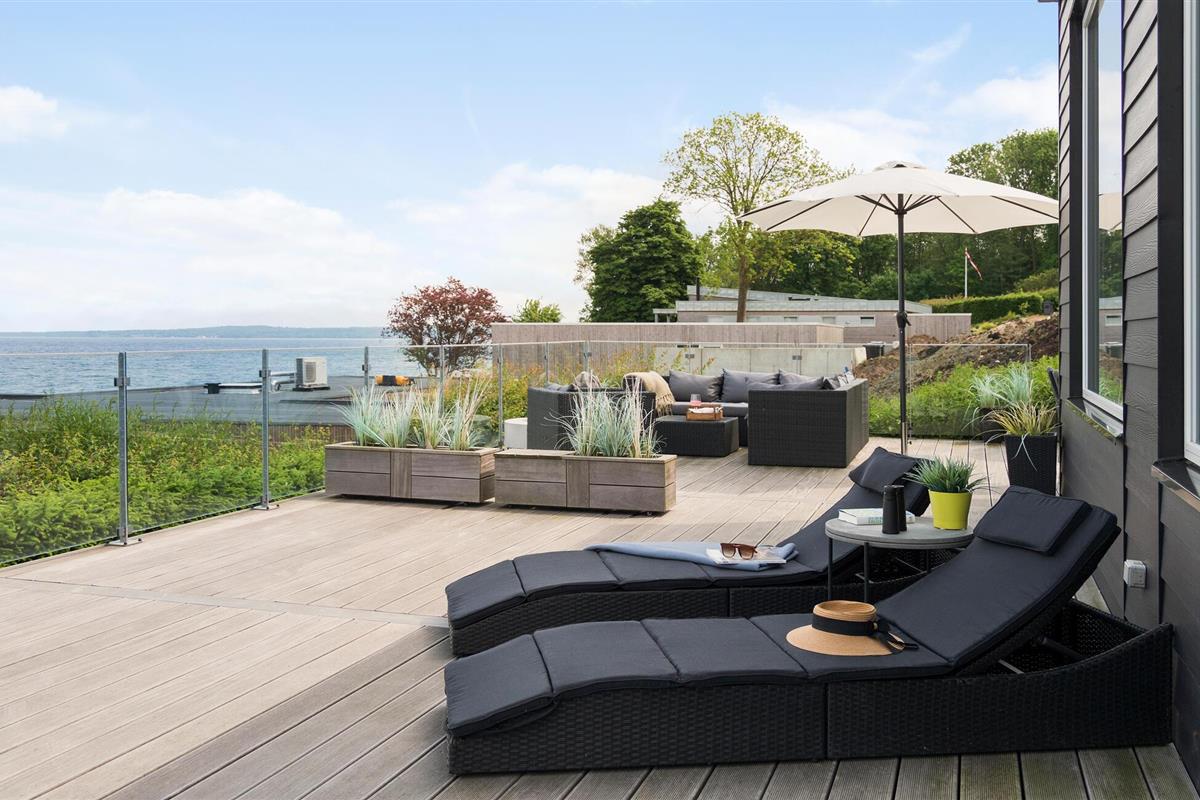 Mooi en modern vakantiehuis met een geweldig terras en uitzicht op Vejle Fjord.