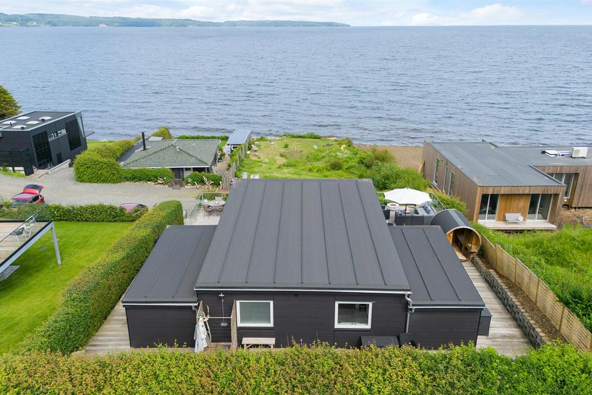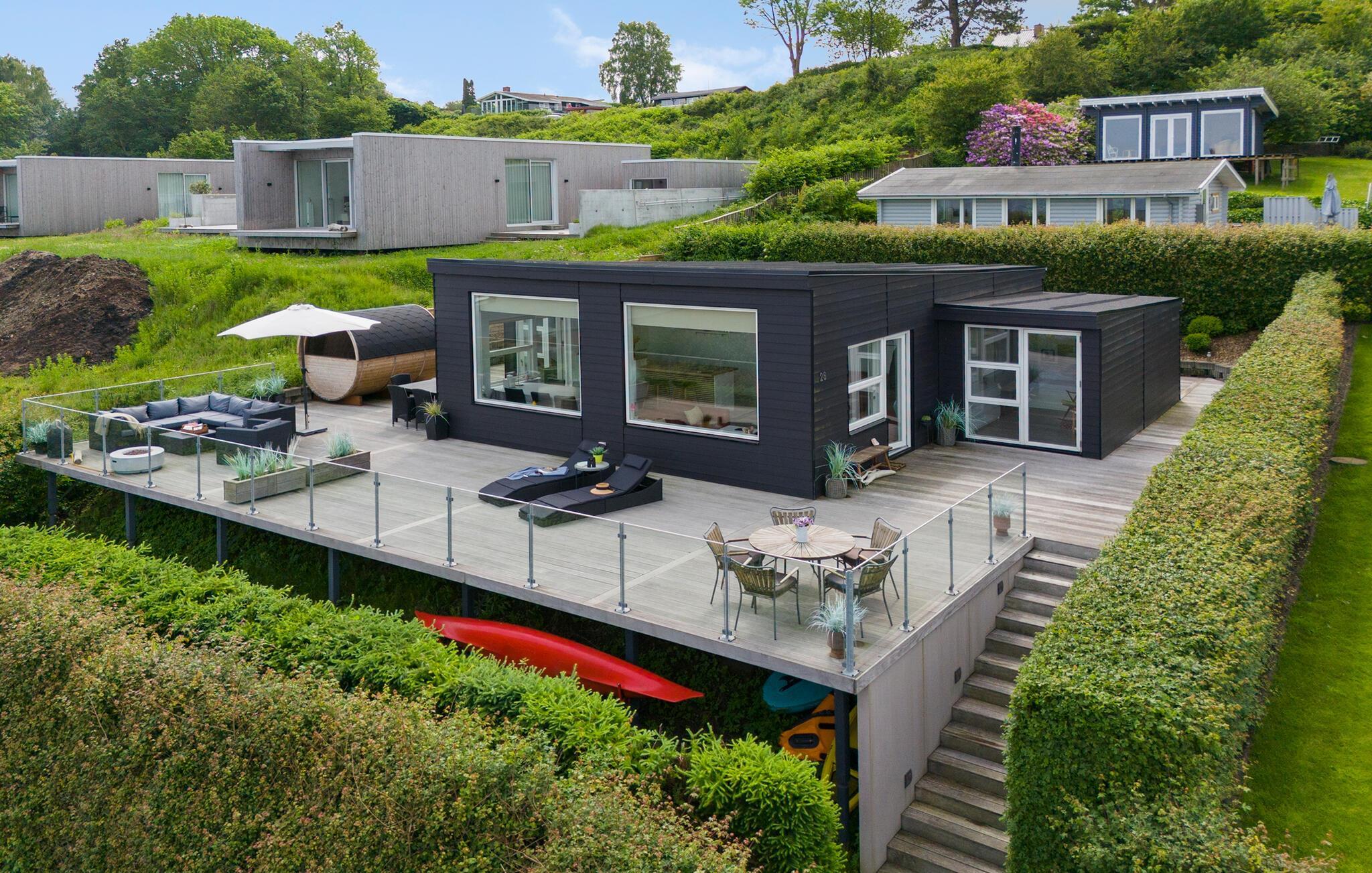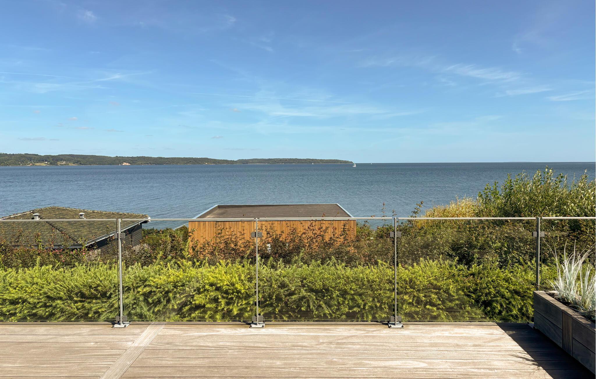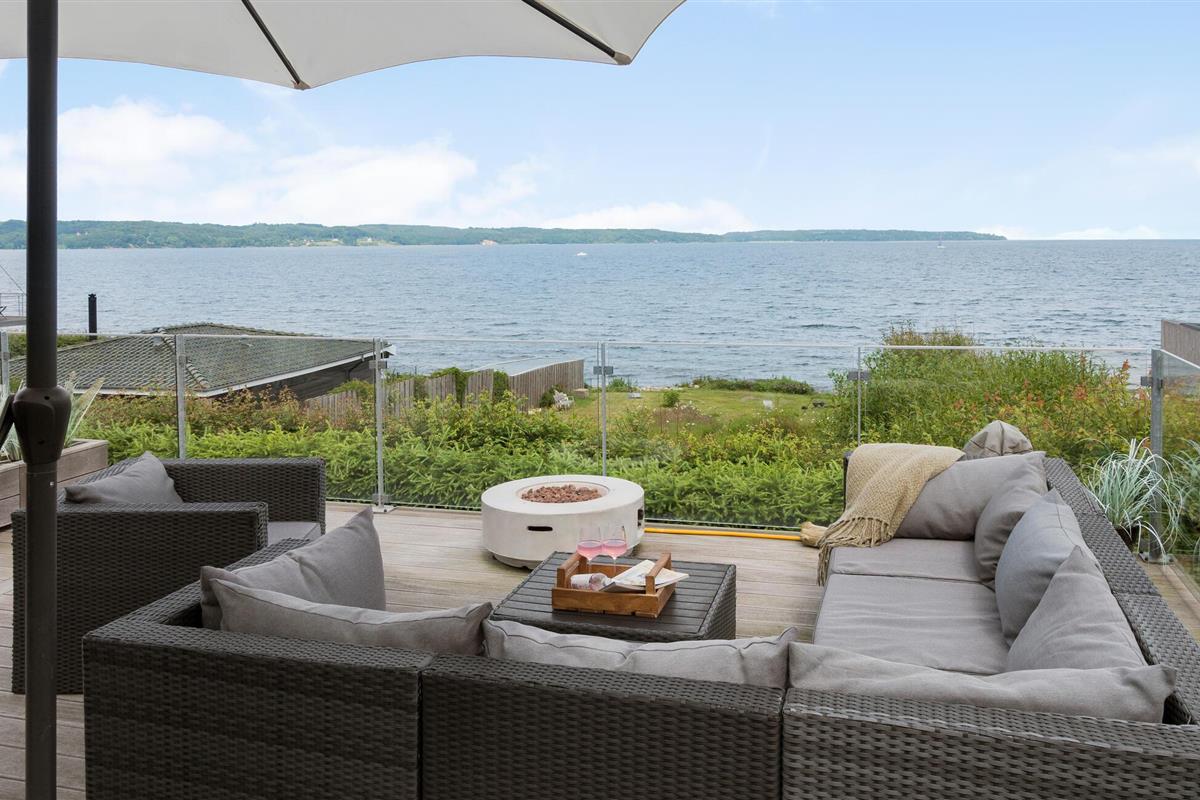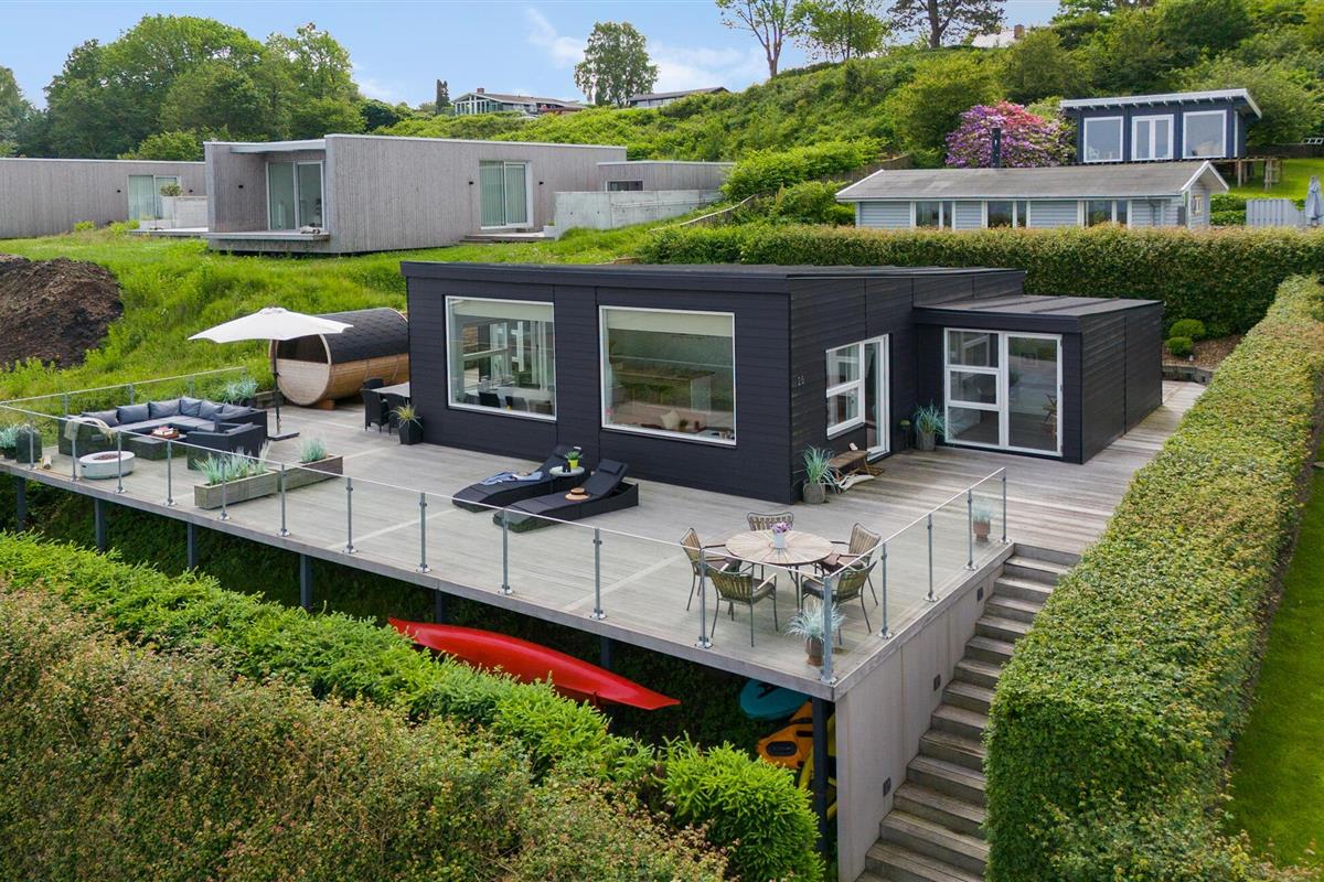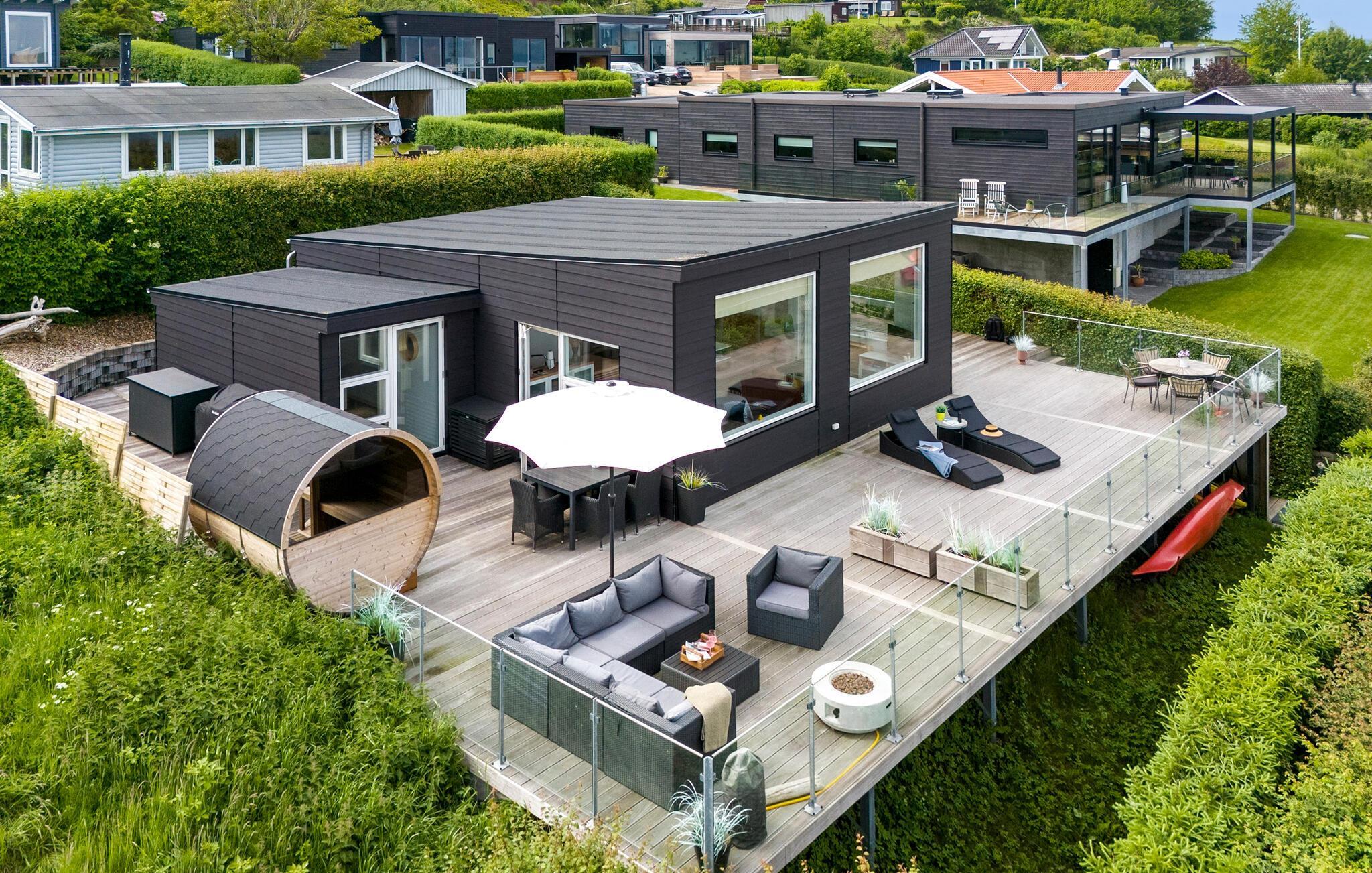 Mooi en modern vakantiehuis met een geweldig terras en uitzicht op Vejle Fjord.