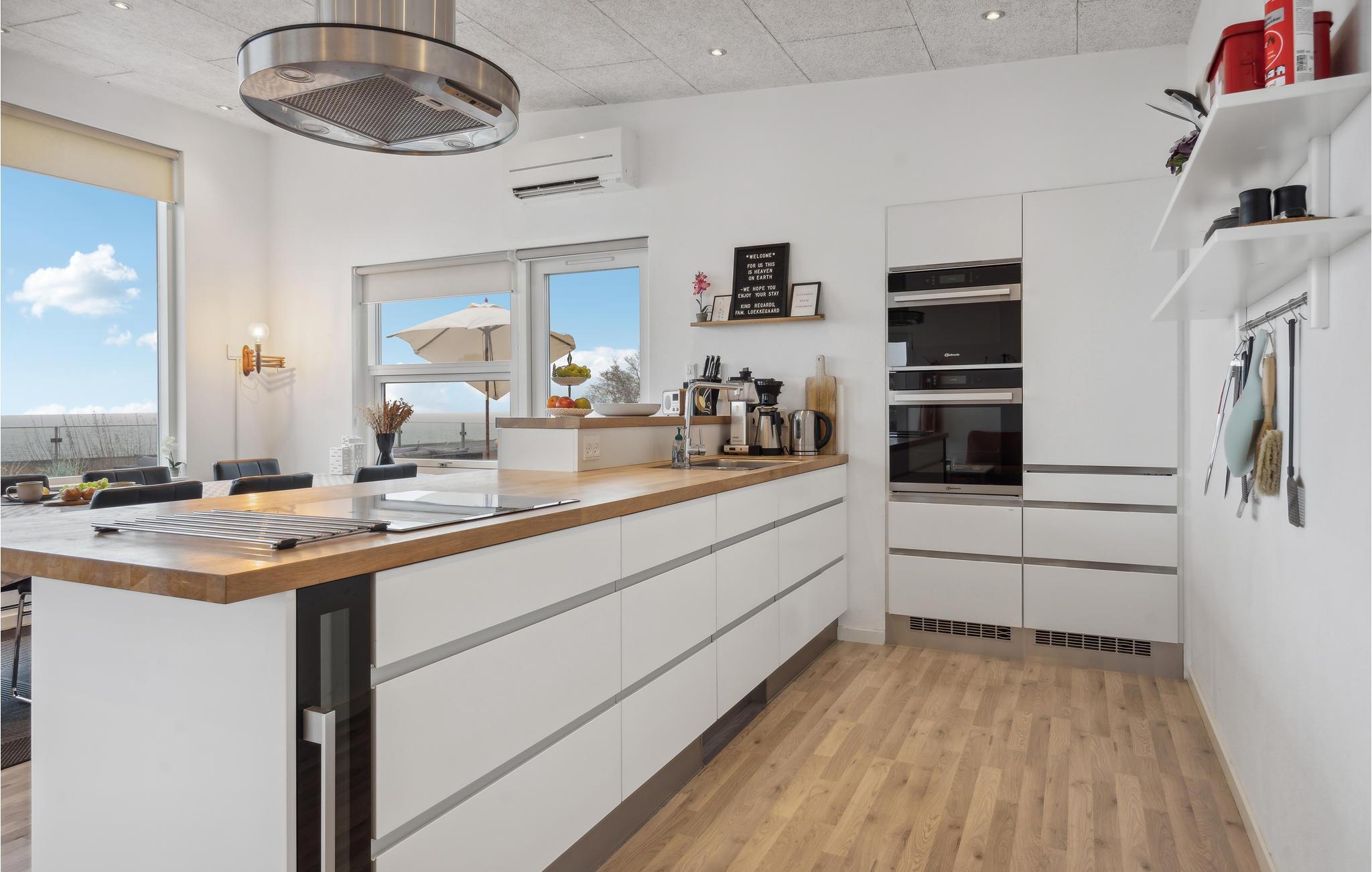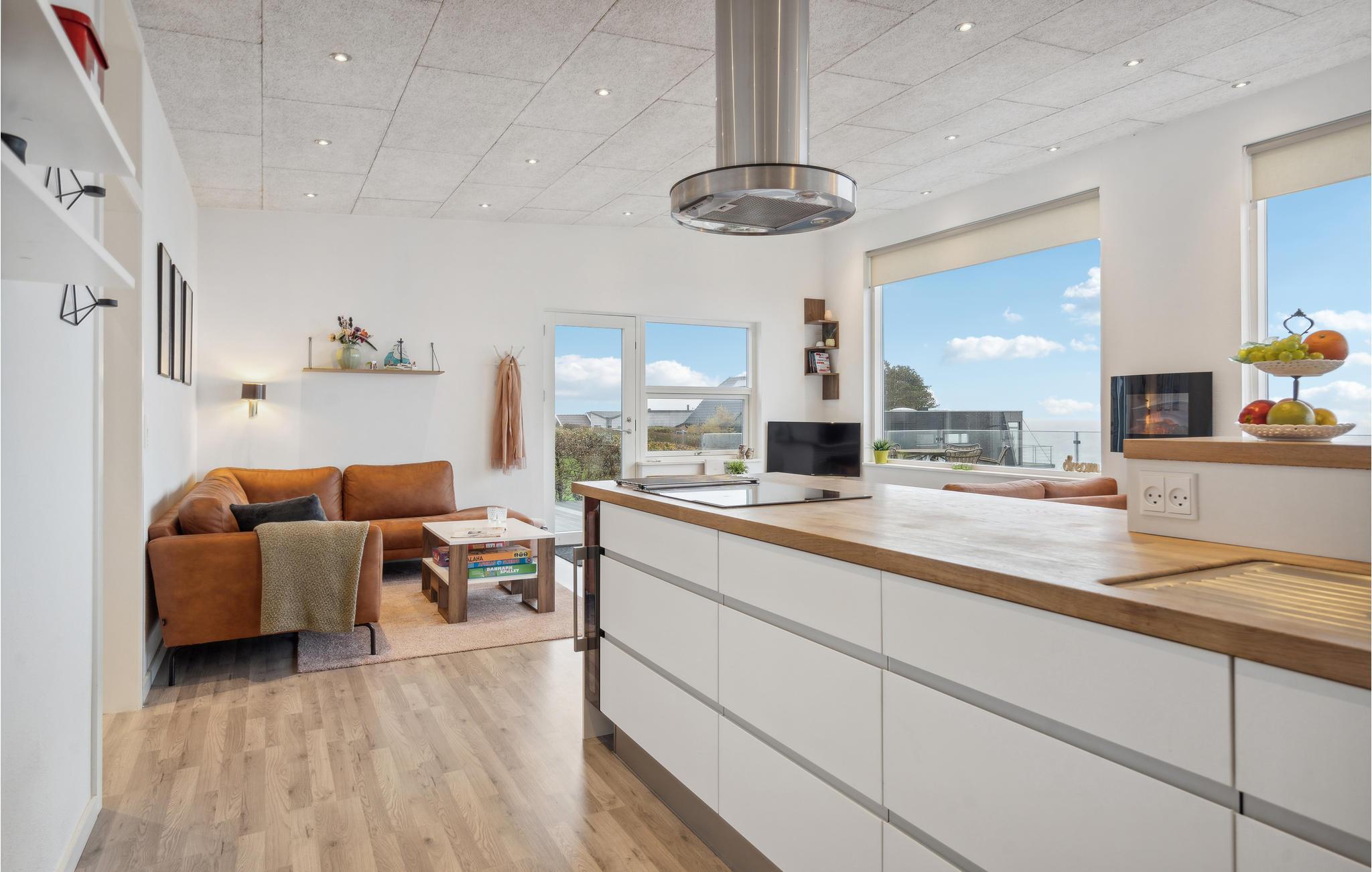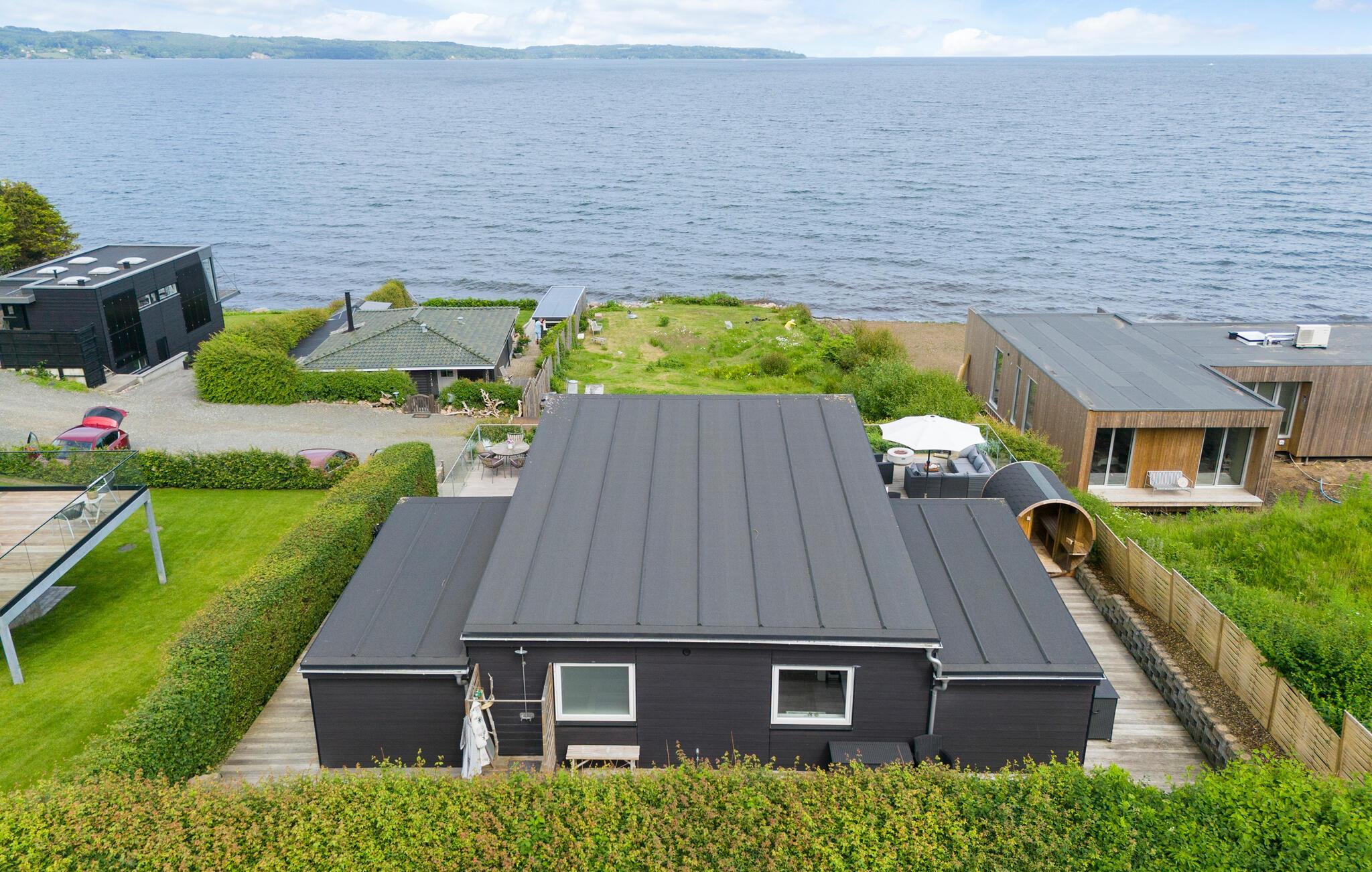 Op slechts een paar meter van het zandstrand van Mörkholt verwelkomt dit comfortabele en licht ingerichte vakantiehuis je met een prachtig uitzicht op het water. De open woonkamer is een heerlijke ruimte om samen te koken, spelletjes te spelen of gewoon te ontspannen. Het ontwerp en de decoratie ronden de heerlijke feel-good sfeer af. Wat is er mooier dan wakker worden met uitzicht op het water? Waarschijnlijk niet veel, daarom kun je beginnen met een ontbijt op het ruime terras en de avonden afsluiten op het tuinmeubilair met een glas wijn.