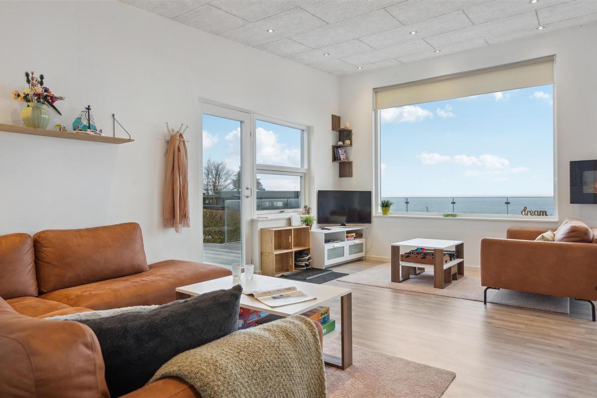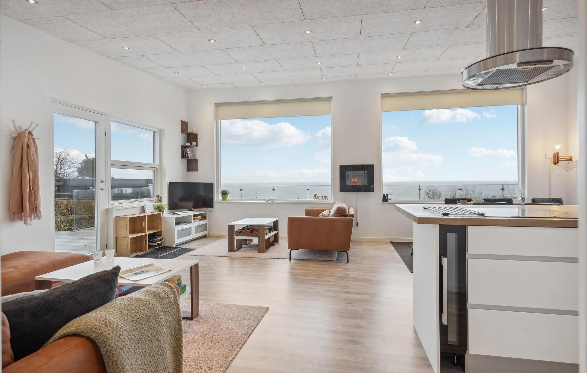 Modern vakantiehuis met prachtig uitzicht op Vejle Fjord en dichtbij het zandstrand van Mörkholt.