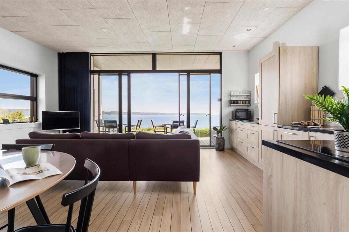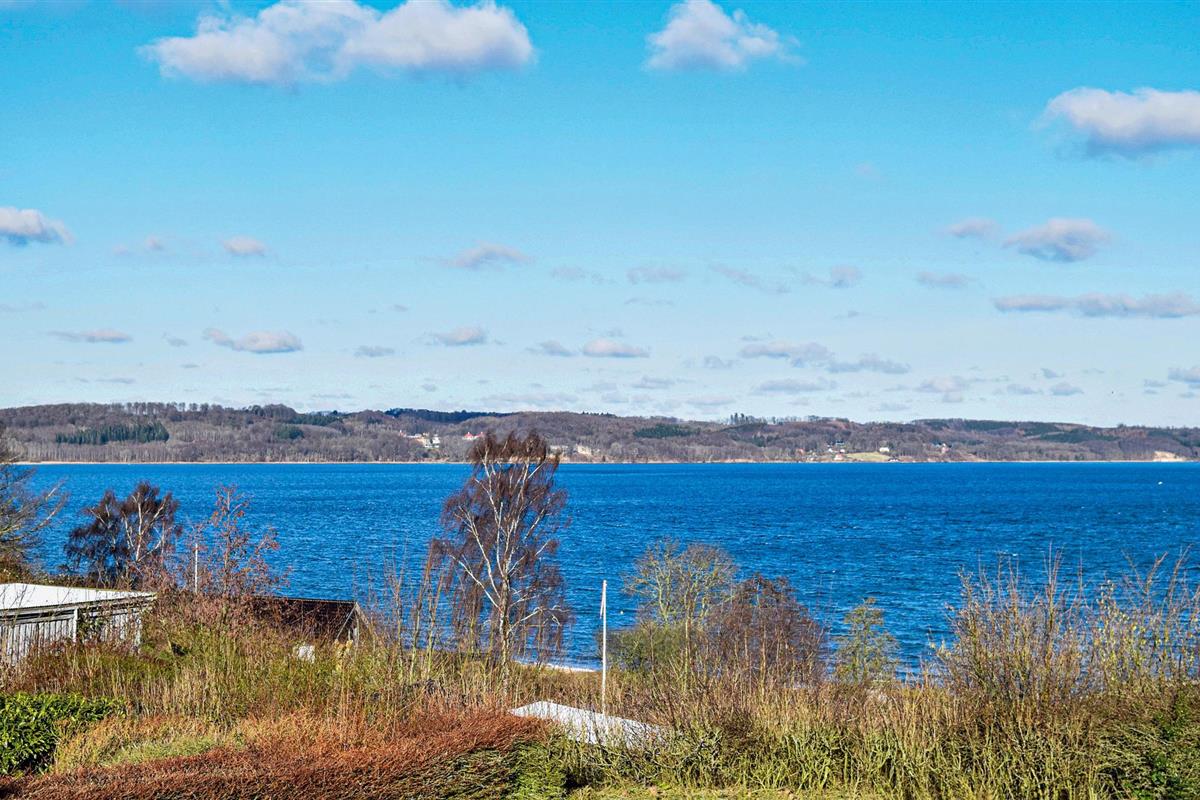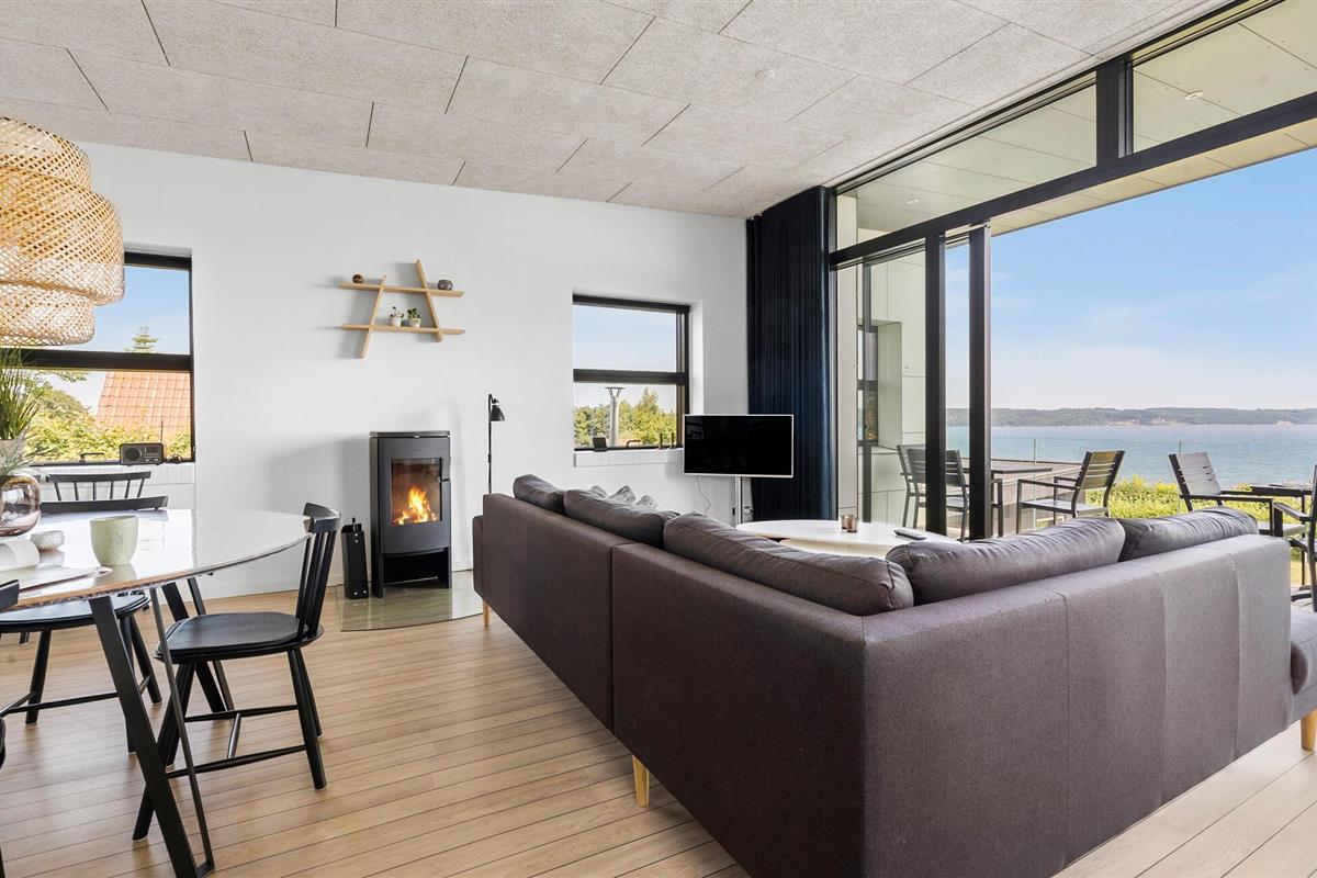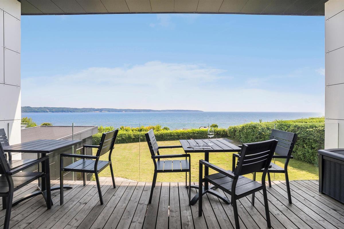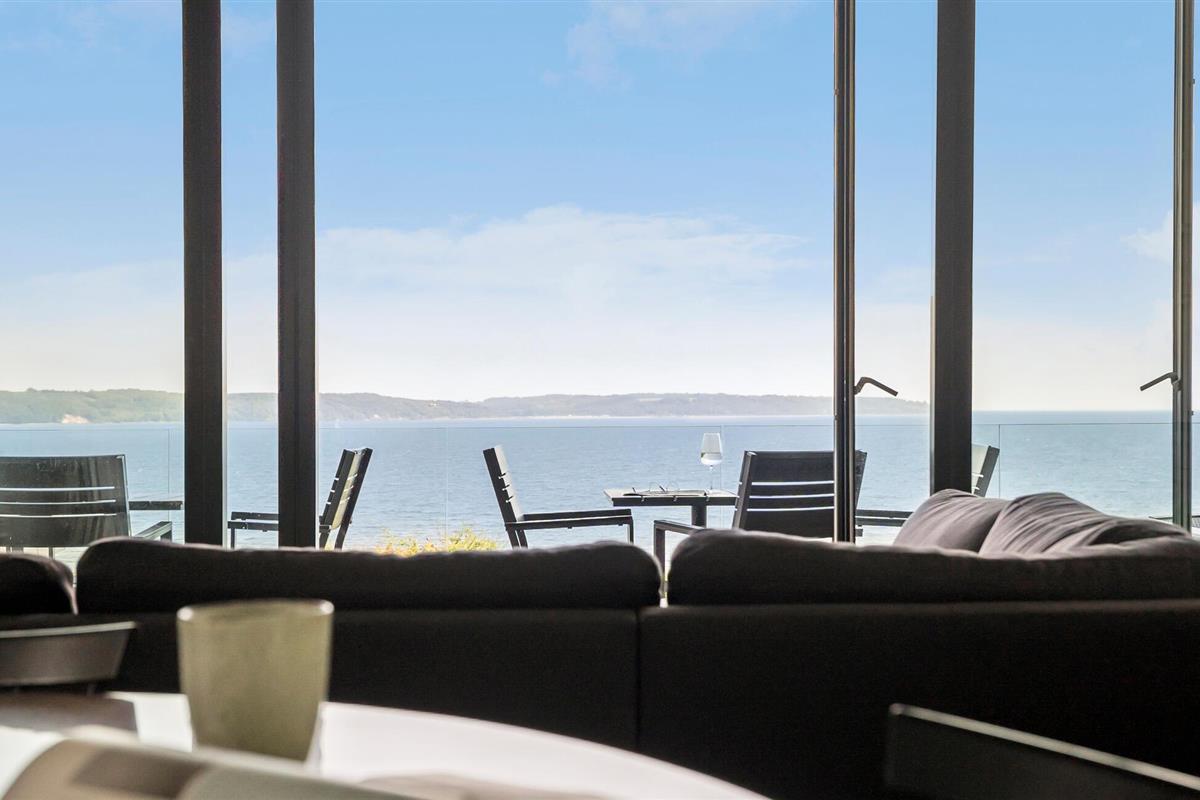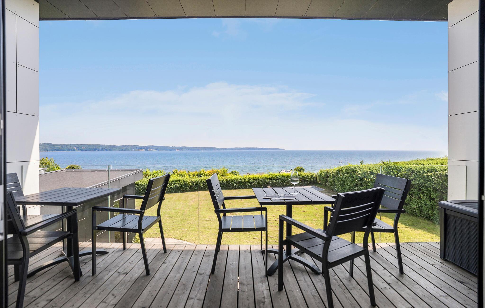 Modern en stijlvol vakantiehuis met panoramisch zeezicht, buitenhottub en luxe voorzieningen nabij Vejle Fjord.