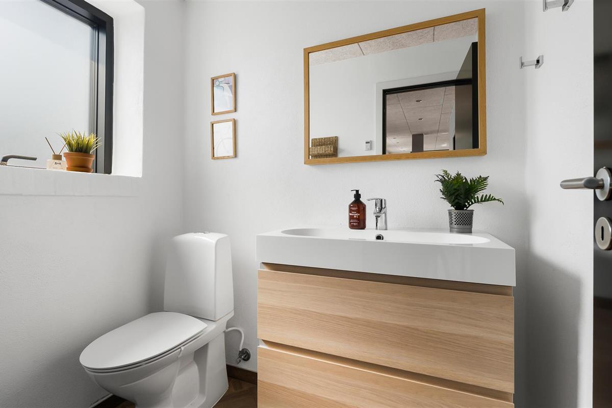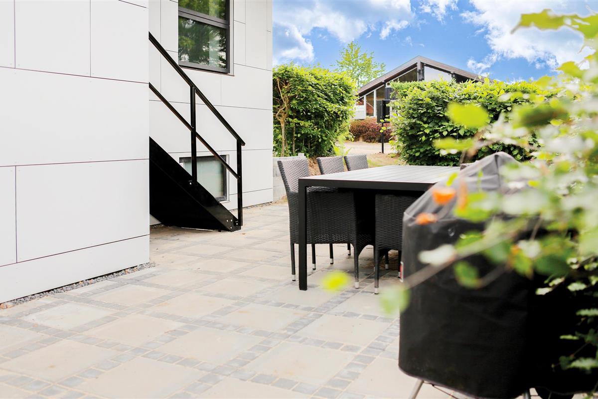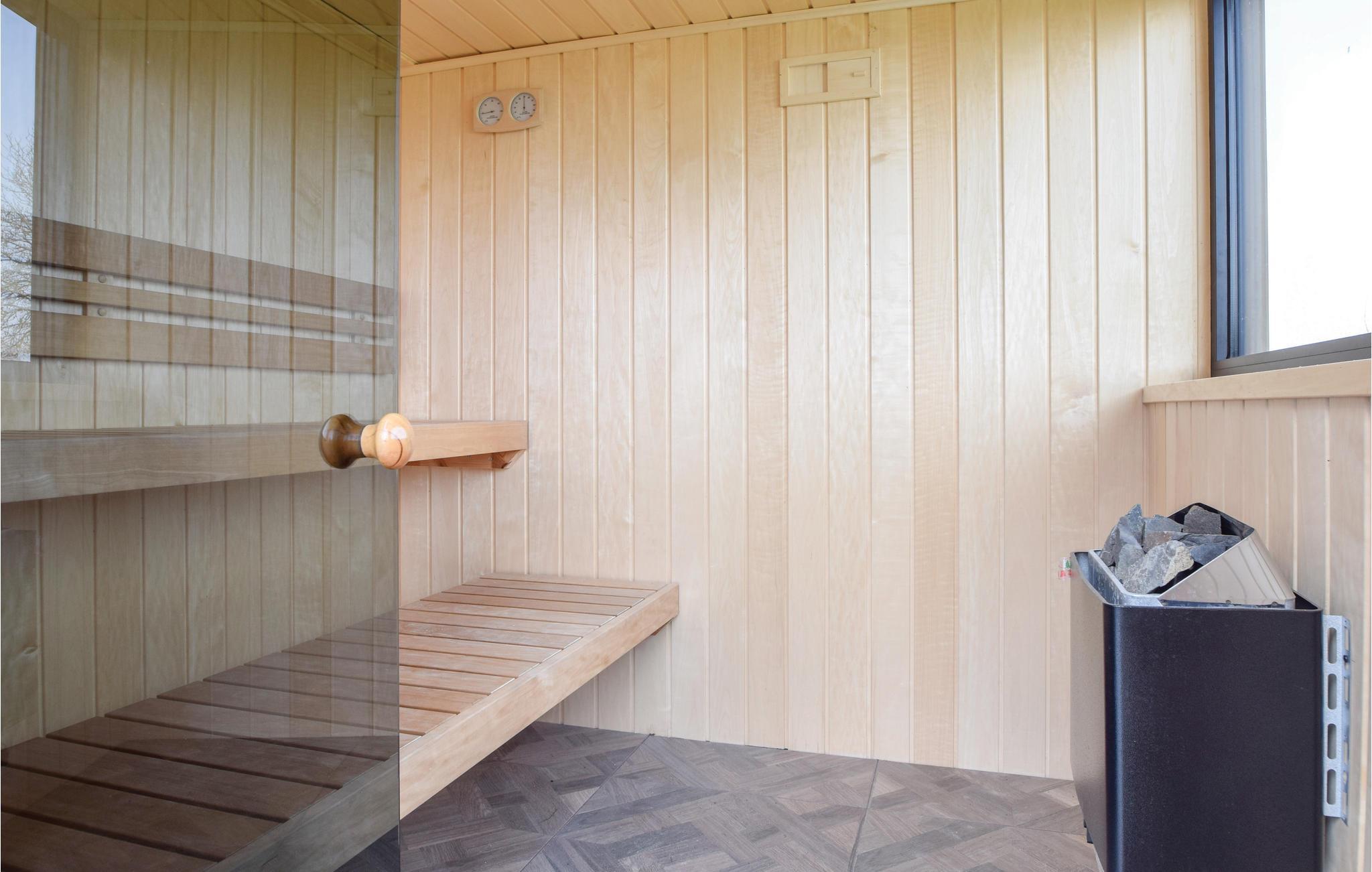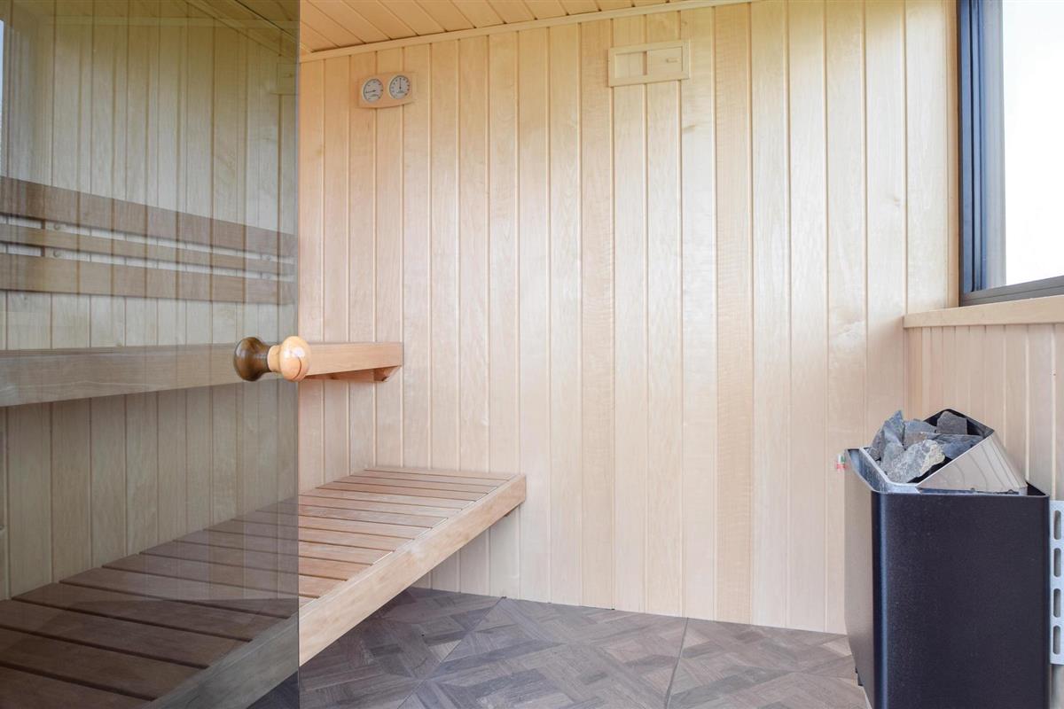 Vanuit het vakantiehuis en het terras met de palju kunt u genieten van het uitzicht op zee. Dit vakantiehuis is exclusief, zowel in de gebruikte materialen als in de manier waarop het is ingericht. Modern en stijlvol ingericht, biedt het een bijzondere setting voor zomerhuis hygge. Op de bovenste verdieping zijn er twee slaapkamers en een gastentoilet met wastafels, evenals een woonkamer met een panoramisch uitzicht op de ingang van de boten in Vejle Fjord. De keuken is elegant en goed uitgerust. Op de begane grond, die u bereikt via een steile trap met leuning, is de derde slaapkamer, met ruimte voor een dressoirbed, een grote badkamer met dubbele douche, massagebad en wasmachine. Er is ook een woonkamer met kussens voor de TV. Het terras ligt op het westen. De Palju staat alleen op een ander terras.