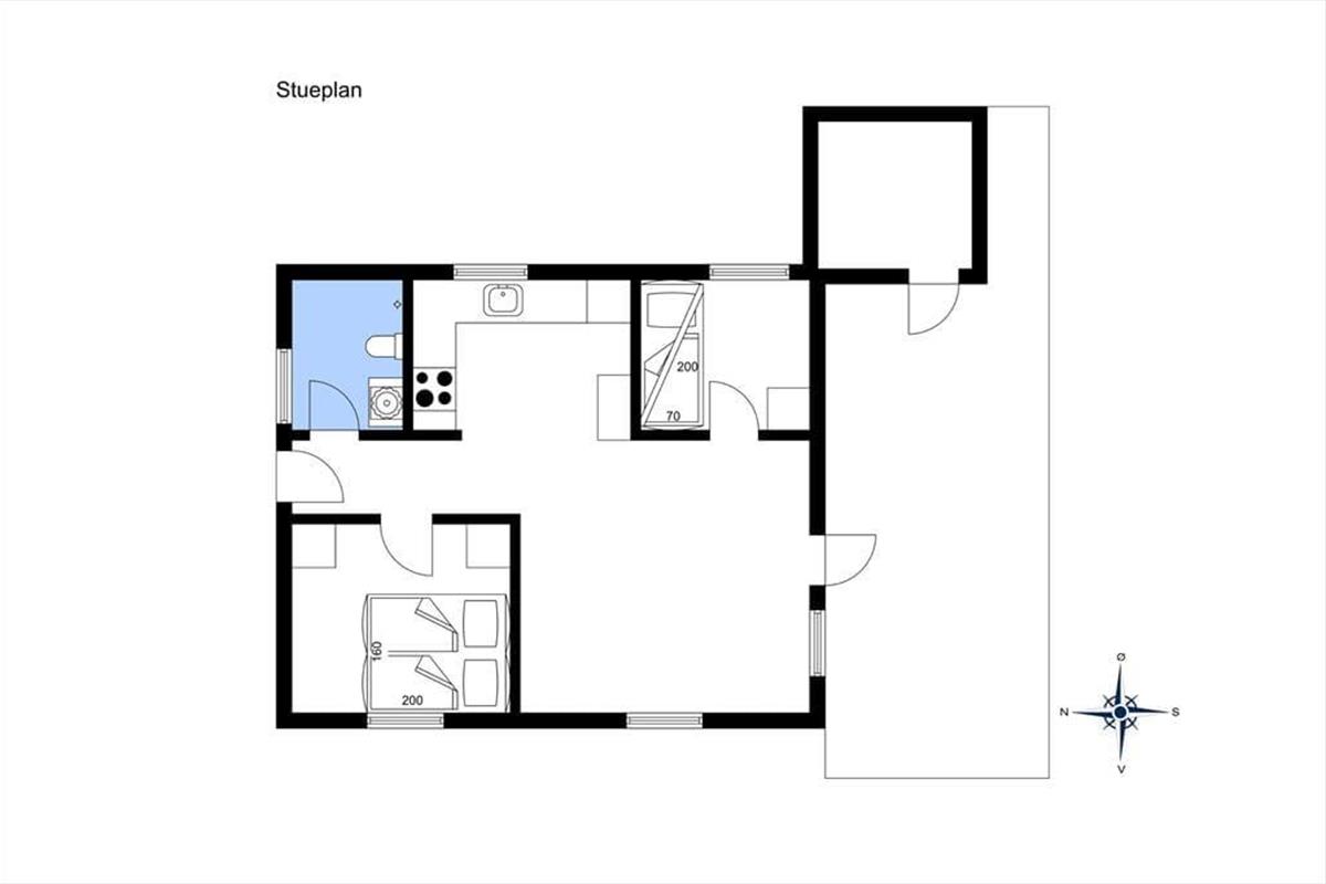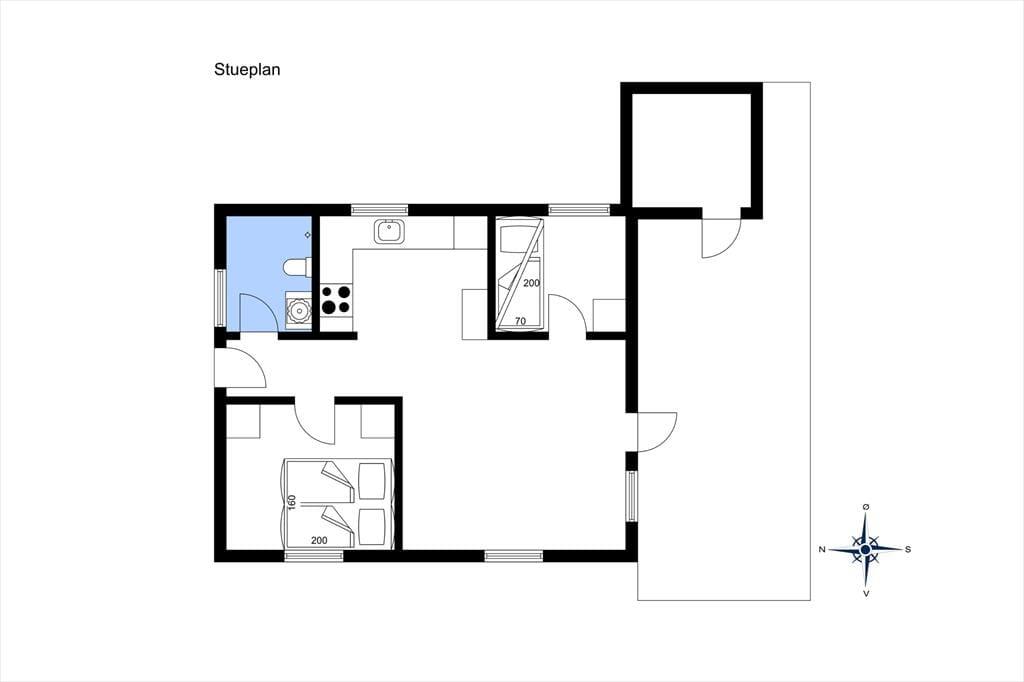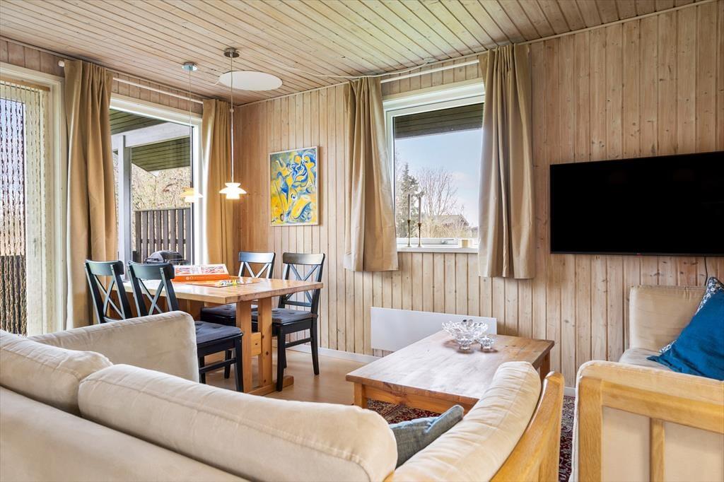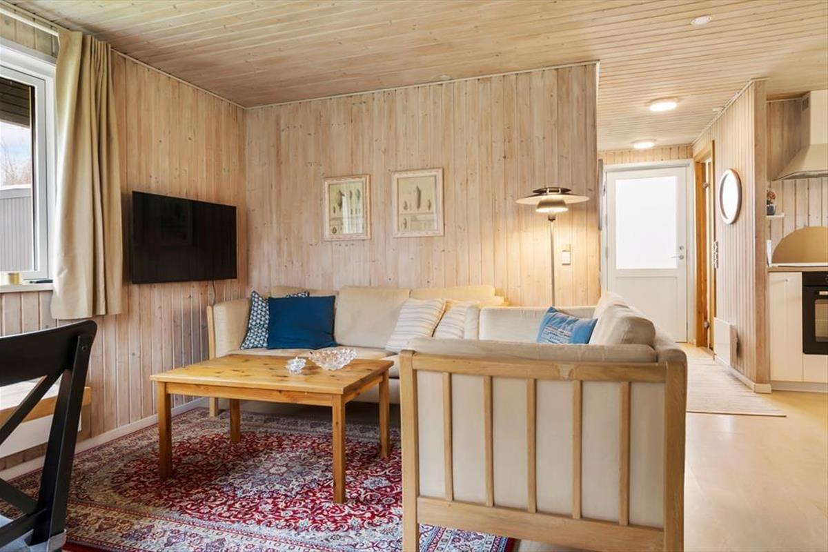 Im Sofaeck können Sie sich mit einem Buch, einem Spiel oder vielleicht beim Fernsehen vollkommen entspannen. Vom Wohnzimmer aus können Sie ebenfalls den Blick auf das ruhige Sommerhausgebiet genießen und sogar über die Felder nach Westen schauen. Vom Wohnzimmer aus gelangen Sie leicht über die Terrassentür auf die überdachte Terrasse, sodass die Terrasse im Sommer als zusätzlicher Raum fungieren kann.