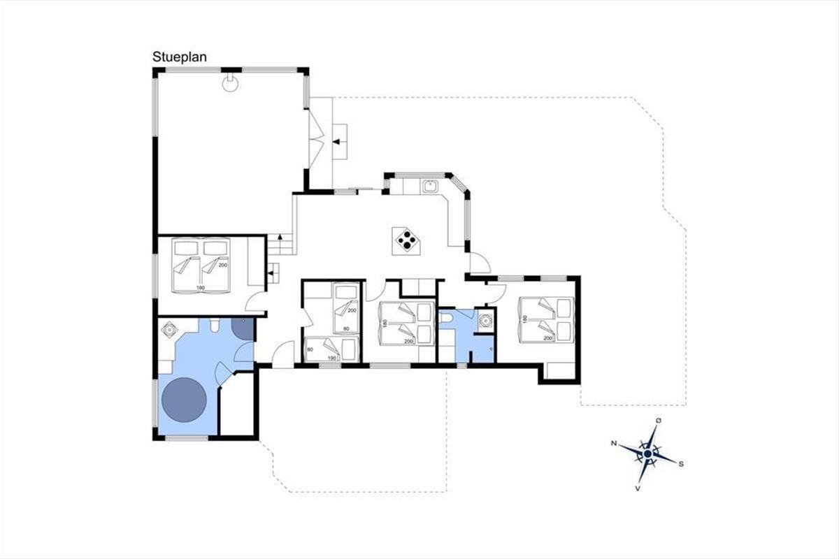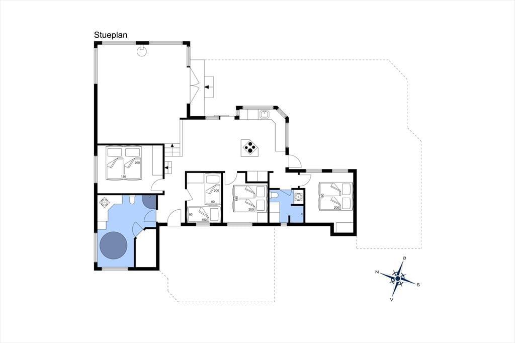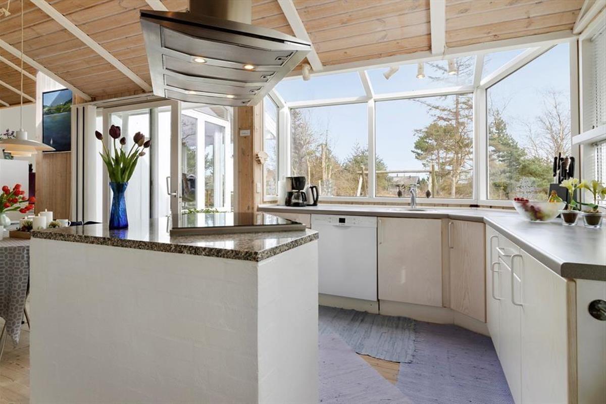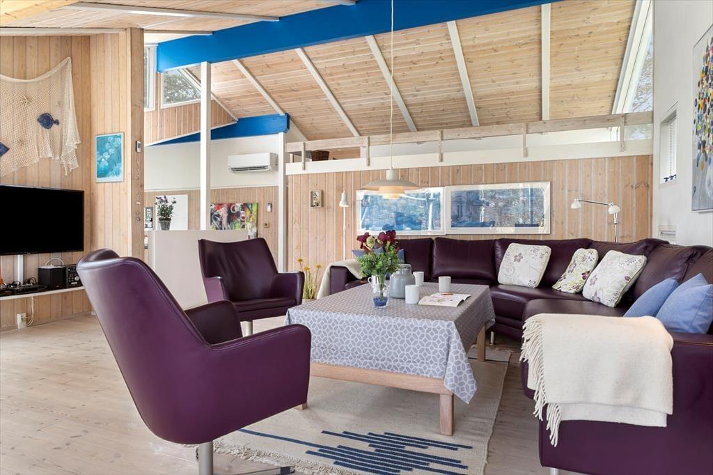In der offenen Küche blickst du durch die Fenster, die viel Tageslicht in den Raum strömen lassen, in den Garten, auf die Ostterrasse und weiter in Richtung Küste. Der große Esstisch bietet Platz für alle Mitreisenden. Bei schönem Wetter kannst du durch die Terrassentür hinaustreten und das Essen unter freiem Himmel servieren. Von der Küche aus gelangst du über ein paar Stufen hinauf in den Wohnraum, bei dem es sich um einen ansprechenden Aufenthaltsraum handelt. In der Polstersitzecke genießt ihr nach einem erlebnisreichen Tag gemeinsam gemütliche Stunden mit einem guten Buch oder vor dem Fernseher. Auf den Hängeboden mit Ausblick auf den Wohnraum kannst du dich in Ruhe zurückziehen, ohne zu verpassen, was im Wohnraum und in der Küche vor sich geht. Das große Giebelfenster des Hängebodens glänzt mit einer schönen Aussicht. Drei der Schlafräume beinhalten jeweils ein Doppelbett. In einem weiteren Schlafraum stehen zwei kleinere Betten bereit - perfekt für die jüngsten Urlauber. Alle vier Räume verfügen über Schrankfläche und gute Fenster mit Aussicht auf das Grundstück.