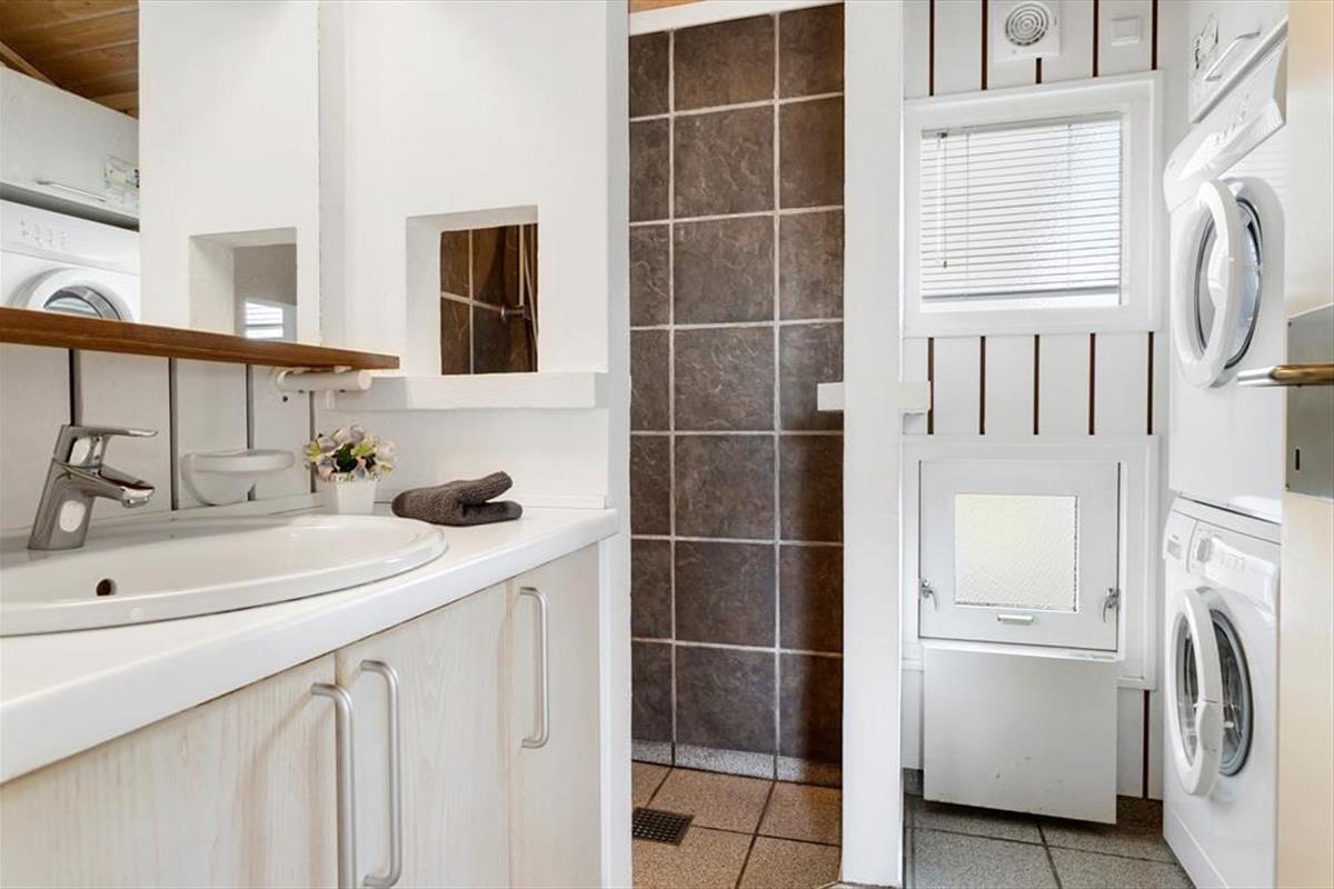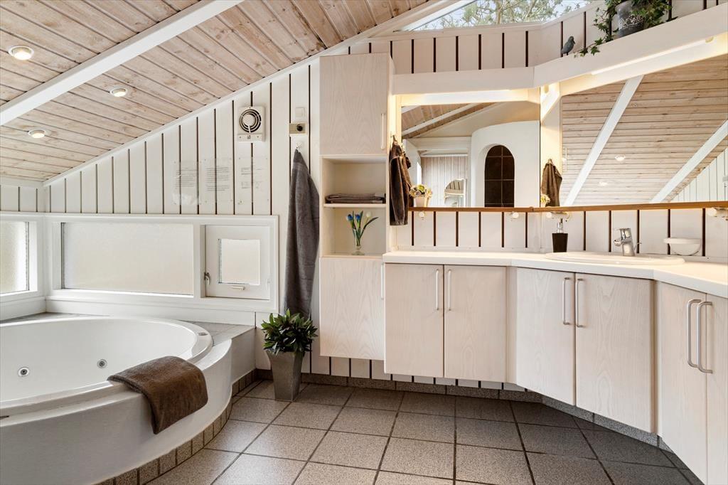 Die beiden Badezimmer des Ferienhauses verwöhnen mit viel Komfort. Im großen Badezimmer laden ein Whirlpool und eine Sauna zu traumhaft erholsamen Momenten voller Wellnessflair ein. Das Mietobjekt präsentiert sich durchweg gemütlich und stimmungsvoll. Die hellen Holzwände und -decken harmonieren wunderbar mit der Natur ringsum. Neben allen notwendigen Dingen besticht das Haus mit vielen zusätzlichen, komfortablen Details. Freu dich also auf ungetrübte Urlaubstage am Maarup Østerstrand!