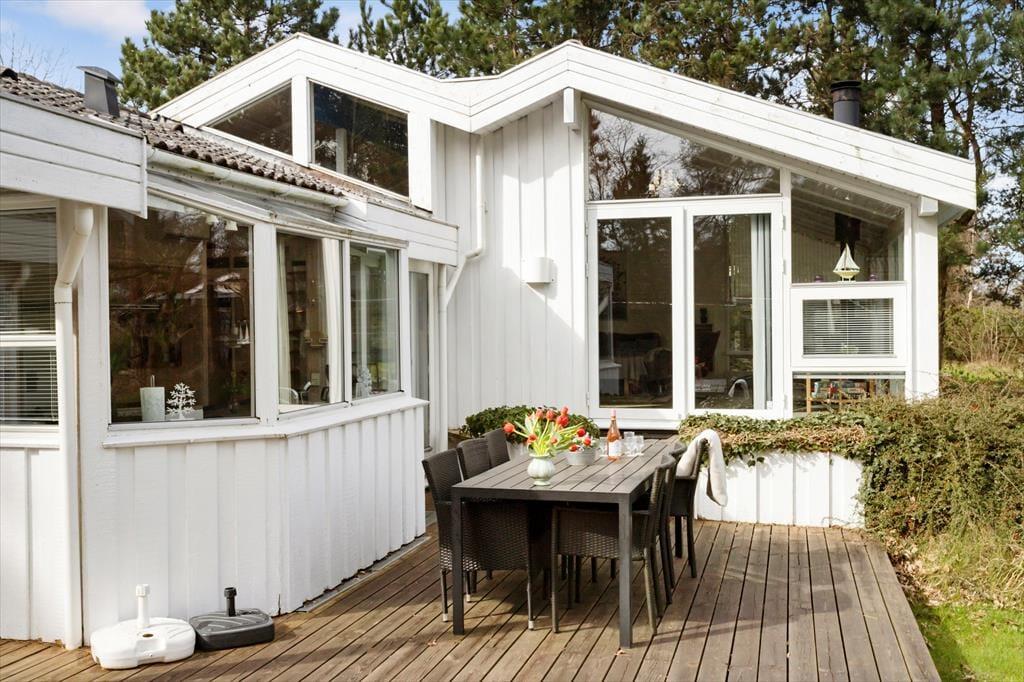 Dank der Bäume und Büsche, die das Grundstück umgeben, hältst du dich im Freien angenehm ungestört auf. Zwei gute Terrassen mit Gartenmöbeln laden zu entspannten Stunden in der Sonne ein. Vor dem Ferienhaus begrüßt dich die Westterrasse, auf der du angenehm windgeschützt die Nachmittags- und Abendsonne genießt.